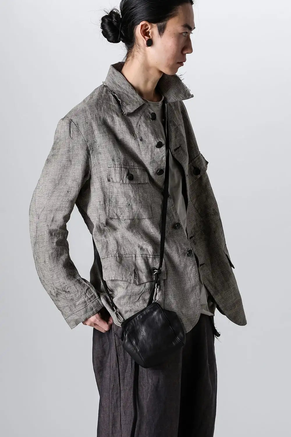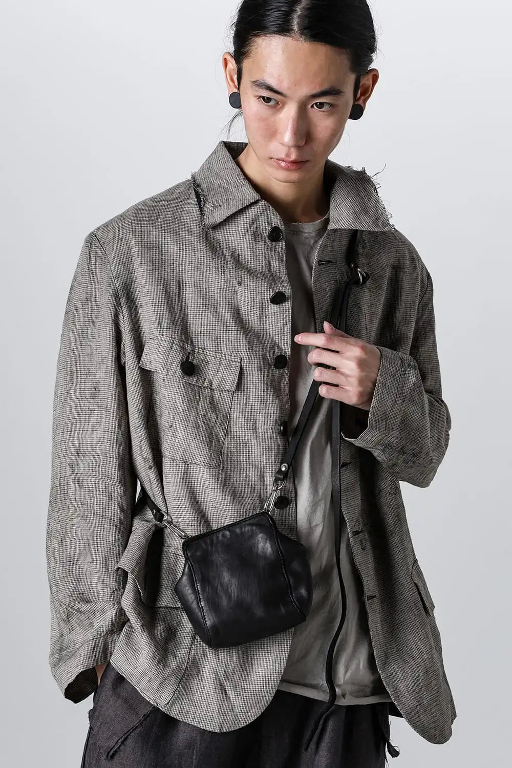 A small snap-button pouch with a detachable and adjustable shoulder belt, allowing for various carrying styles or use as a small item container. The material is a softer version of horse leather, thinner than usual for a soft touch.