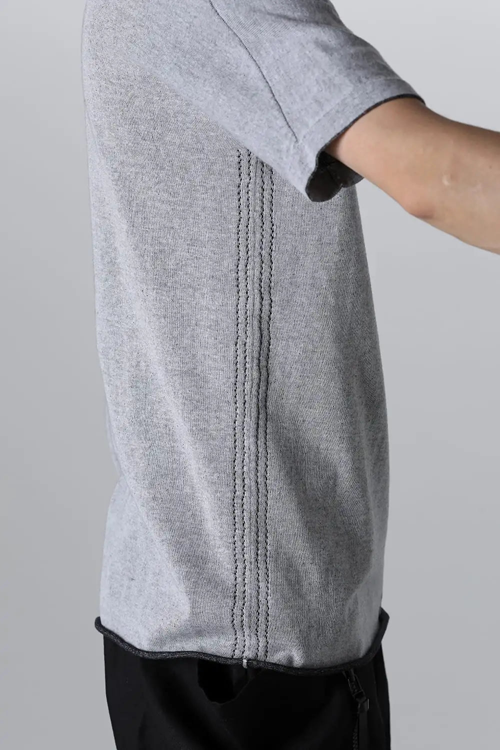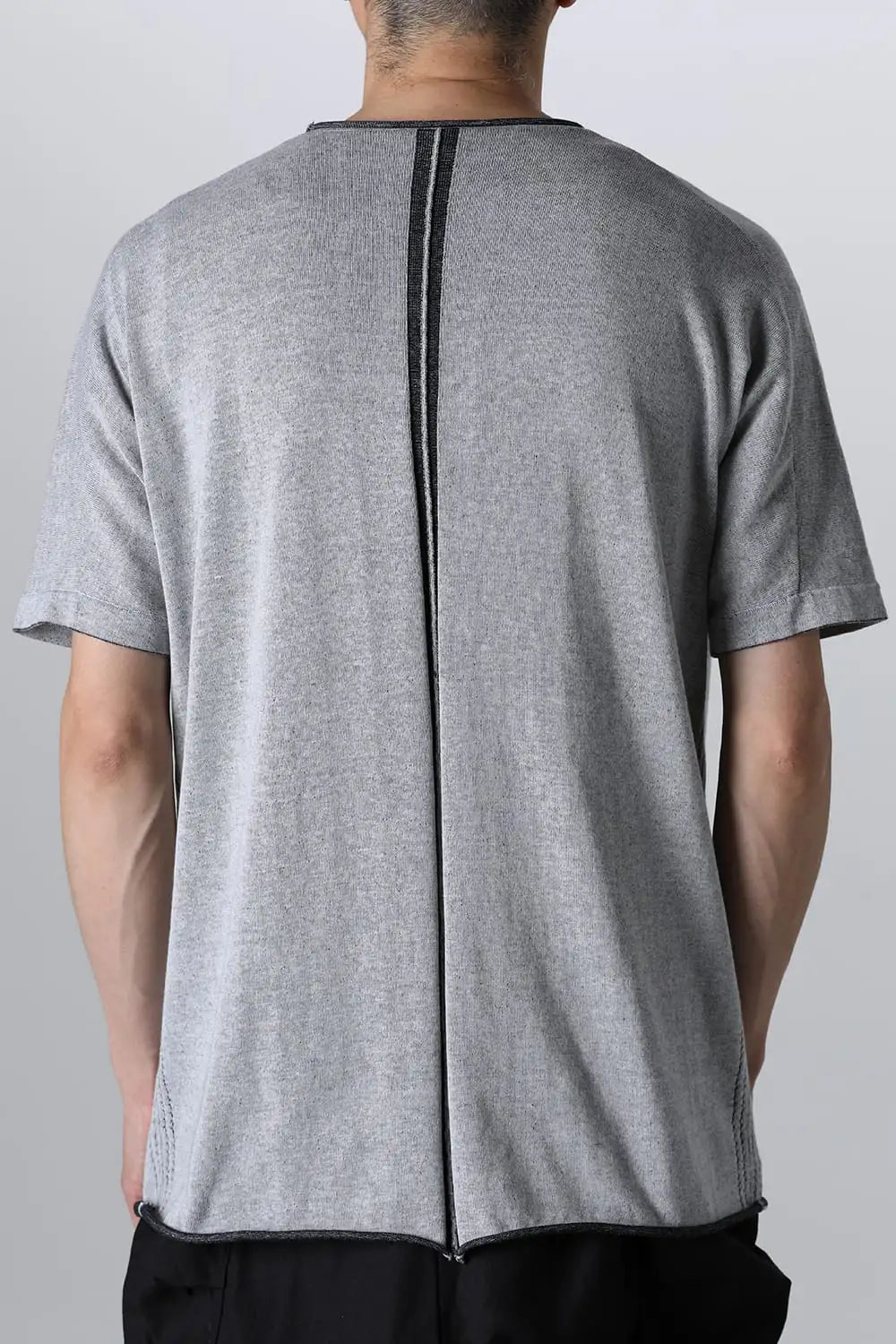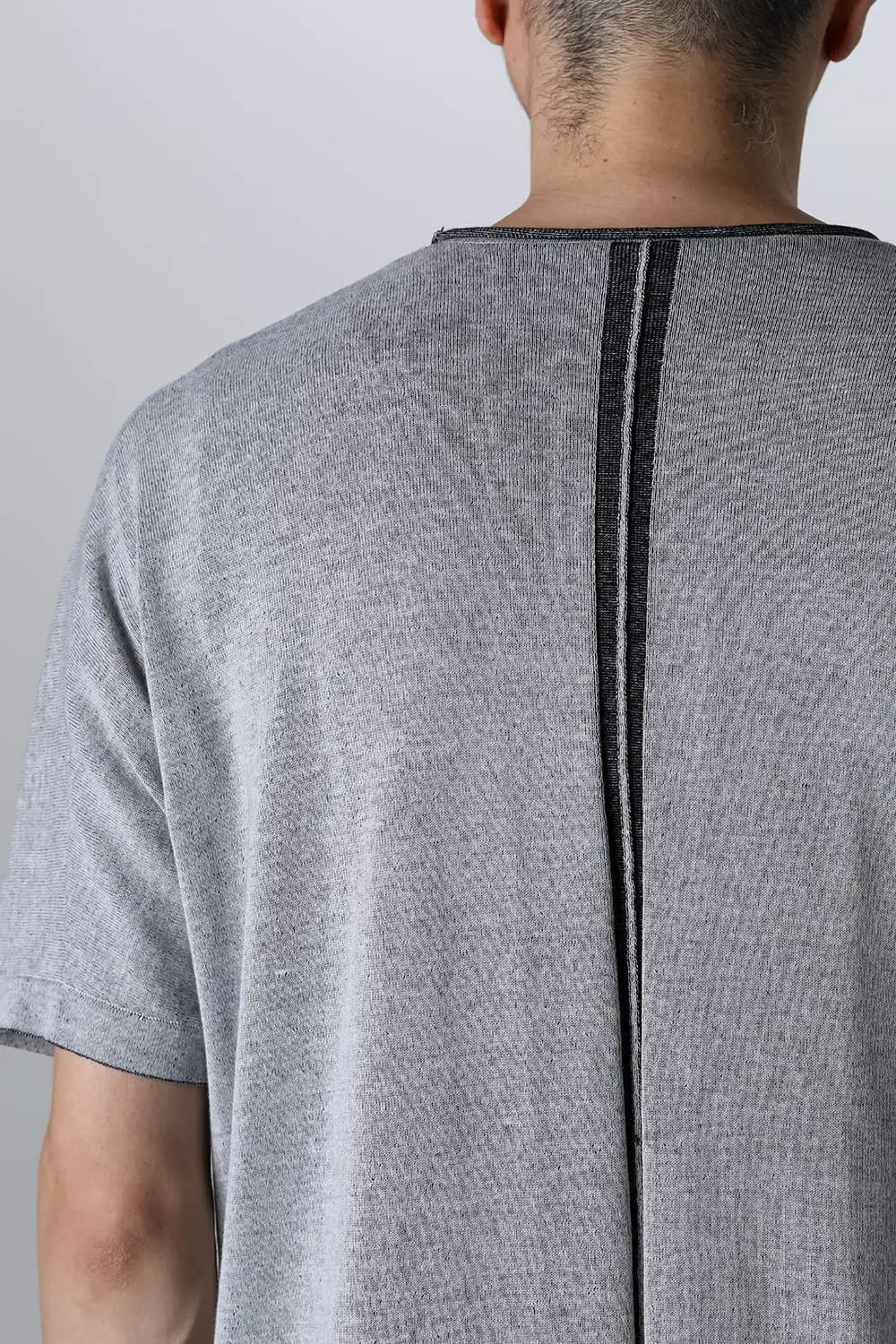 The plated rib knitting changes the yarn colors between the front and back, creating a dimensional Dolman knit with exposed seams for added structure.