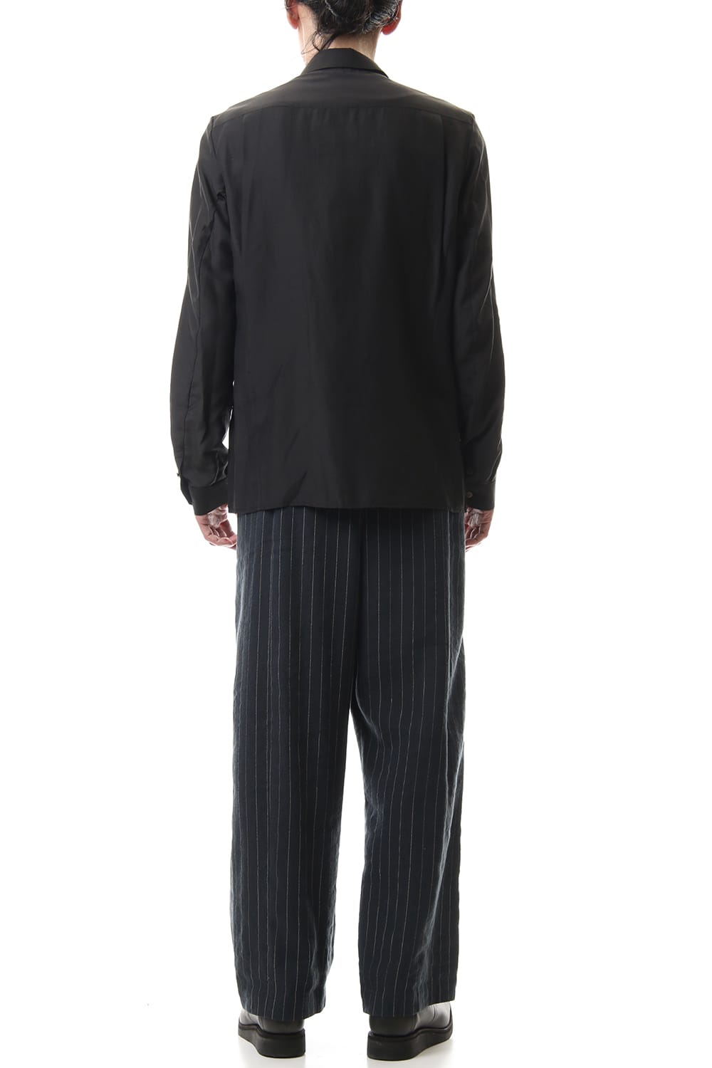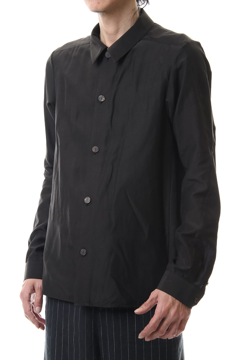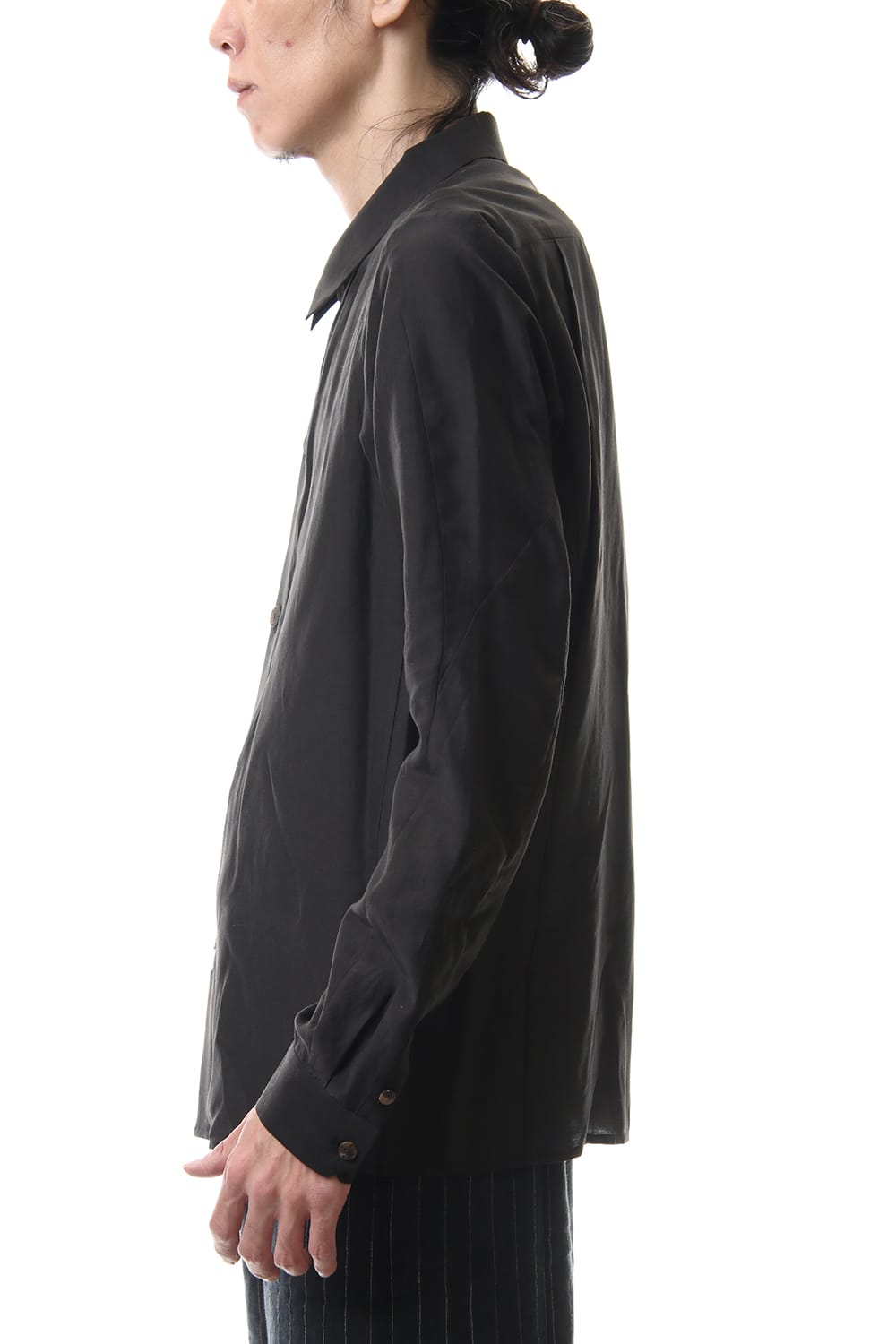 Open collar shirt silk tencel sandblast Charcoal