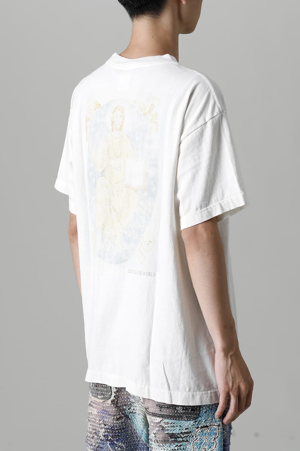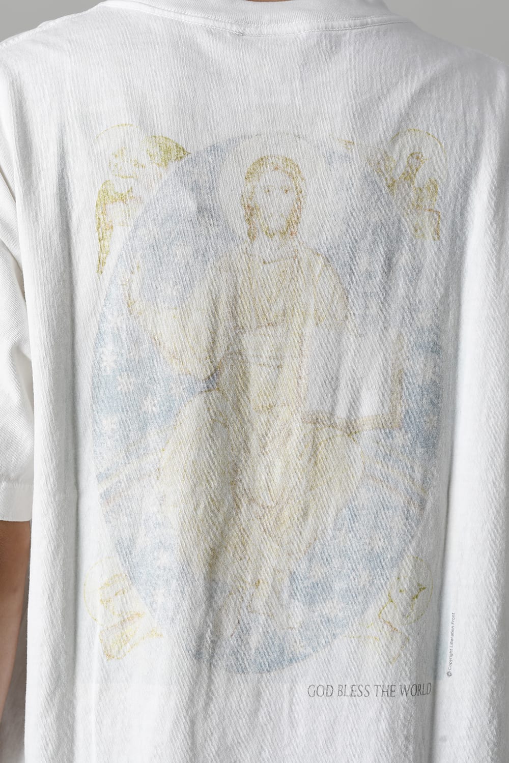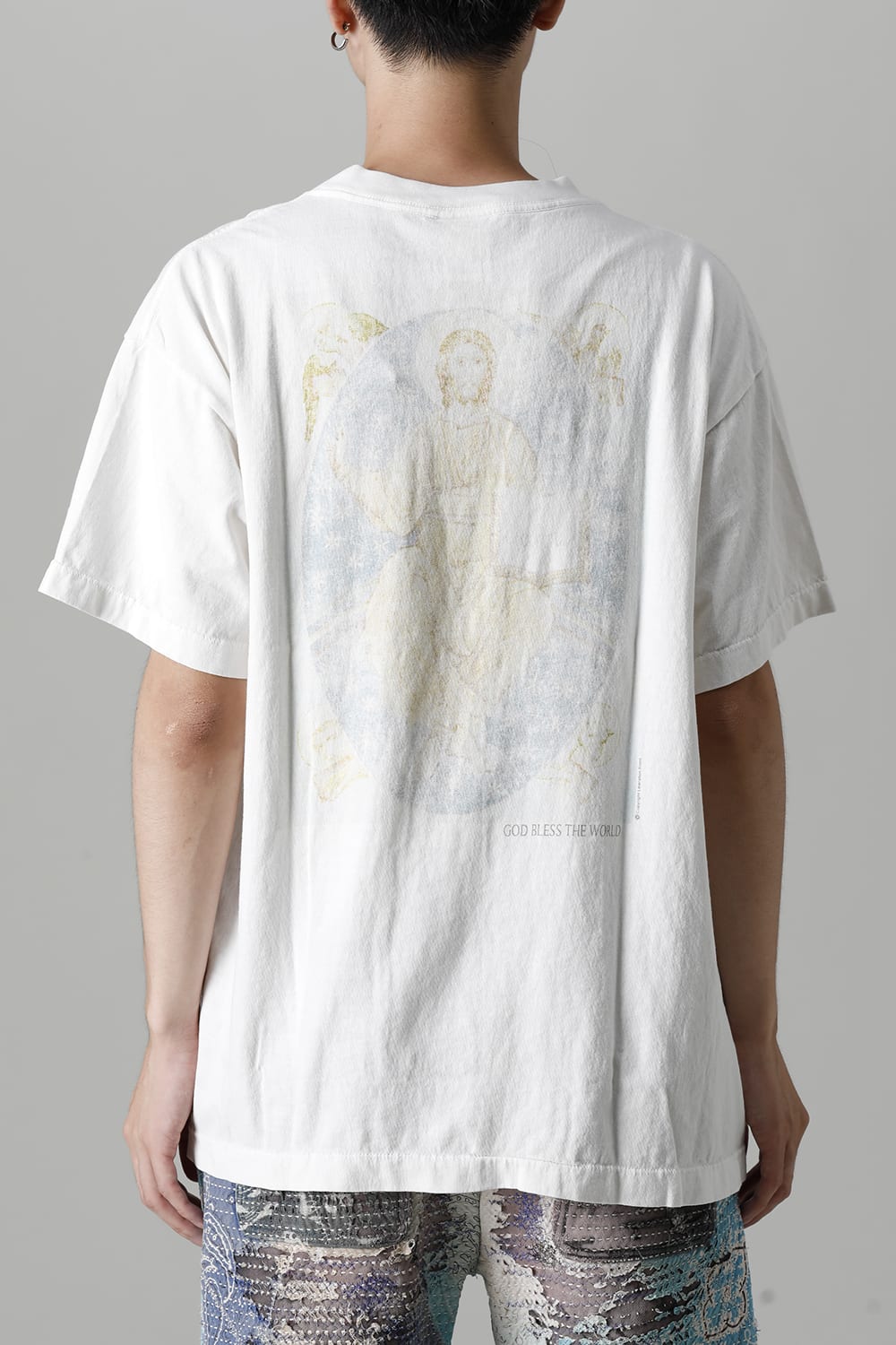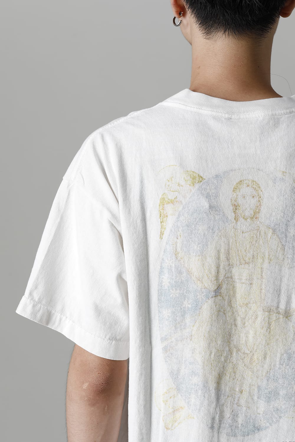 The front of this T-shirt features the "Virgin Mary" and the back has a graphic of "Jesus Christ" with a scratch print, which is a unique design of the brand.