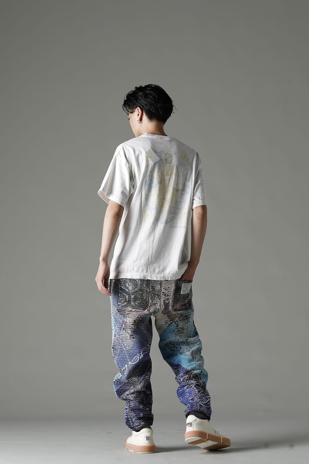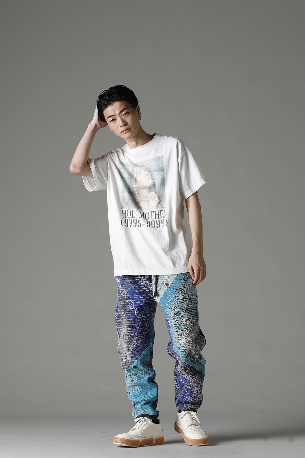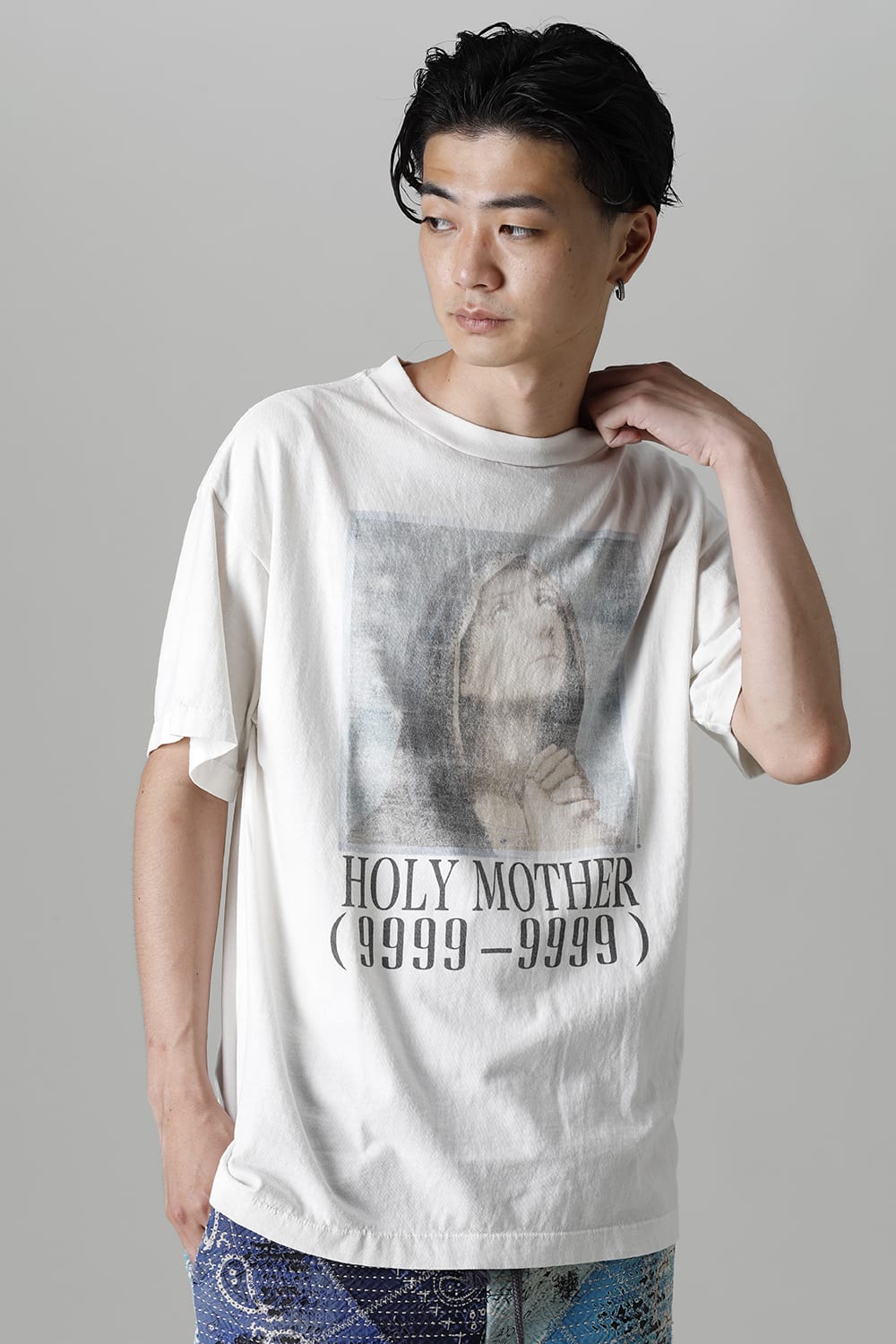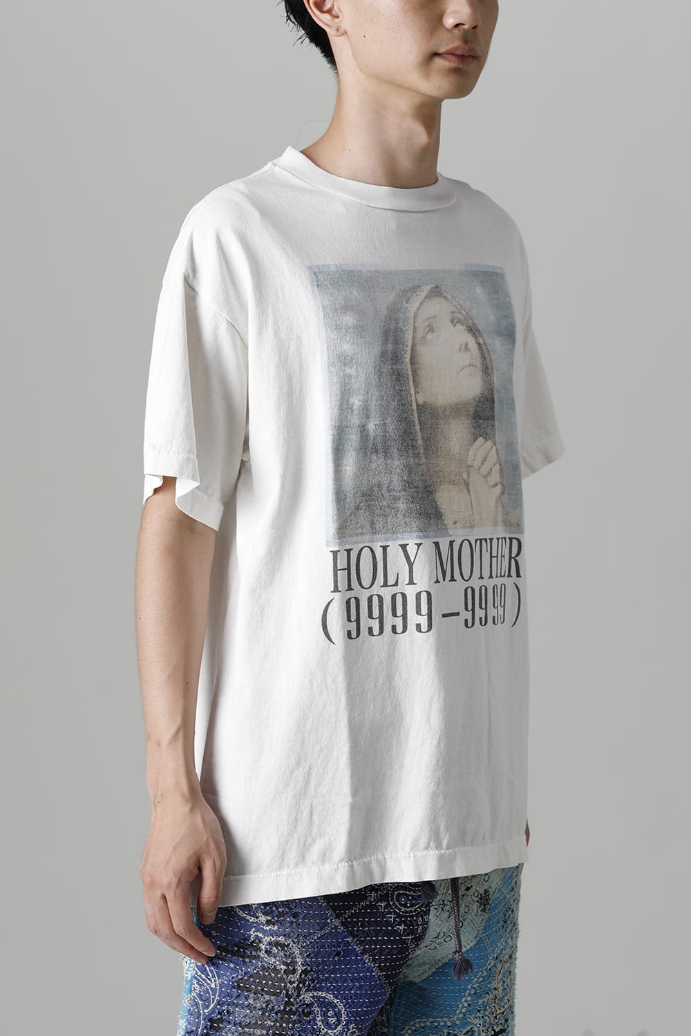 The front of this T-shirt features the "Virgin Mary" and the back has a graphic of "Jesus Christ" with a scratch print, which is a unique design of the brand.