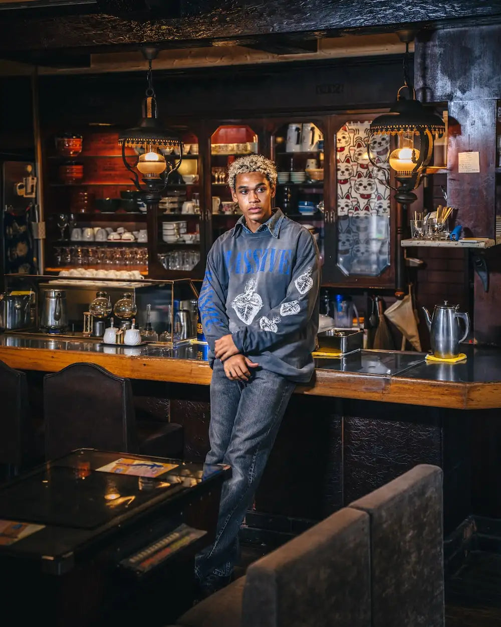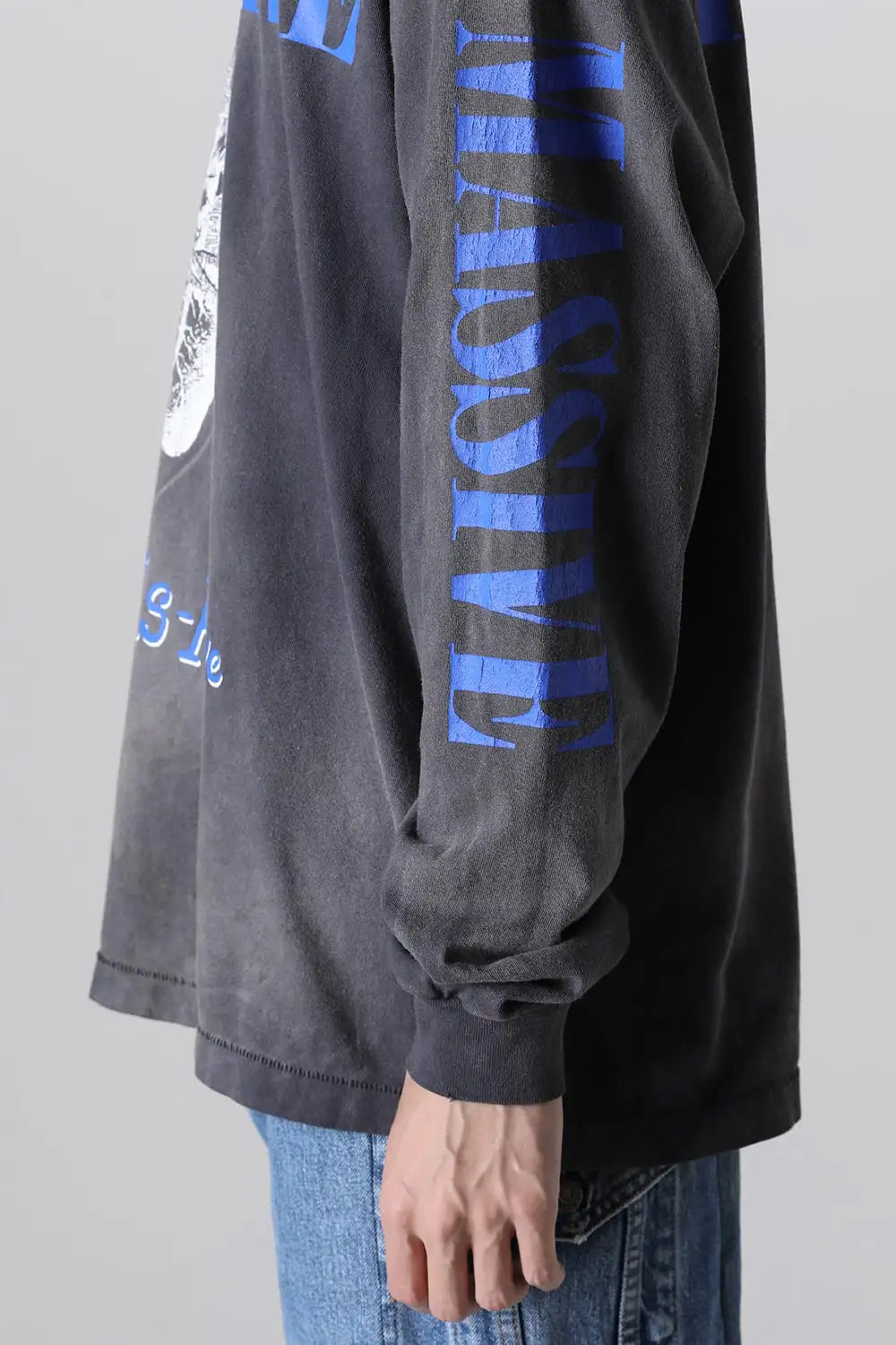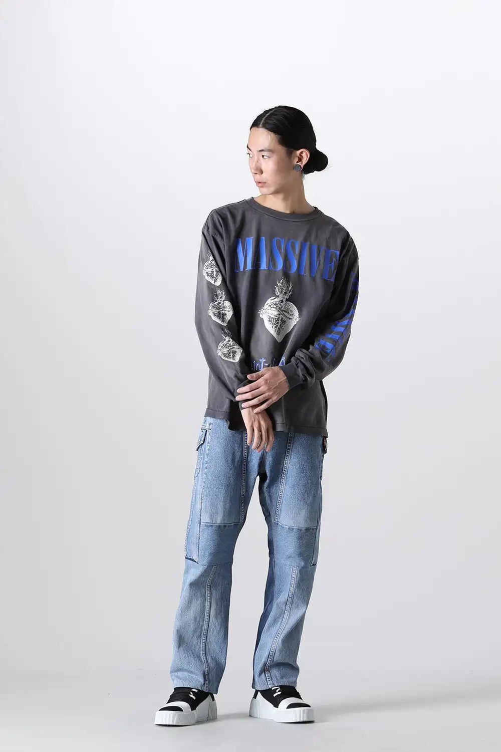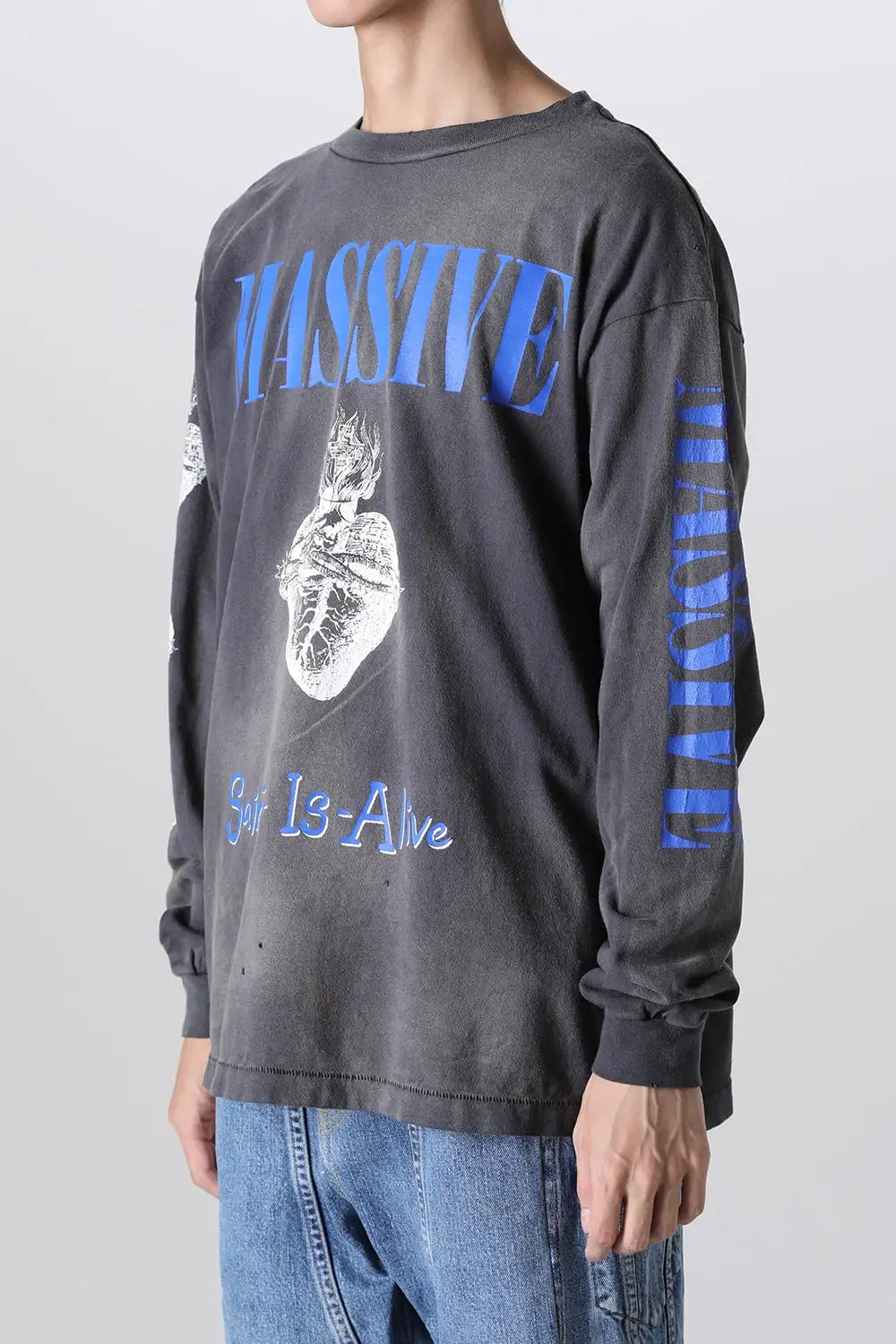 Long sleeve T-shirt with original graphic featuring a heart motif and blue-colored "MASSIVE" font.