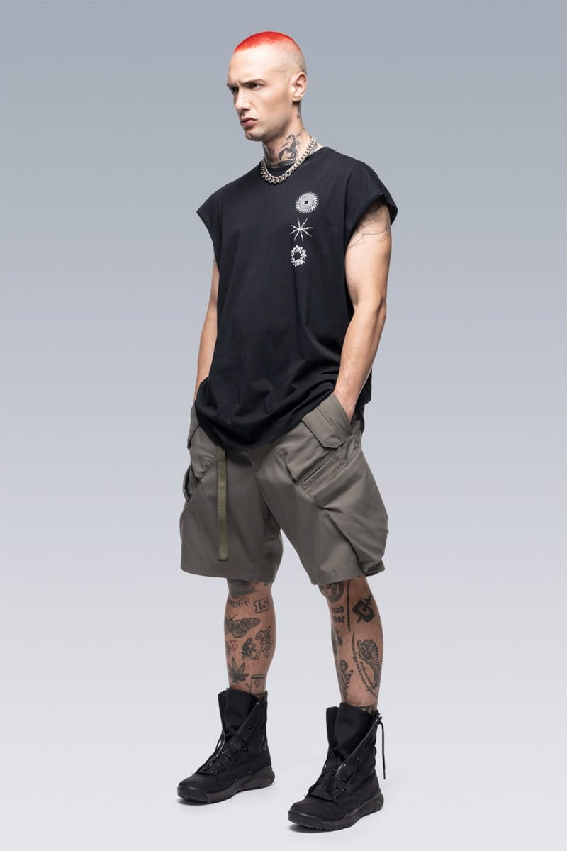 Nylon stretch material shorts with ACRONYM's signature military design.