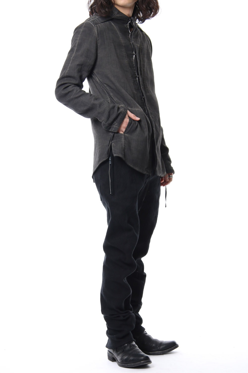 - Using cotton twill fabric with a double weave structure, the piece was first dyed beige and then was subjected to cold dye again. It features a sense of unevenness mixed with a complex beige and black.