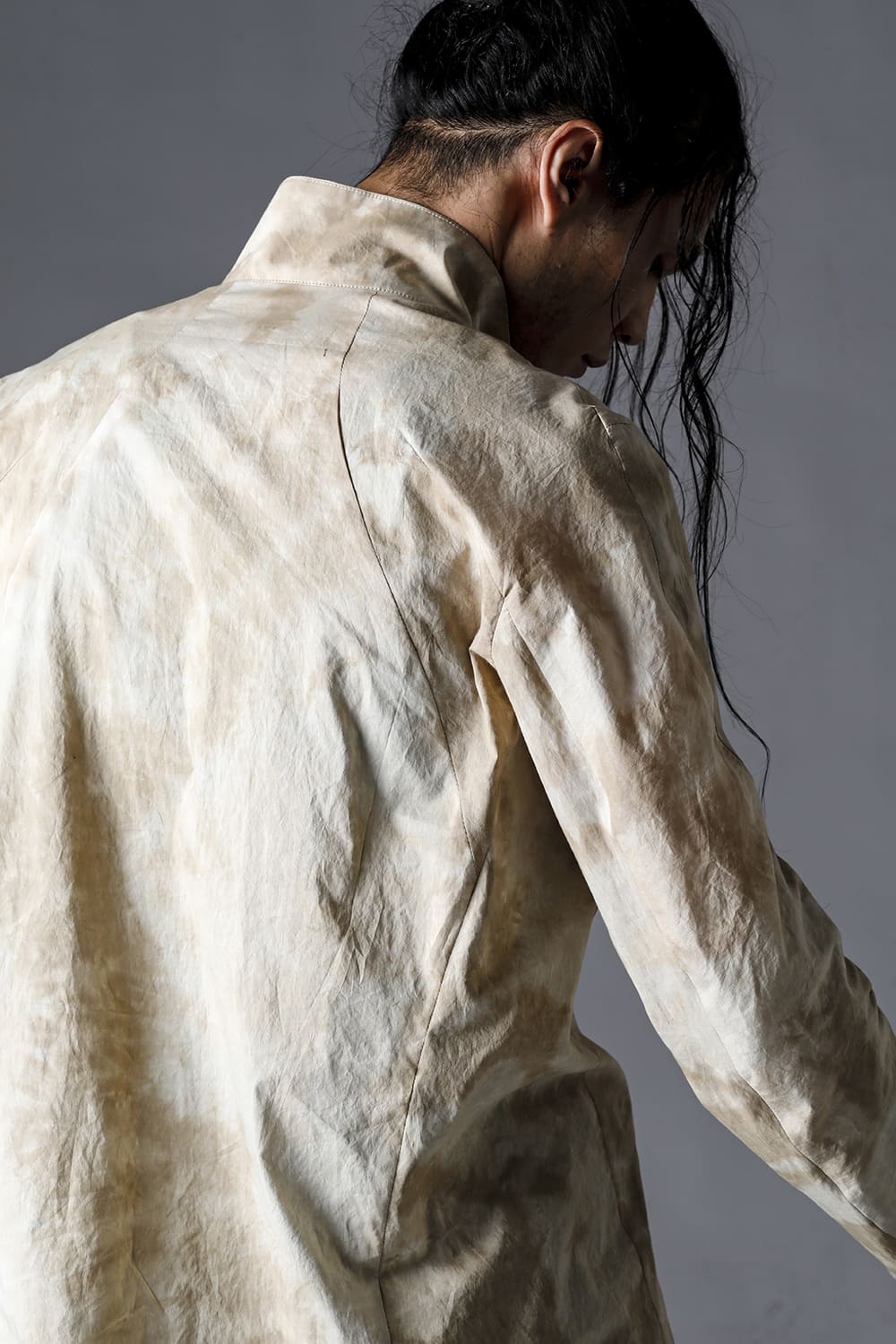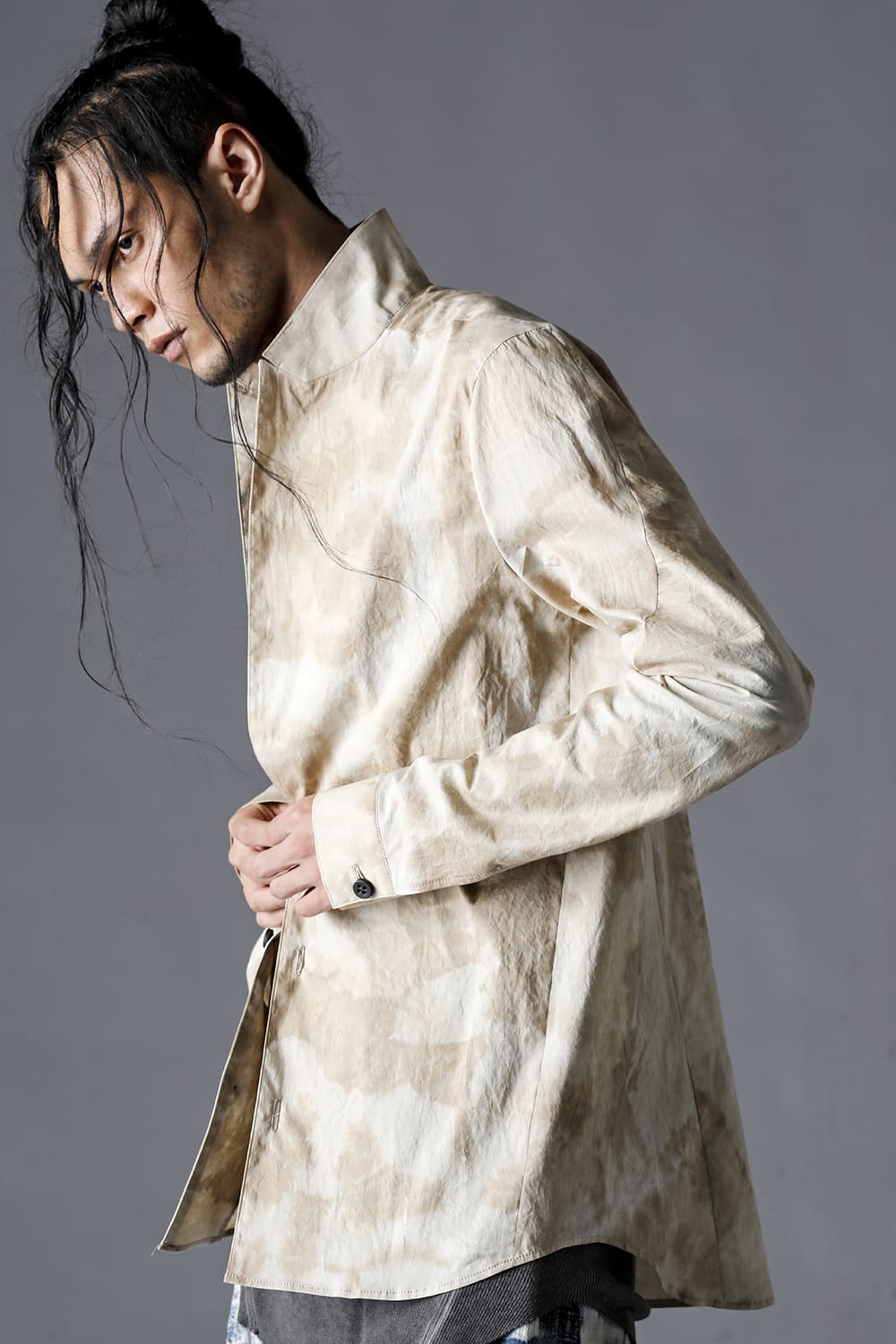 Mura-Dyed Cotton Lawn Tailored Shirt-Jacket Stream Sand