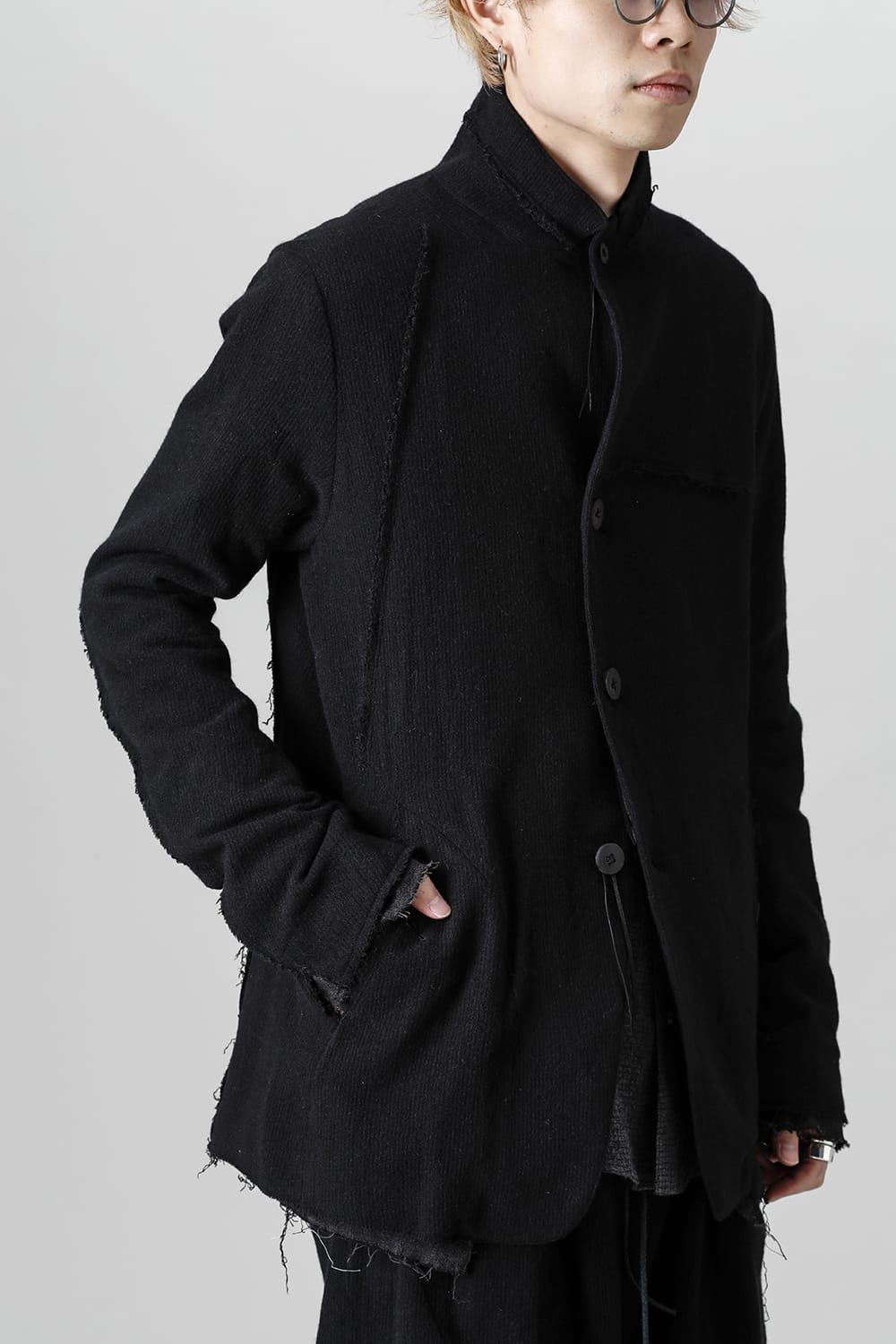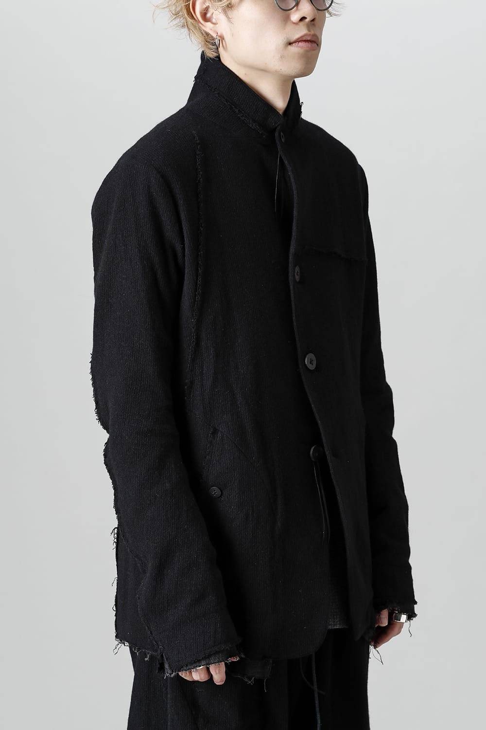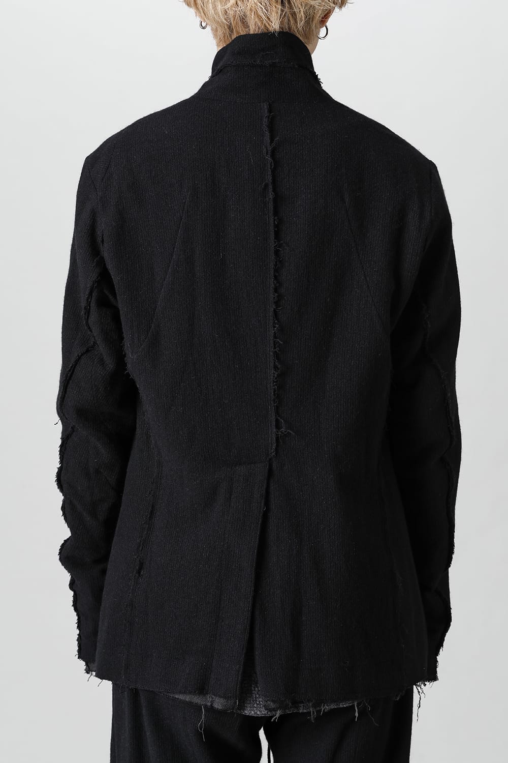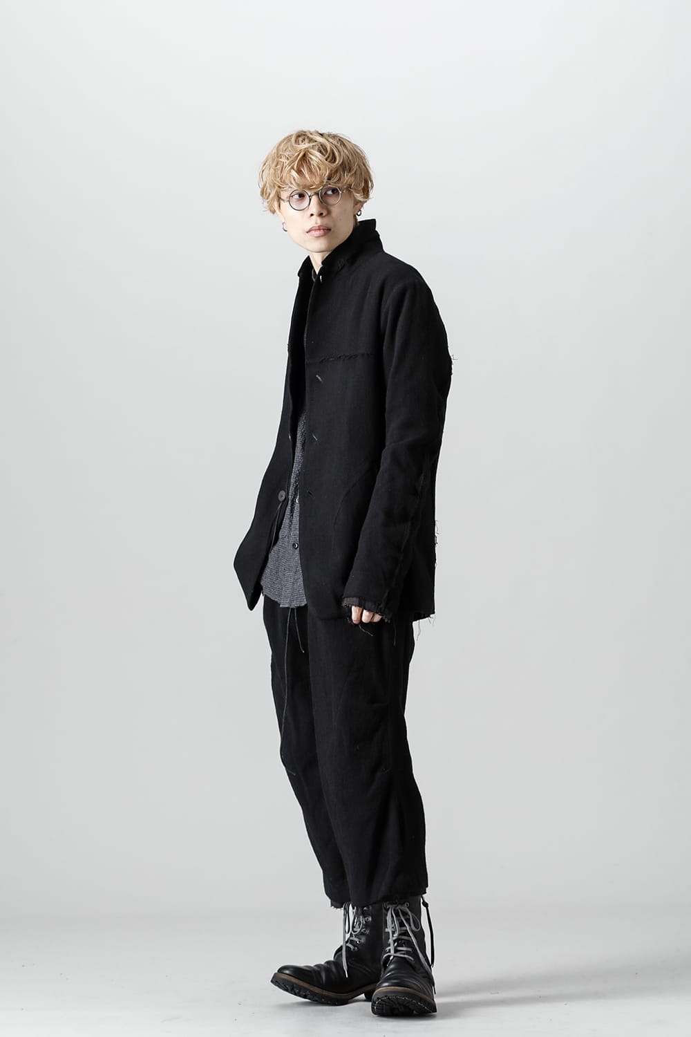 ・It can be worn with the lapel folded back with 3 buttons for a classical look or with the lapel standing up. Based on tailored JKT, the use of complicated darts creates a three-dimensional silhouette. Unconstructed.