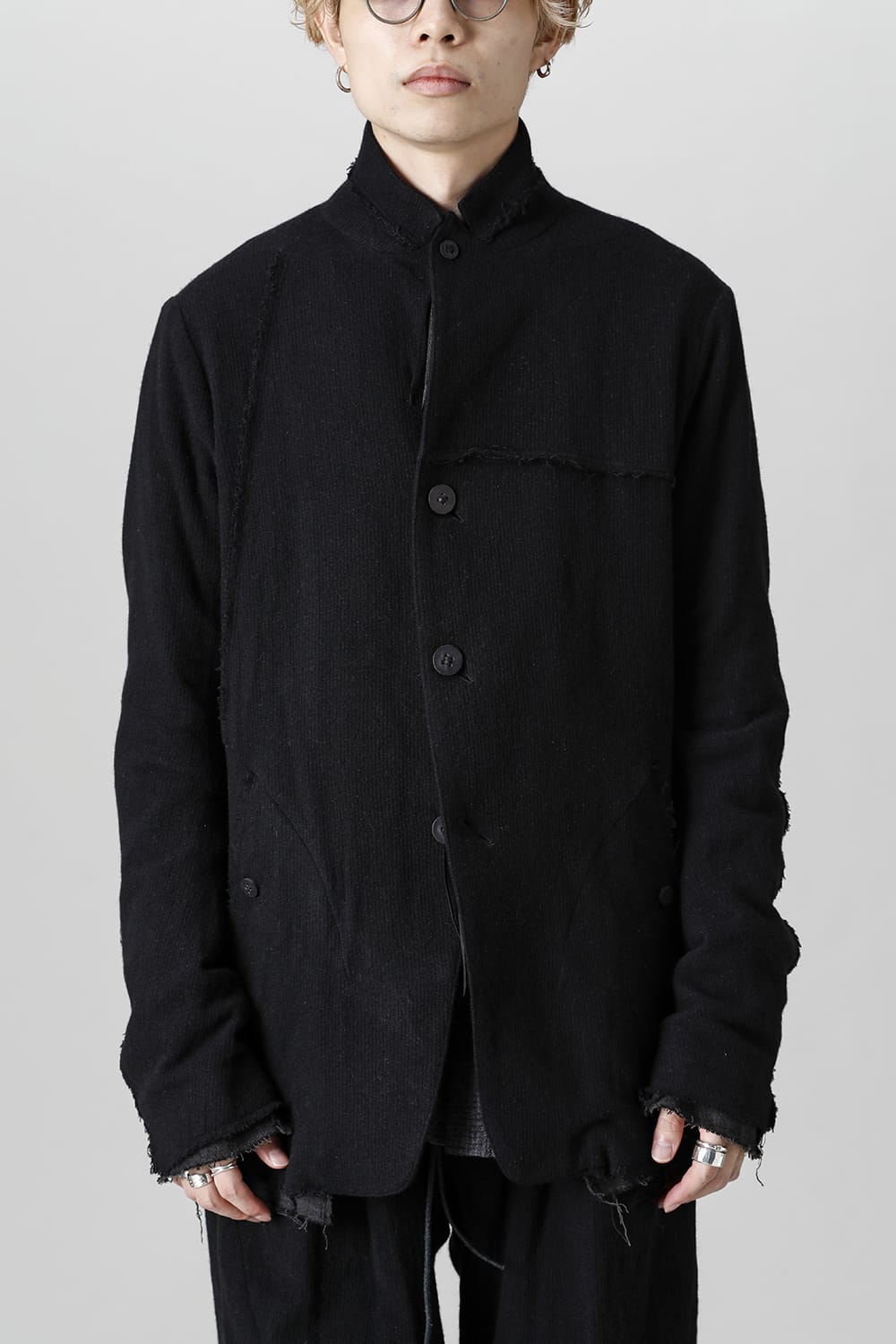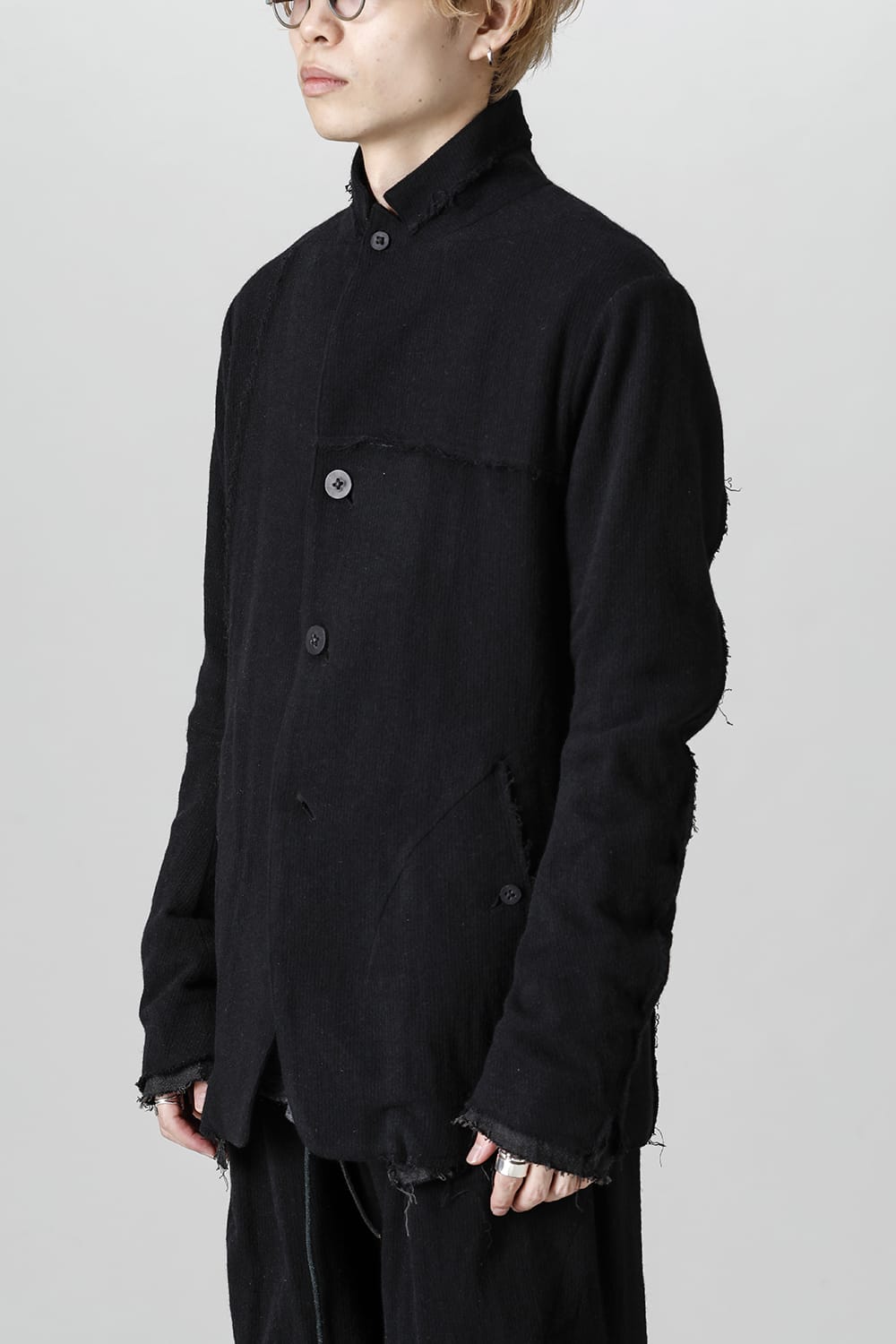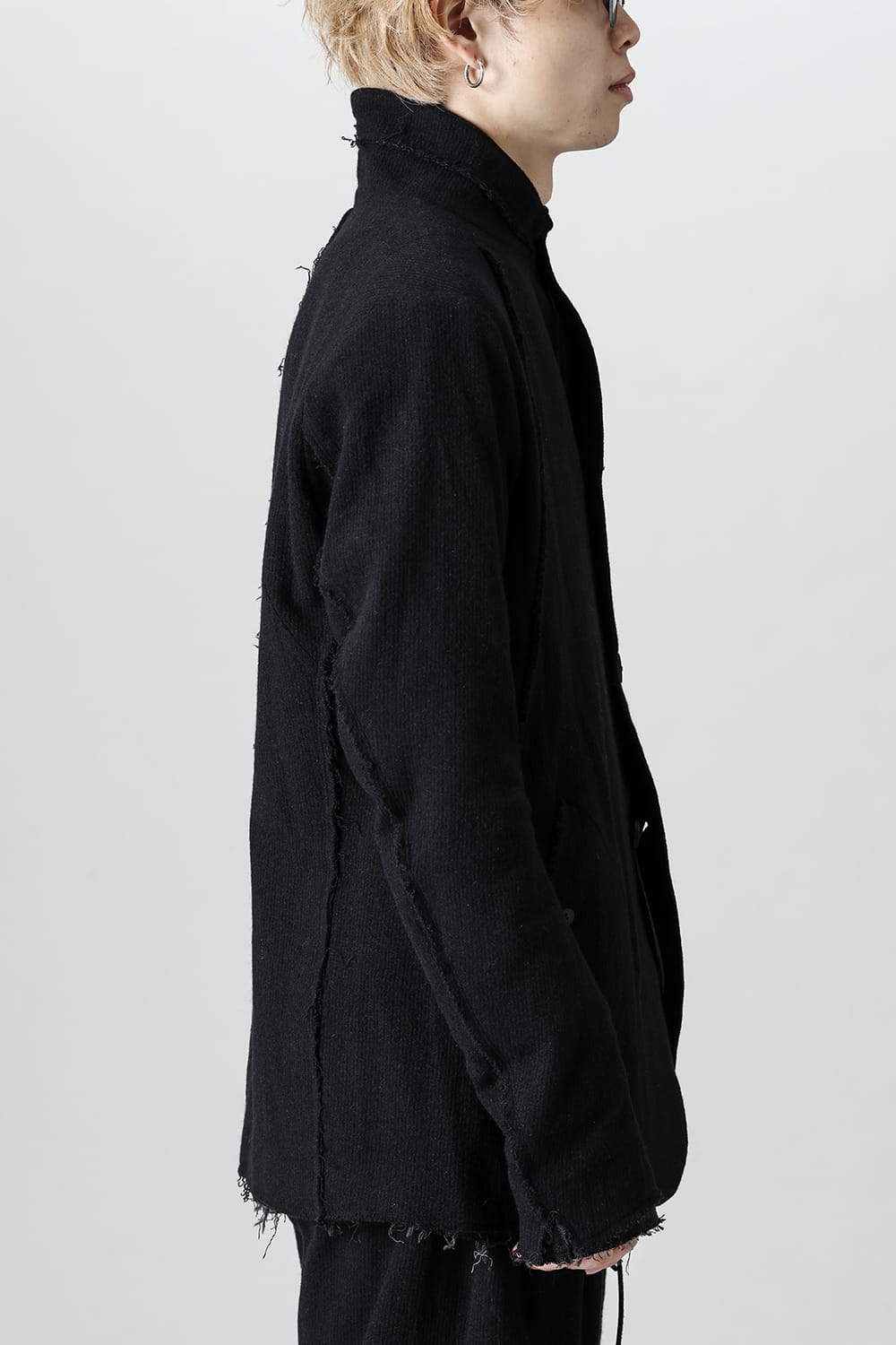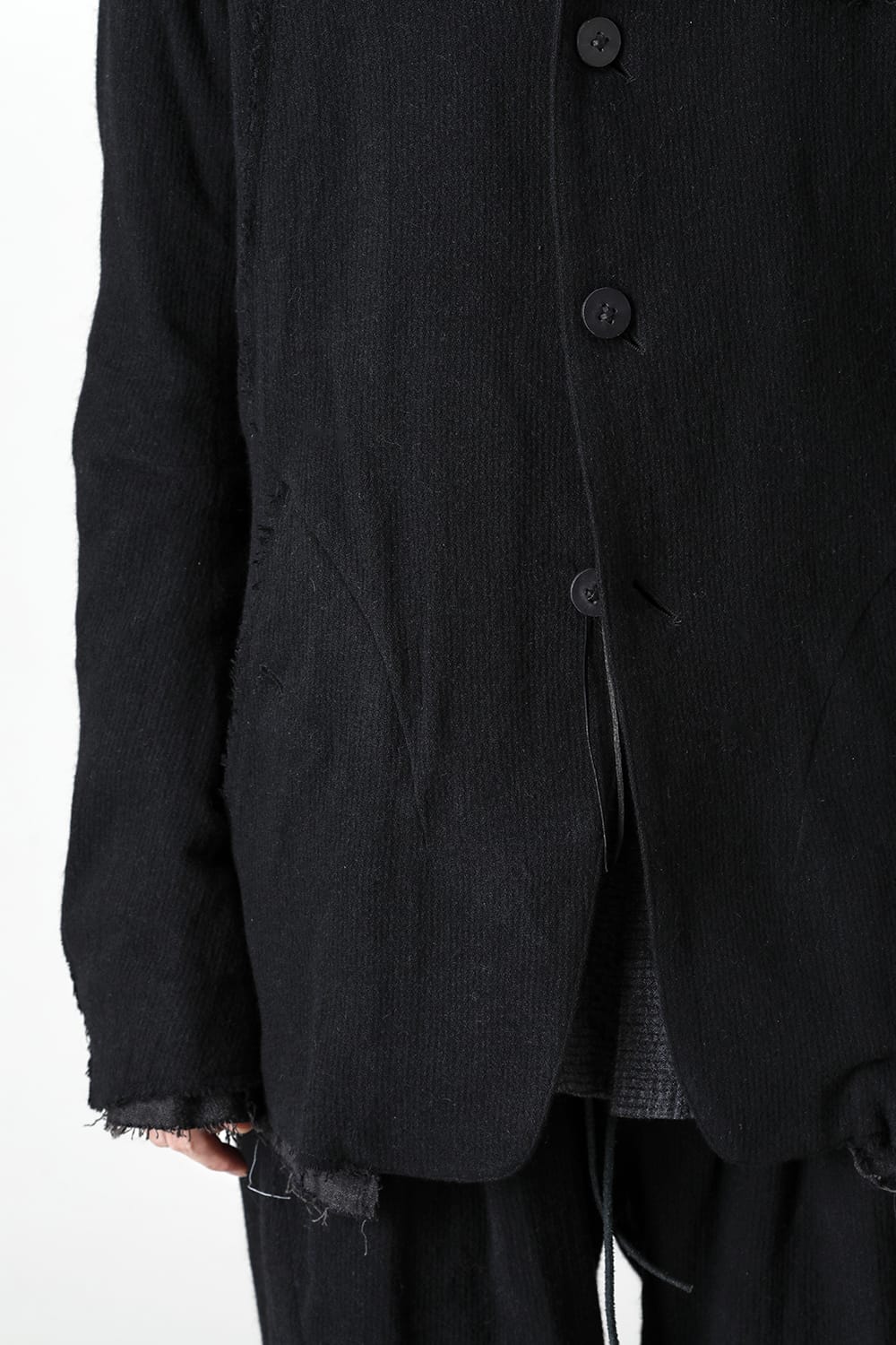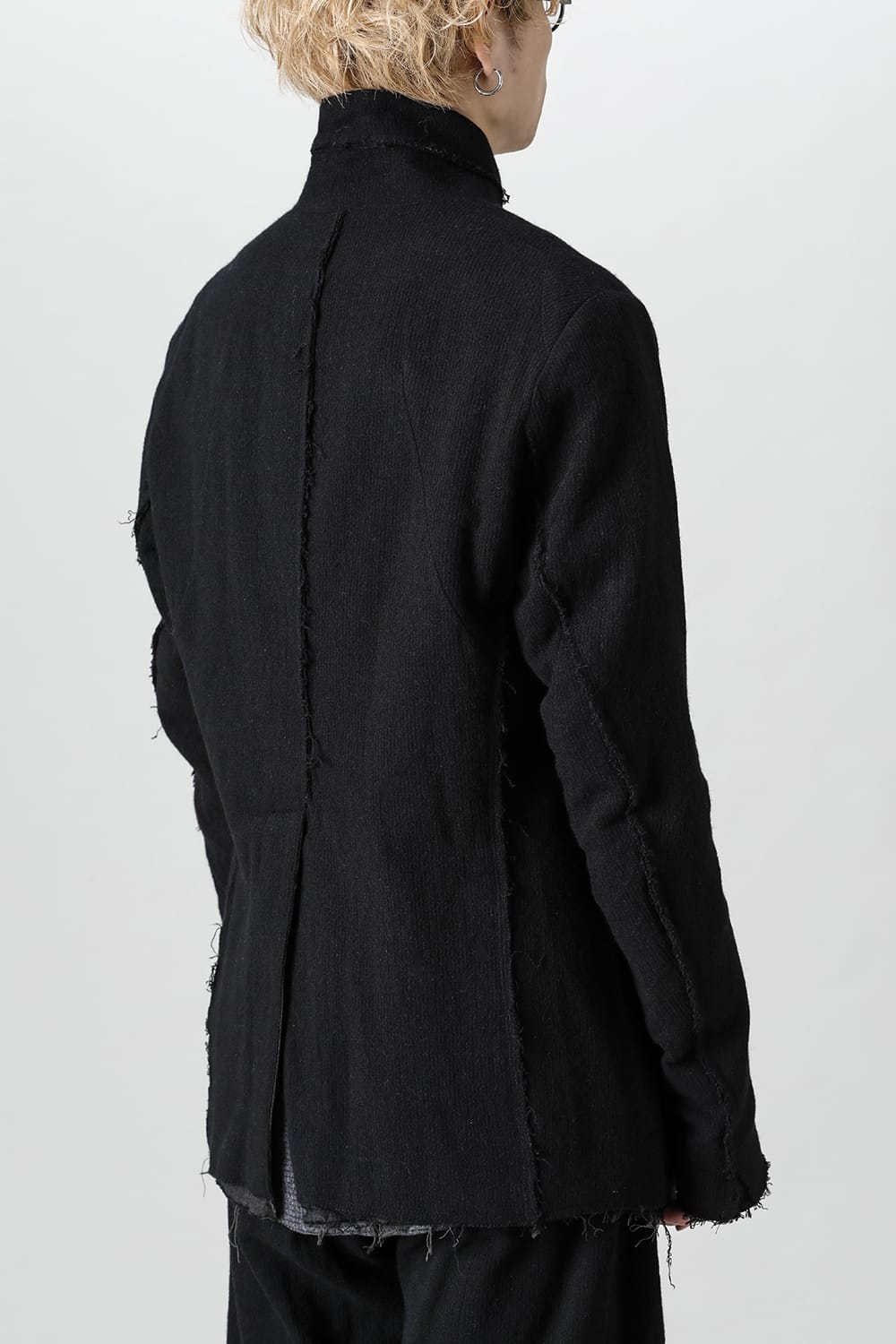 ・It can be worn with the lapel folded back with 3 buttons for a classical look or with the lapel standing up. Based on tailored JKT, the use of complicated darts creates a three-dimensional silhouette. Unconstructed.