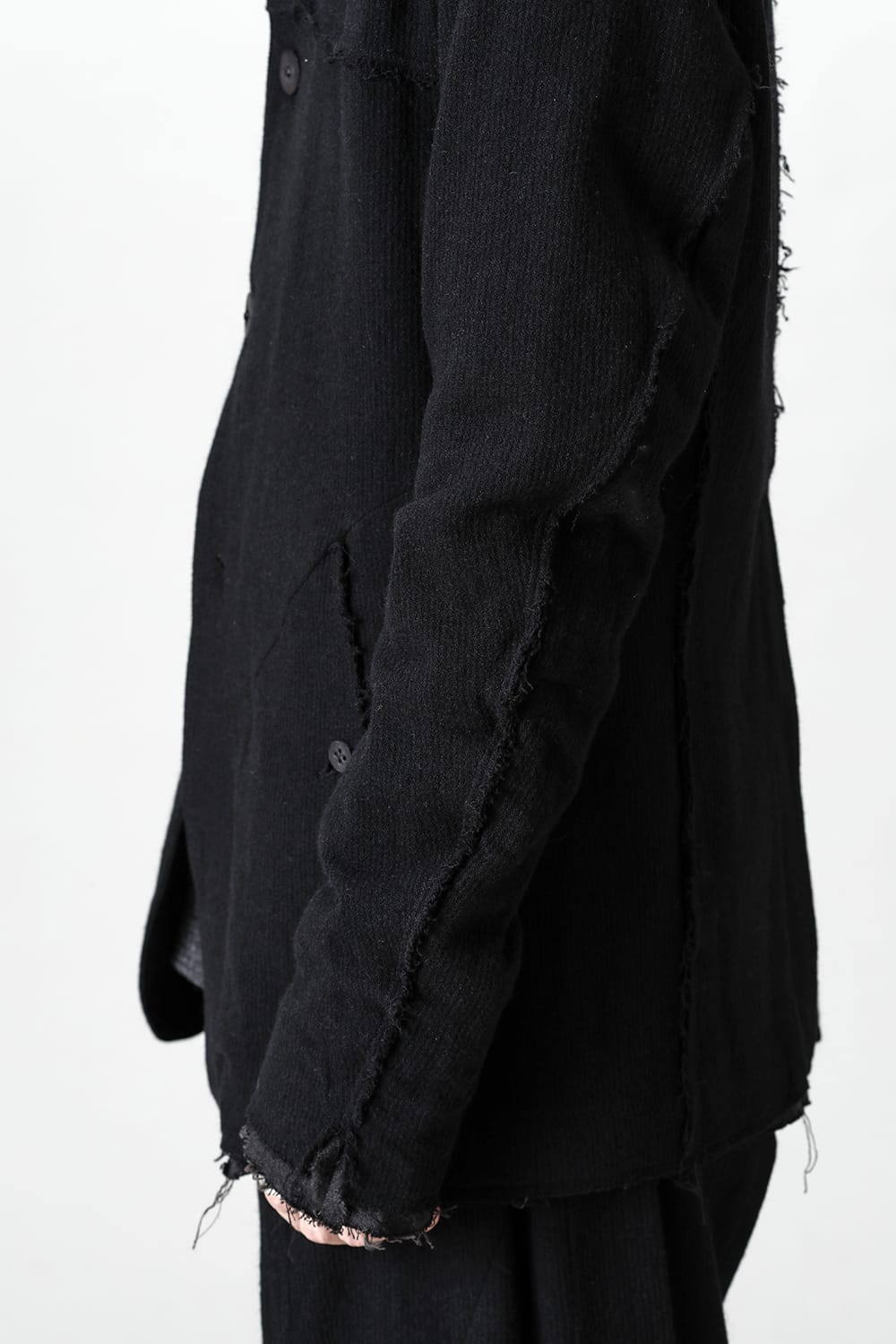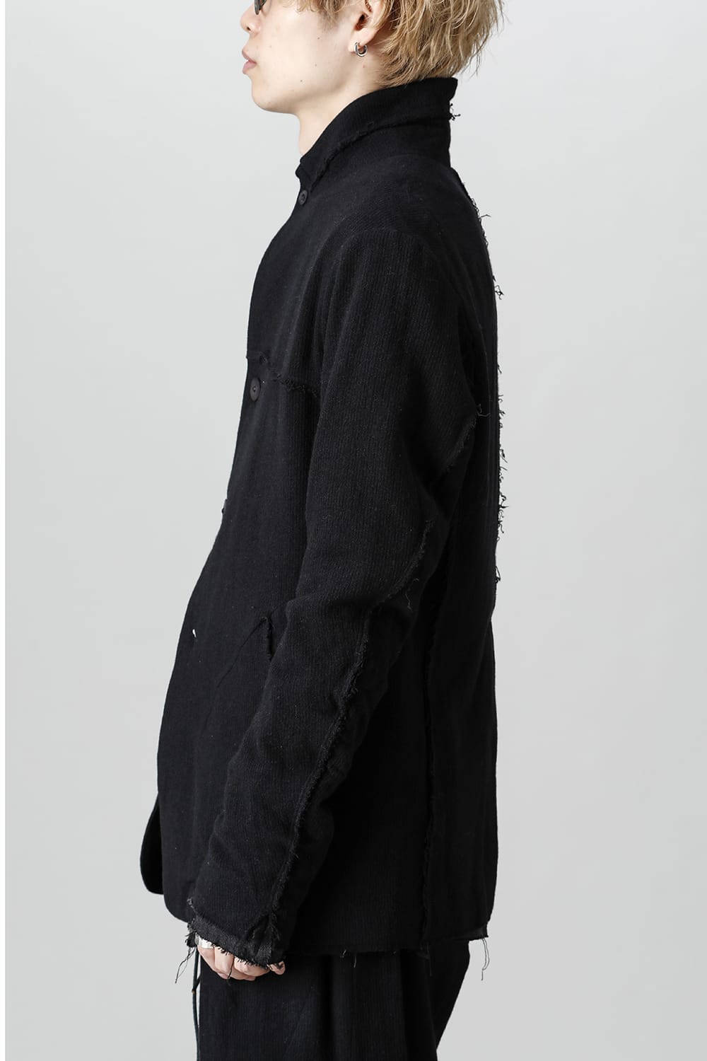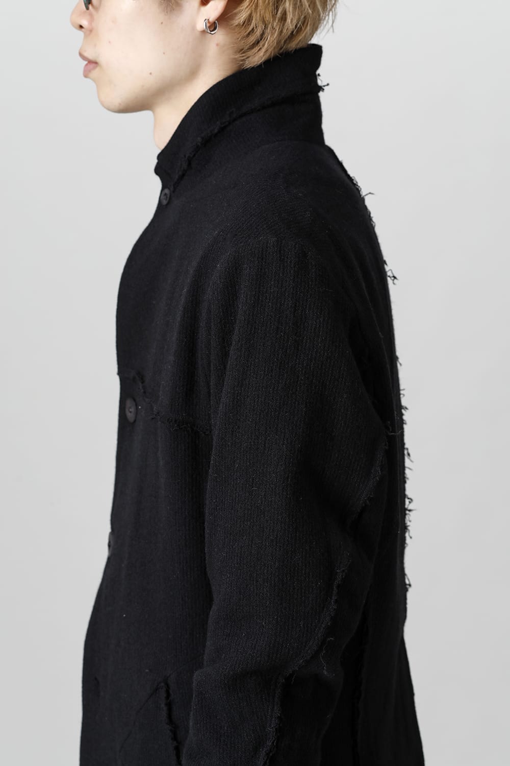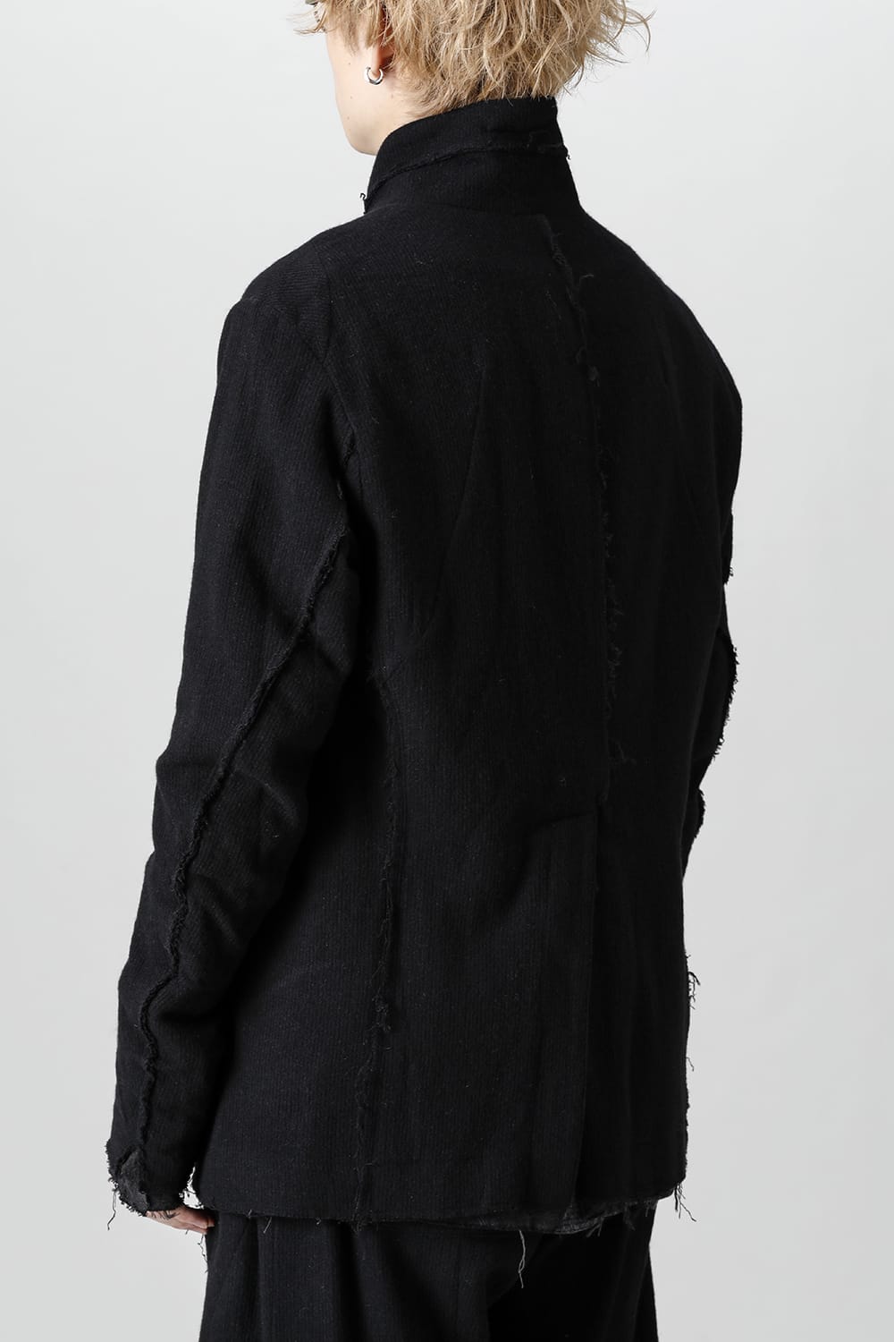 ・It can be worn with the lapel folded back with 3 buttons for a classical look or with the lapel standing up. Based on tailored JKT, the use of complicated darts creates a three-dimensional silhouette. Unconstructed.