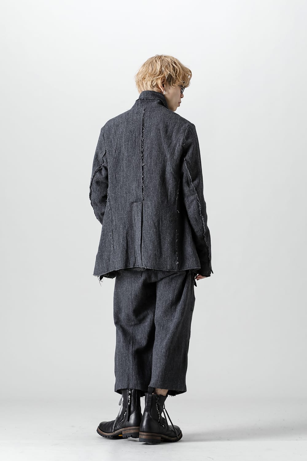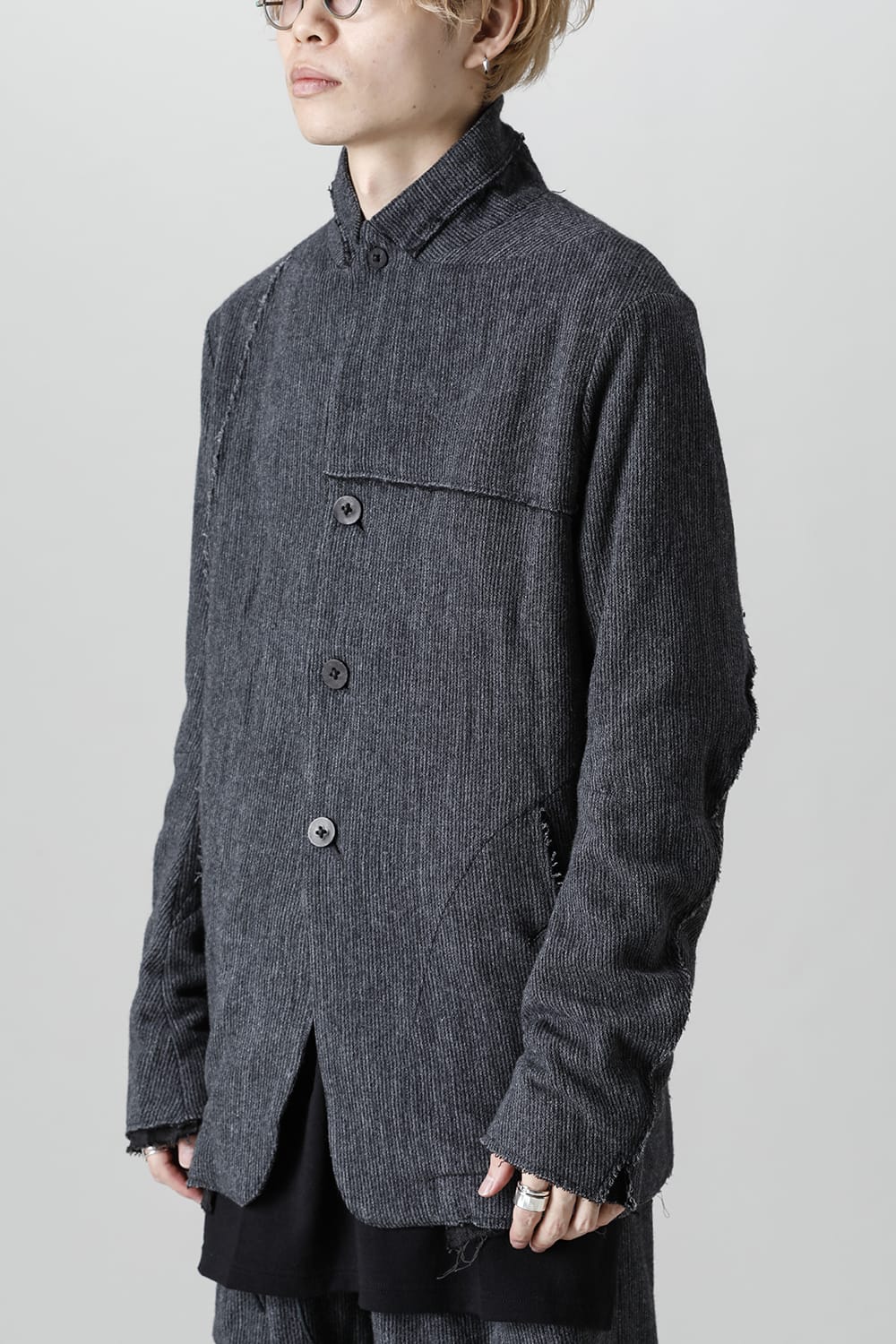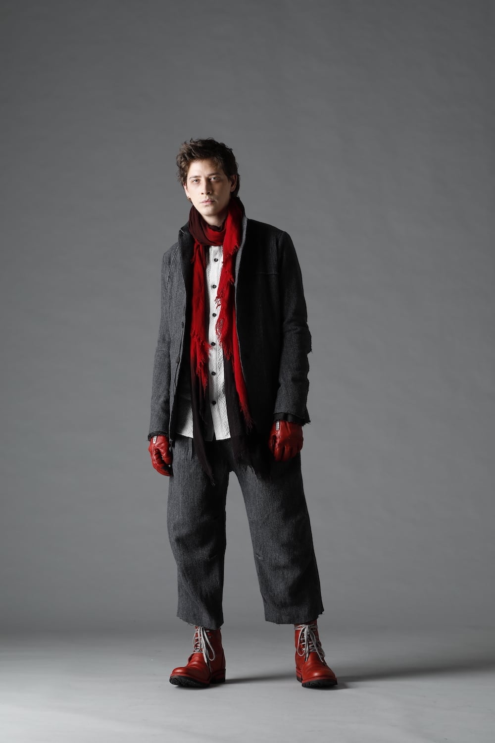・It can be worn with the lapel folded back with 3 buttons for a classical look or with the lapel standing up. Based on tailored JKT, the use of complicated darts creates a three-dimensional silhouette. Unconstructed.