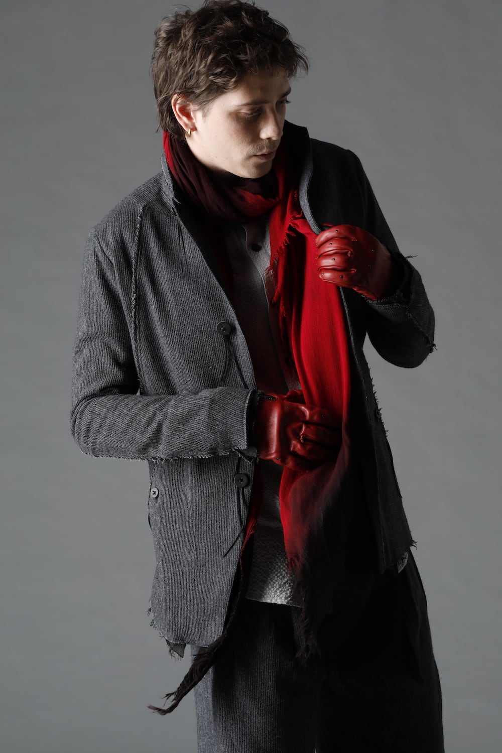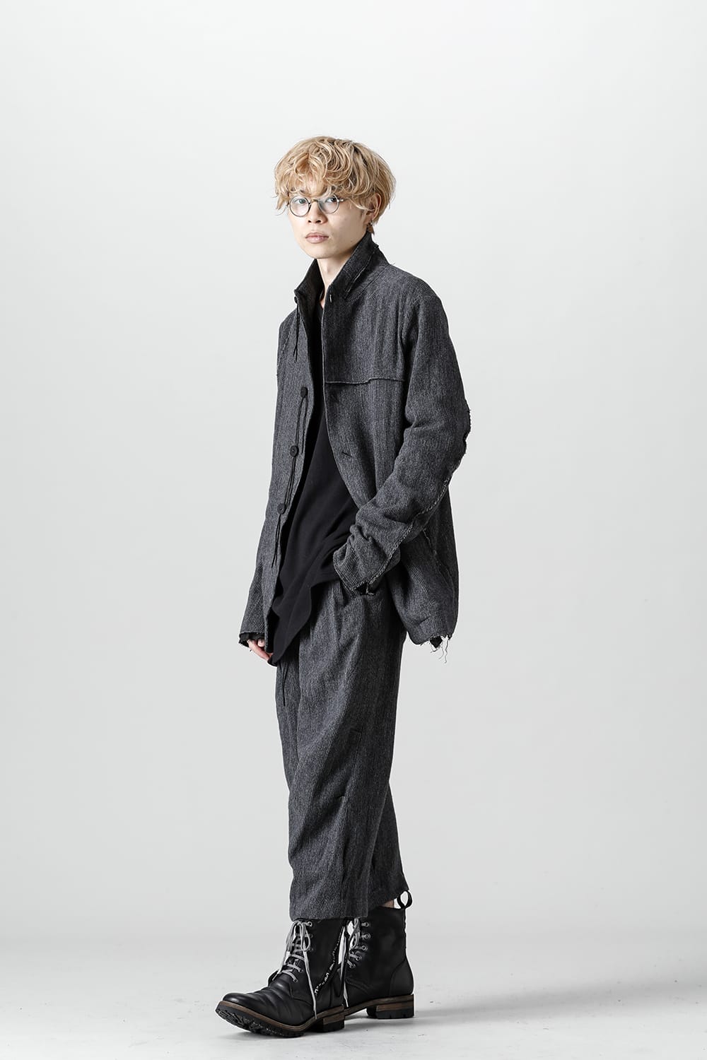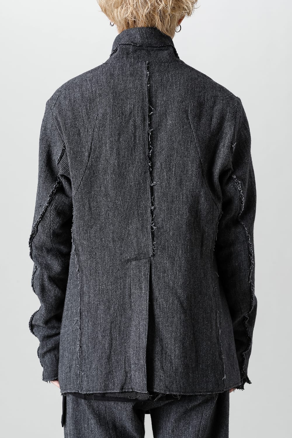 ・It can be worn with the lapel folded back with 3 buttons for a classical look or with the lapel standing up. Based on tailored JKT, the use of complicated darts creates a three-dimensional silhouette. Unconstructed.