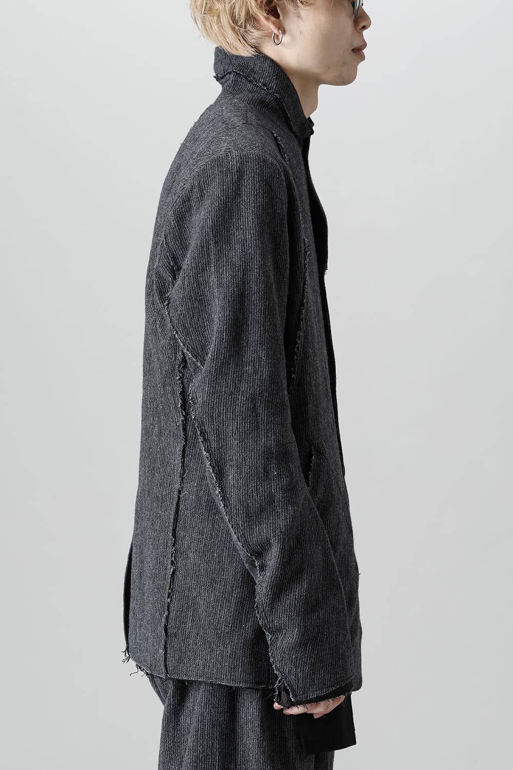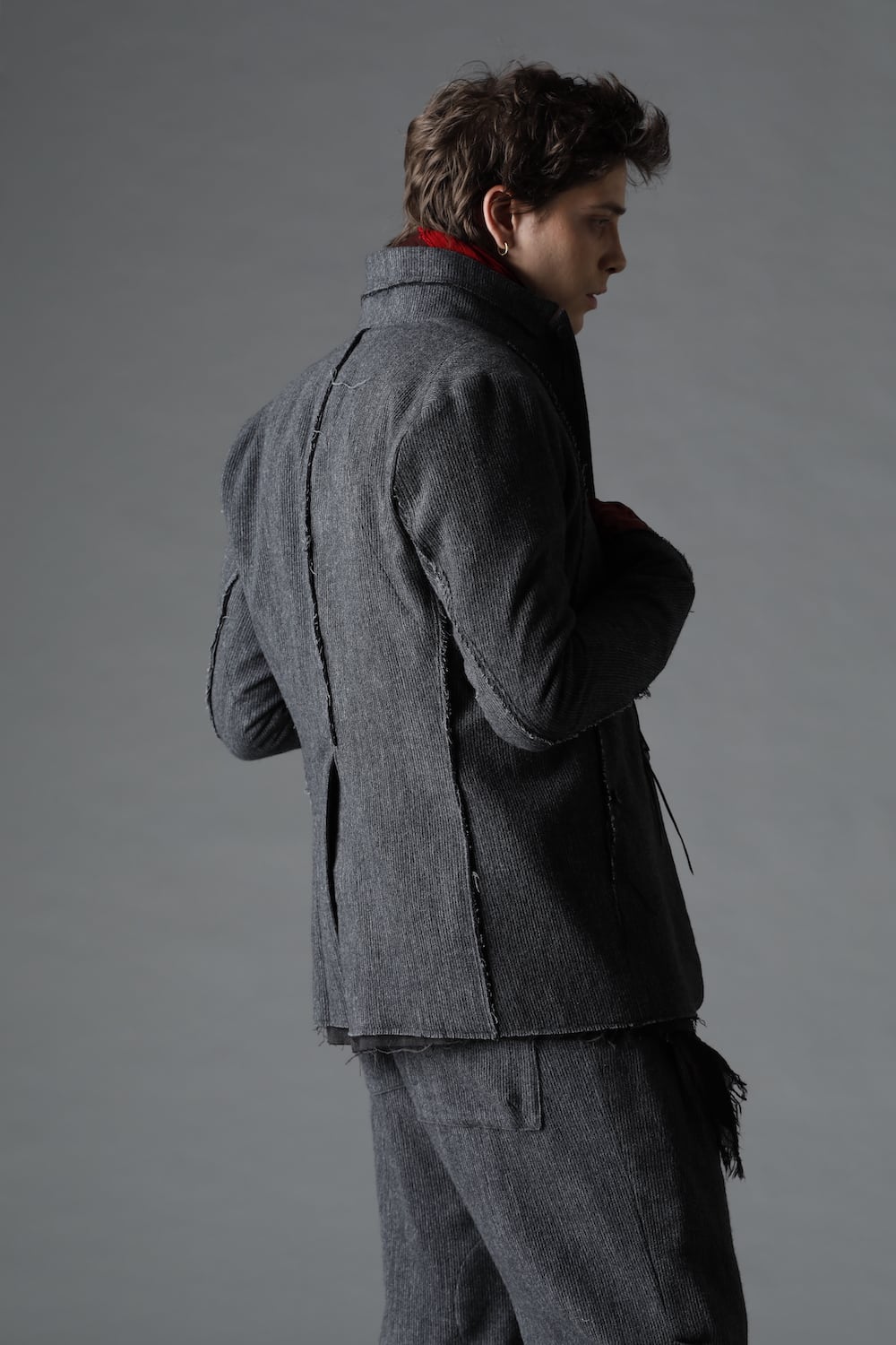 ・This item is made of a dobby stripe fabric with a soft texture made by mixing mohair. C/# CHACOAL is colored with the charcoal of warp and black of weft, and C/# BLACK is colored with the same color of warp and weft with dobby weave three-dimensional stripe.