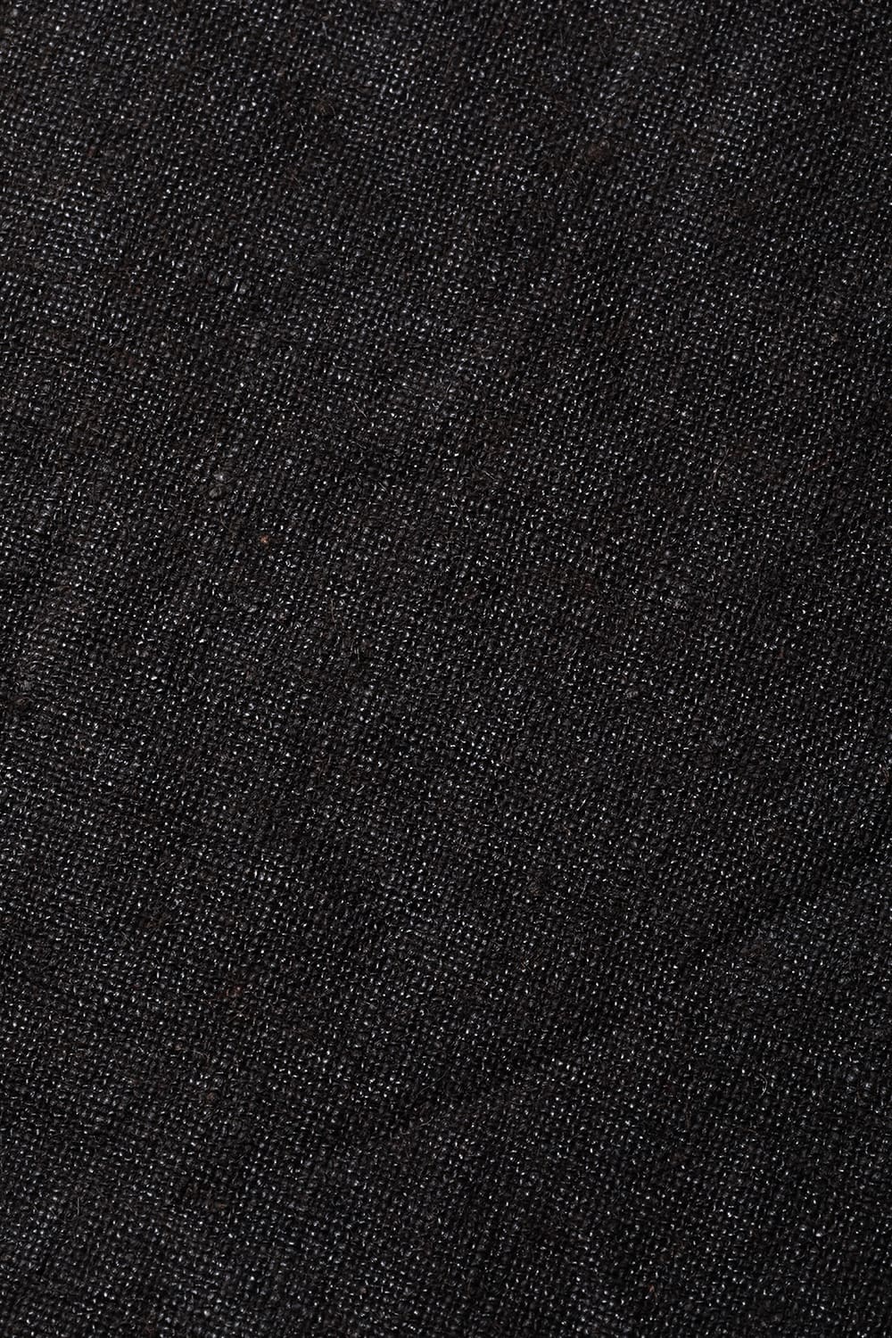 A linen plain weave fabric dyed with mud. After the dyeing process, the fabric is iron-roasted to increase its density, resulting in a unique mix of brown mud and black iron.