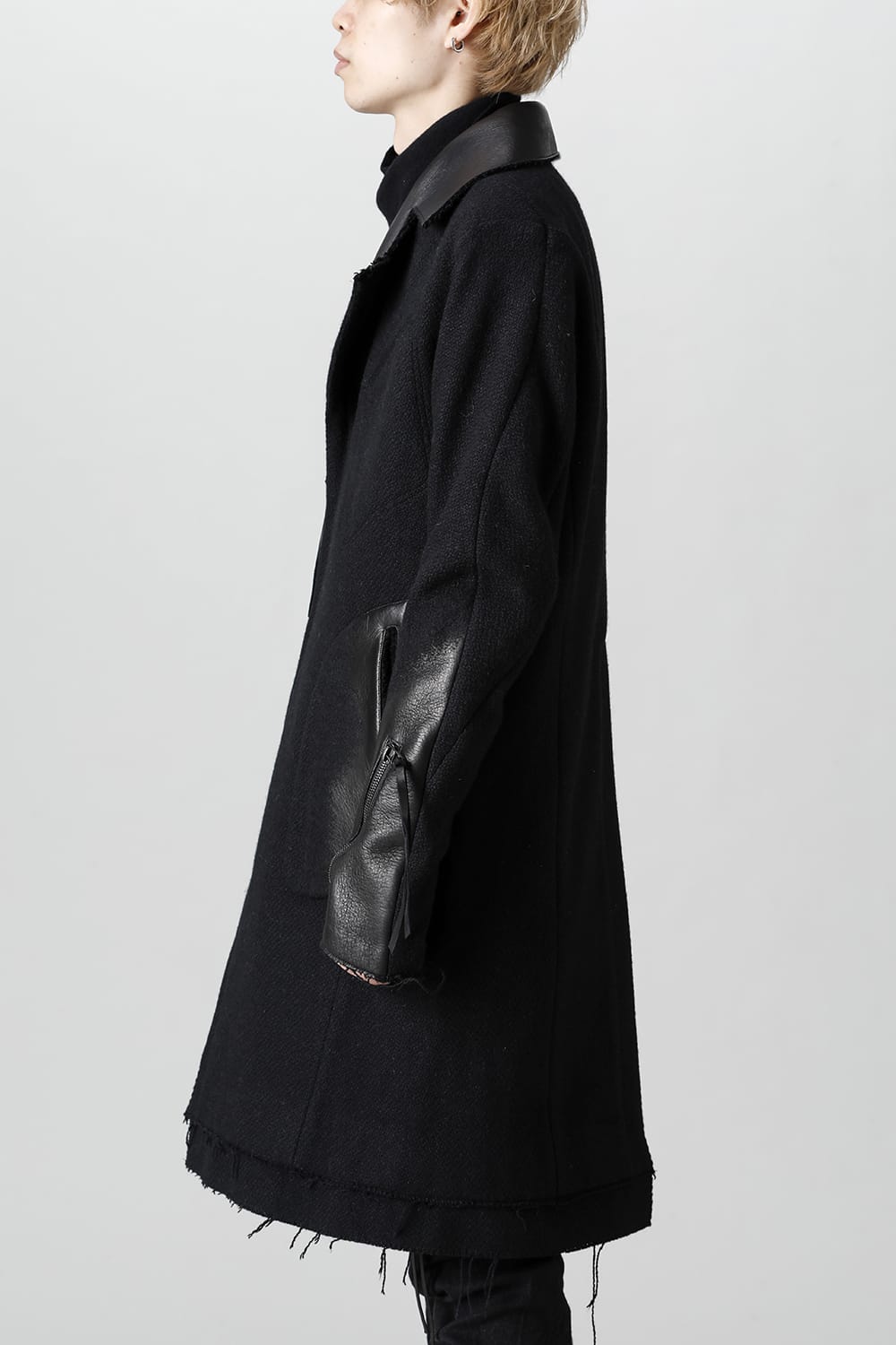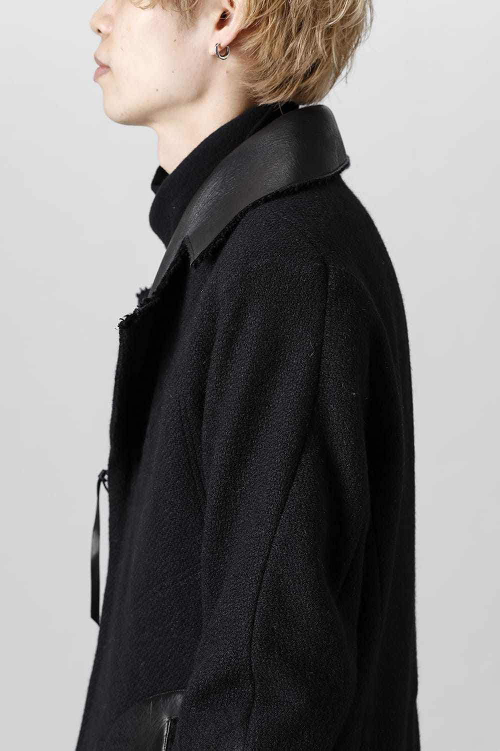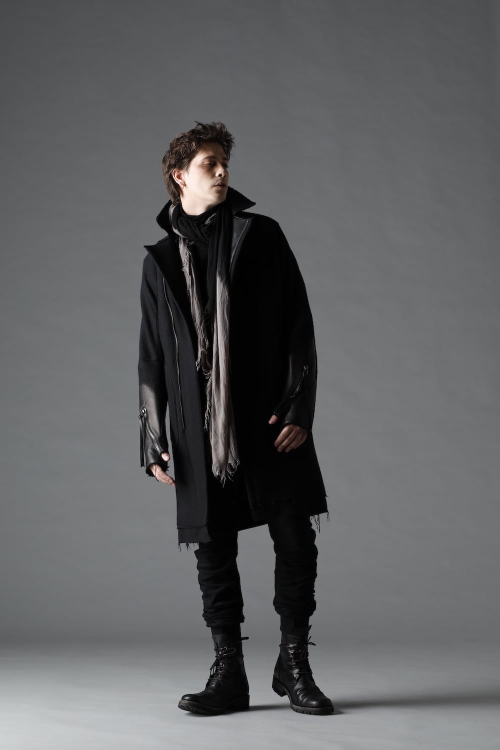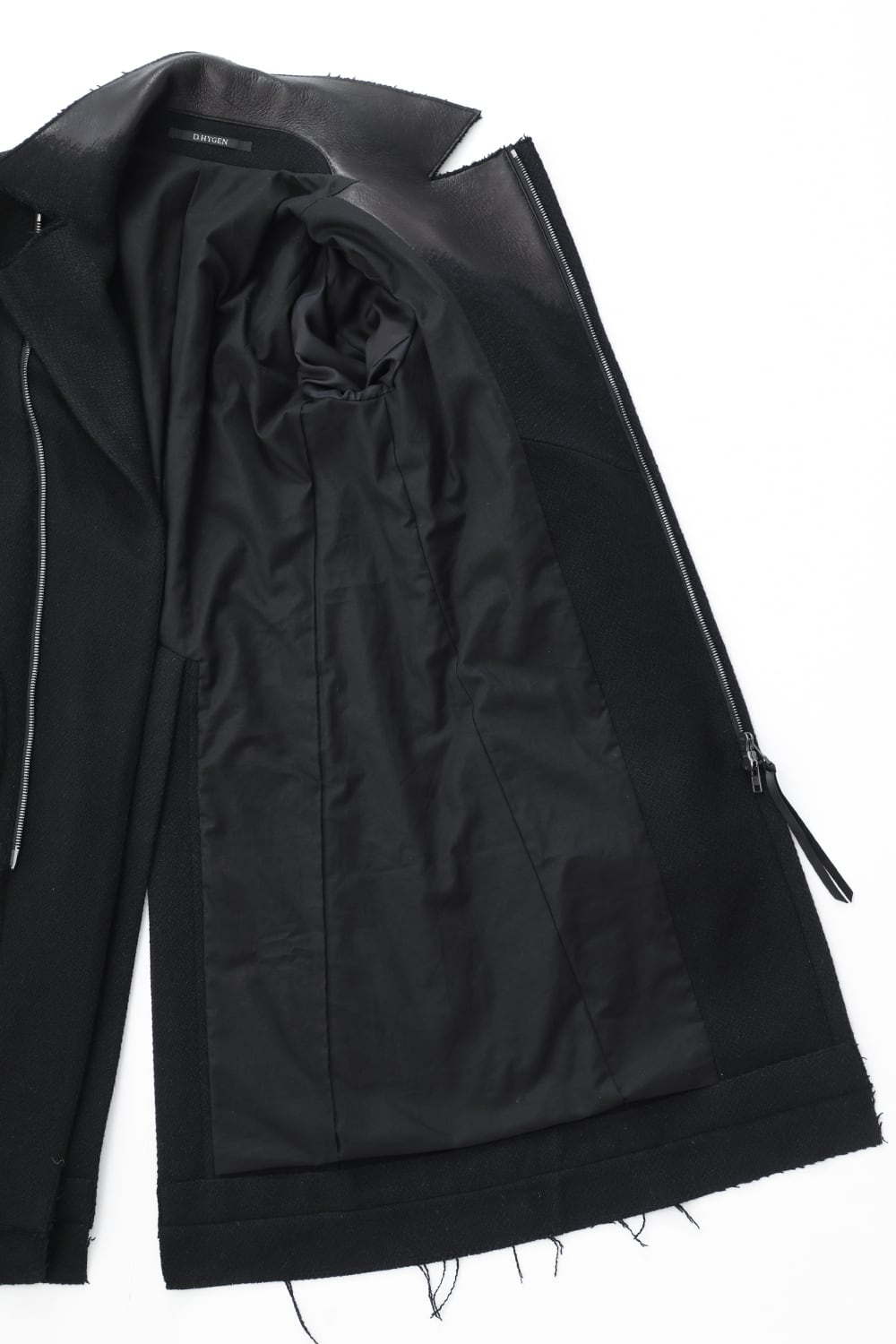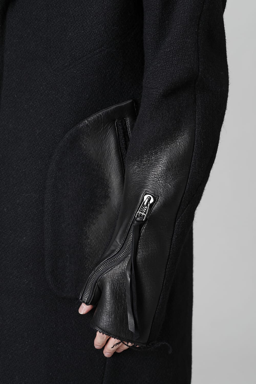・This design is accented with a gradation of leather and fabric by fusing the wool base fabric with a needle punch. The leather part is made of deerskin that is made as thin as possible.