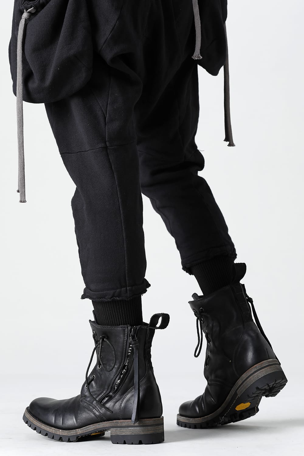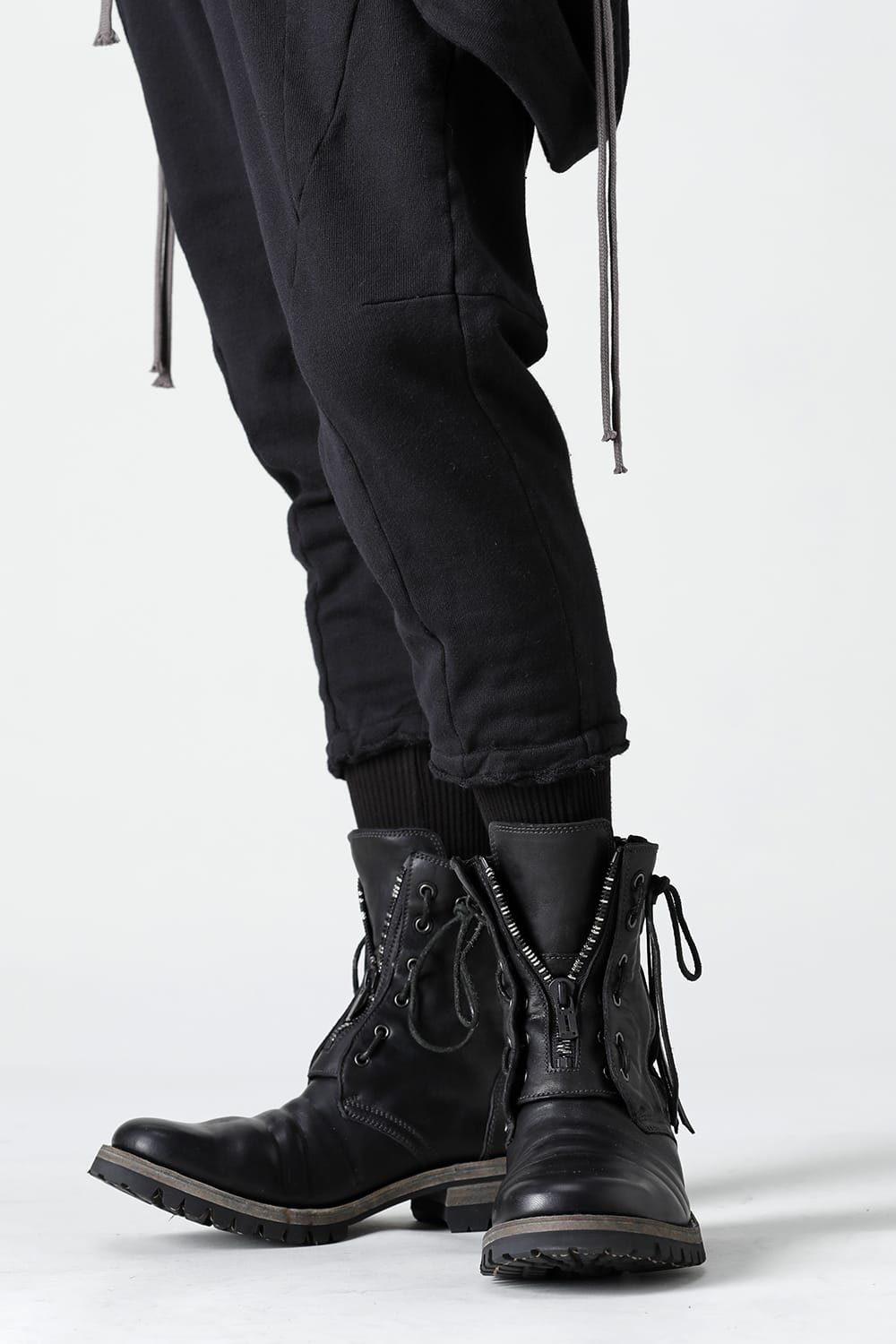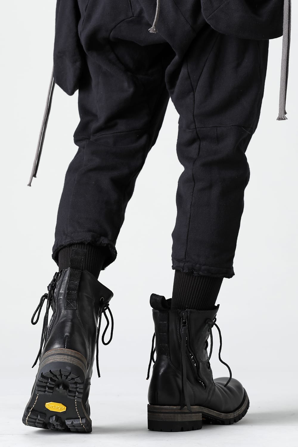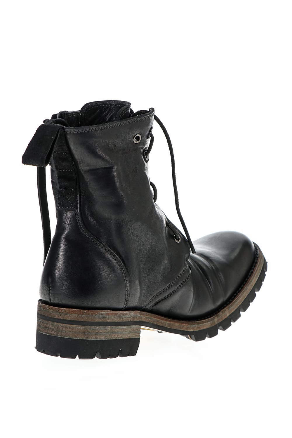 It is made of horse leather tanned with 1.5 mm thick full vegetable tannin. The attachment of Fireman boots is attached to the front, and you can smoothly put on and take off by opening and closing the zipper. It is a lace-up boots with flat and smooth round toe, voluminous width to ankle length and thin shaft, and a sharp silhouette.