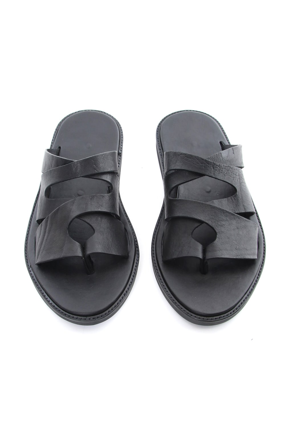 Leather sandals made of intertwined fabric. You can enjoy the changes over time and they will fit your feet as you wear them.