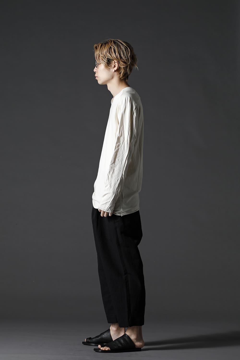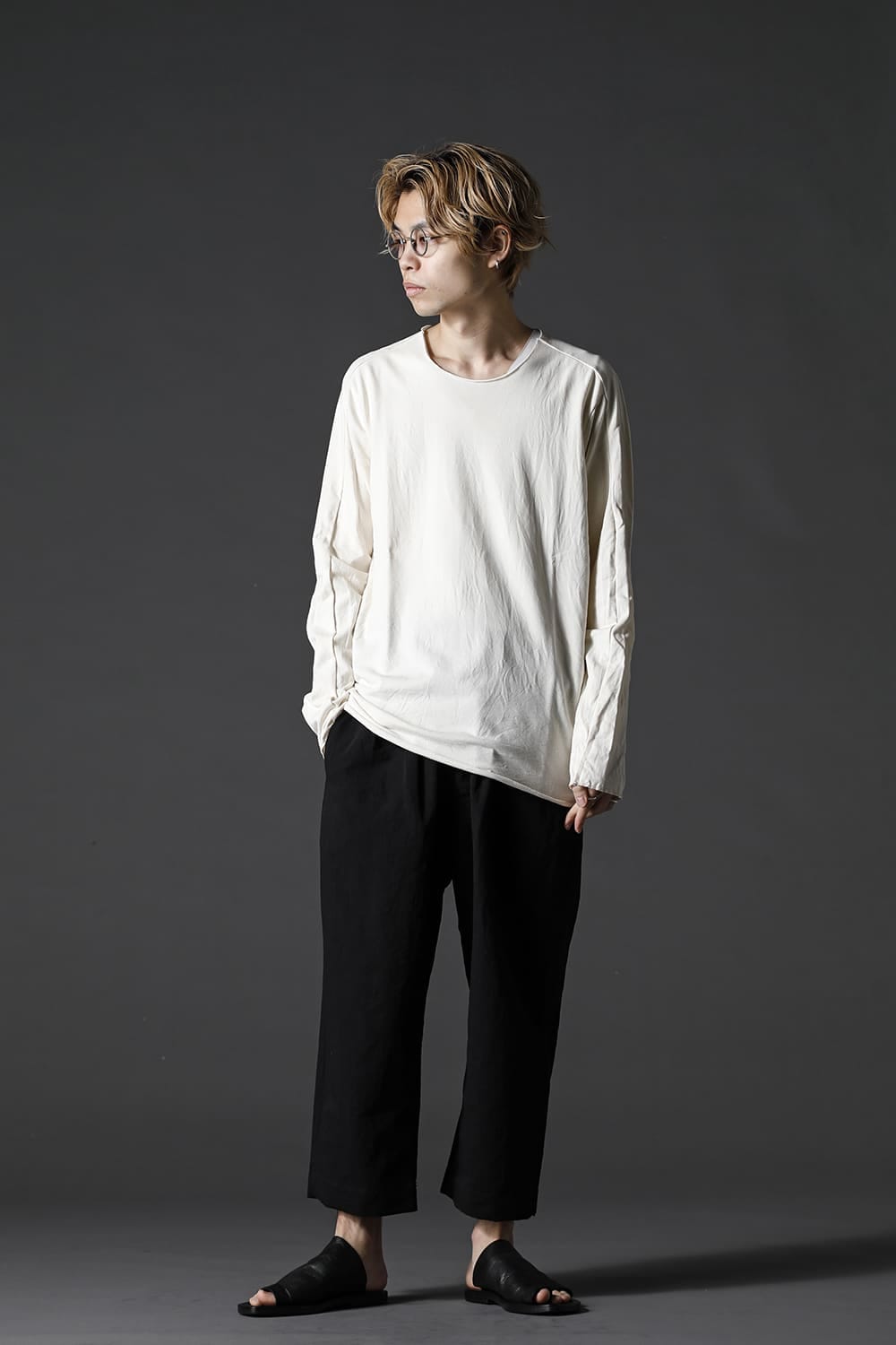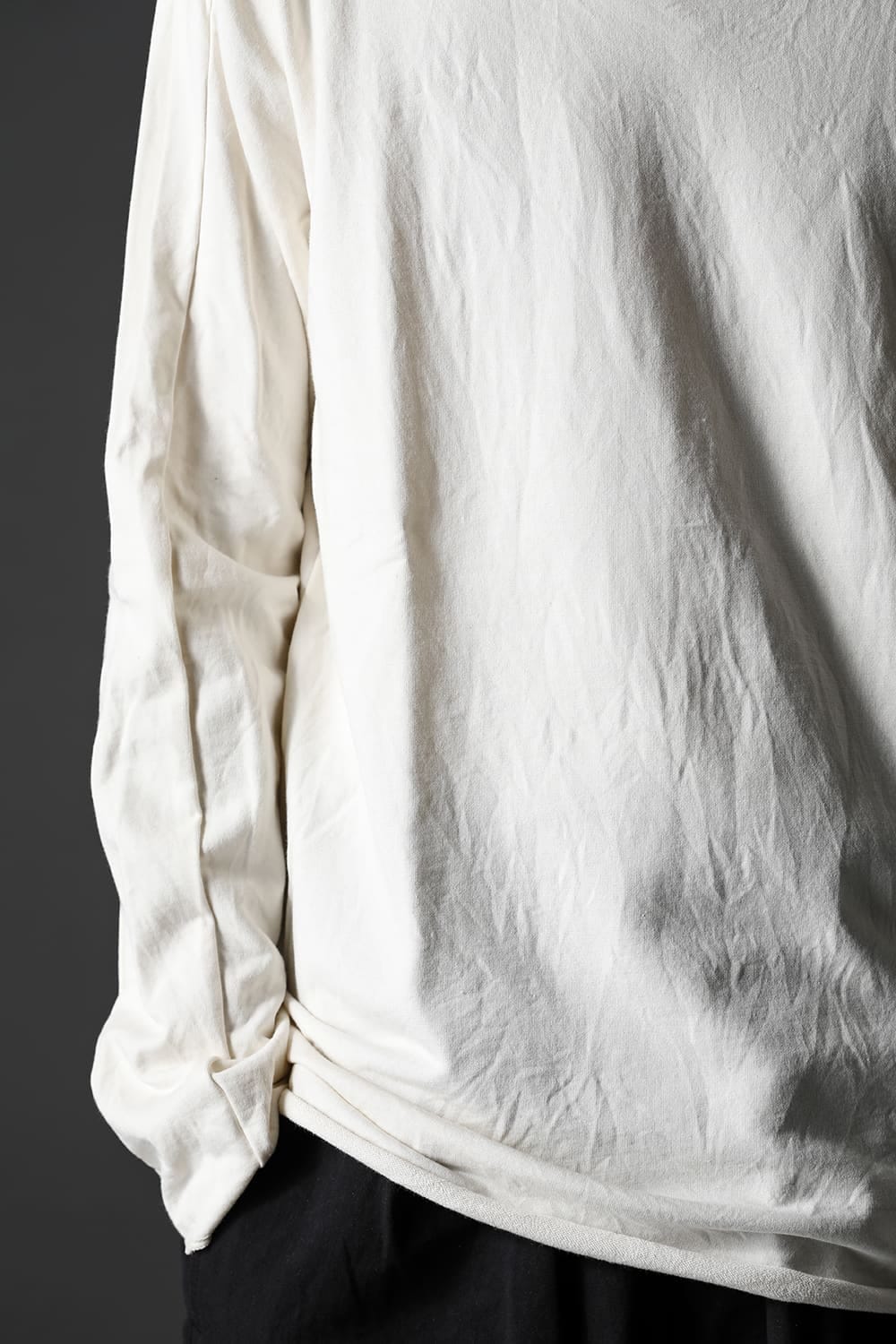 This is a standard long-sleeved cut sew with a minimal design with cut-off hem and cuffs. The box silhouette is simple and easy to wear. The color is beige. It goes well with a variety of colors, and the color will widen your range of styles. Uses a very soft micropile cotton fabric. Micropile is a woven fabric that is finer than normal pile knitting. Because of its characteristics, it is soft to the touch and is made of water-absorbing material, so it is comfortable to wear without stress. It is light and comfortable to wear, so it can also be used as innerwear in the chilly season.