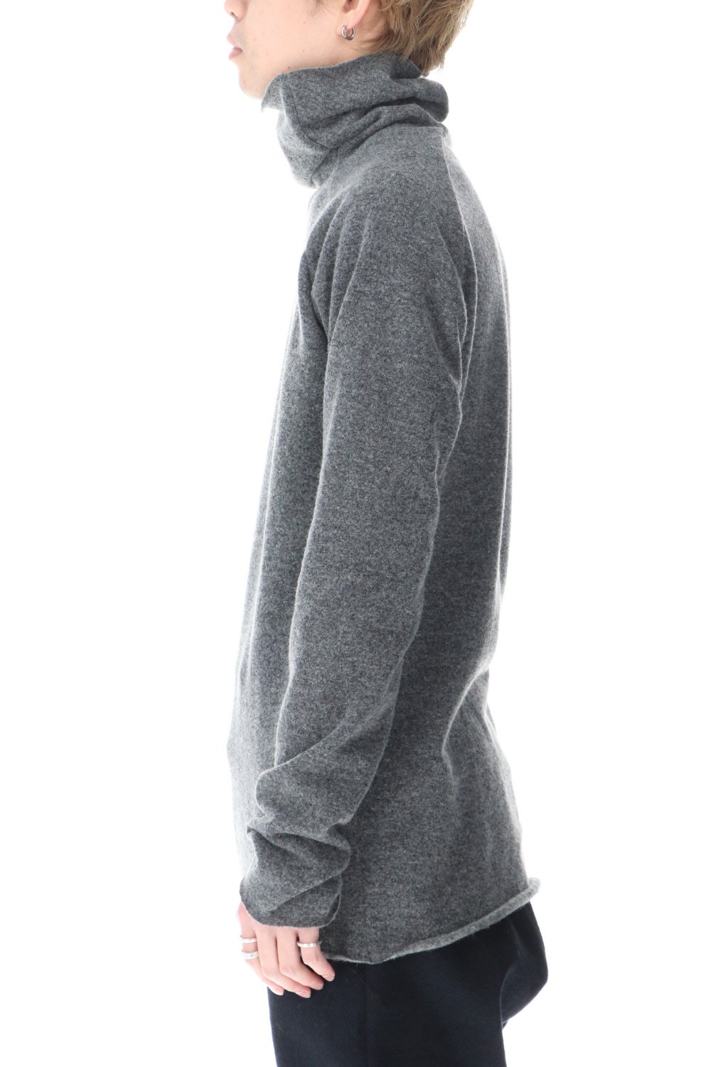 This is a standard bottleneck knit from ware. With a slightly long length, this is a versatile item from ware that can be worn as an inner in the winter. It can be worn with any outer wear such as a jacket or coat. The details are raglan sleeves and the neck, sleeves, and hem are all cut off. This fabric is made by the Italian company Maple and was established in 1980. This fabric manufacturer specializes in knitting materials and specializes in making soft and warm knit materials by combining wool materials with synthetic fibers such as polyester. This item is characterized by its warm, fluffy, light, and comfortable fit as it stores warm air between the fibers and the fabric. Both are available in two-tone colors, gray and gray-beige.