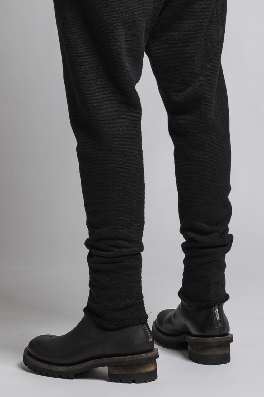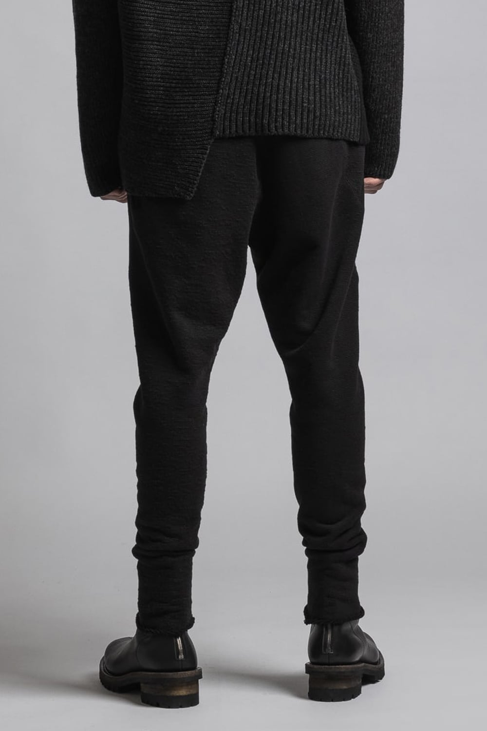 It has a loose silhouette around the hips and thighs and a tight silhouette below the knees.