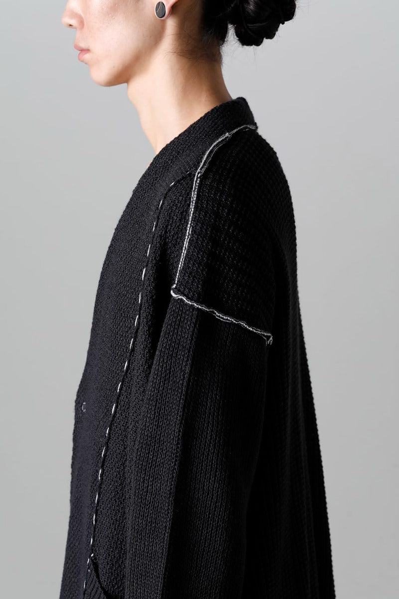 ・Cardigan combining multiple knitting fabrics such as moss and thermal.