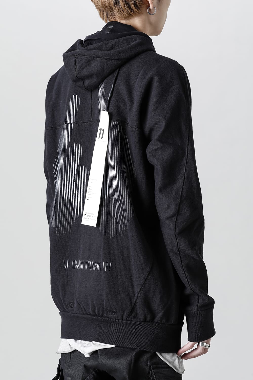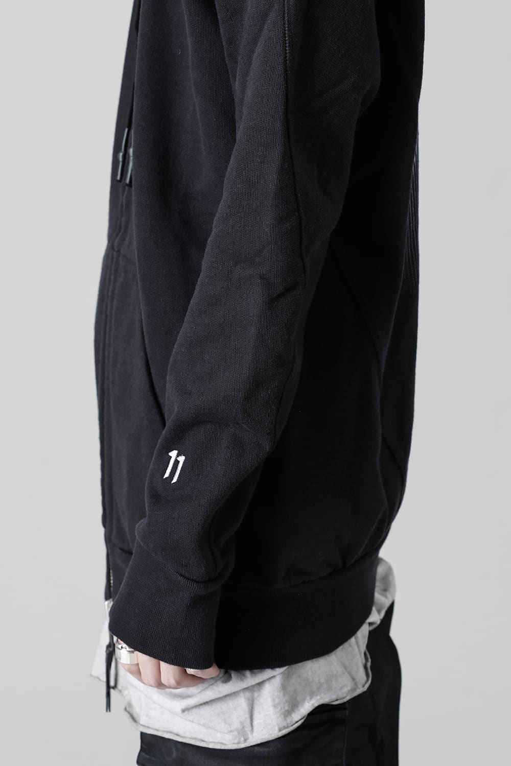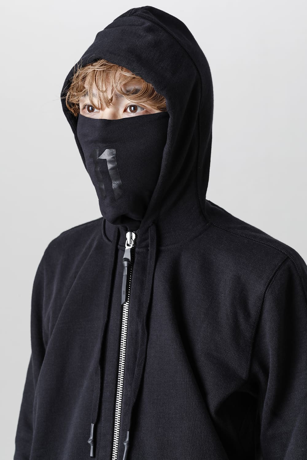 The front fastener is double fastener type, and the mask part with "11" logo print is arranged on the back neck part of the lining.