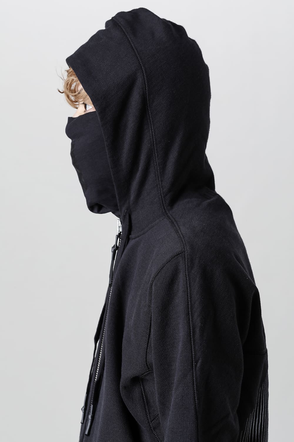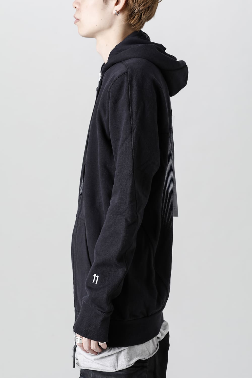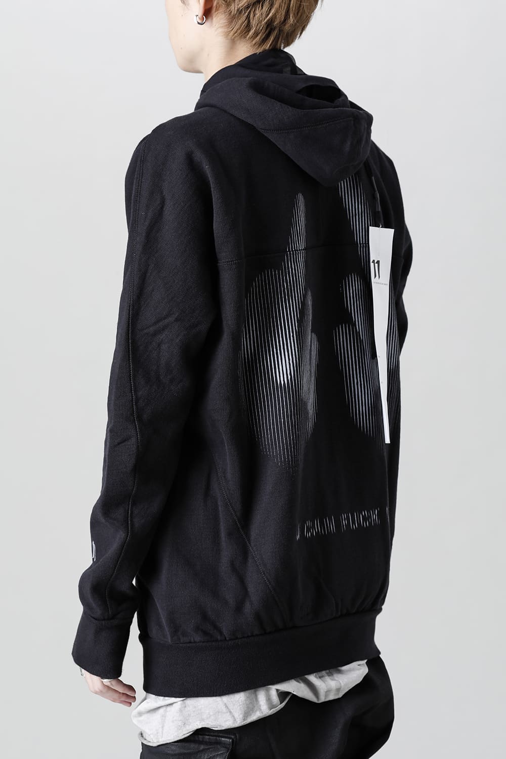 The front fastener is double fastener type, and the mask part with "11" logo print is arranged on the back neck part of the lining.