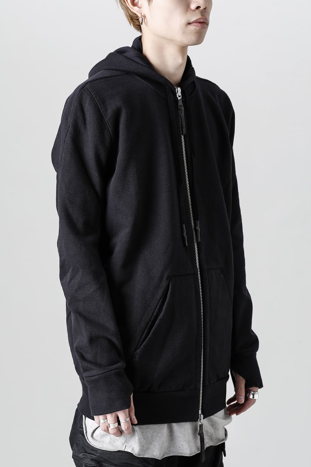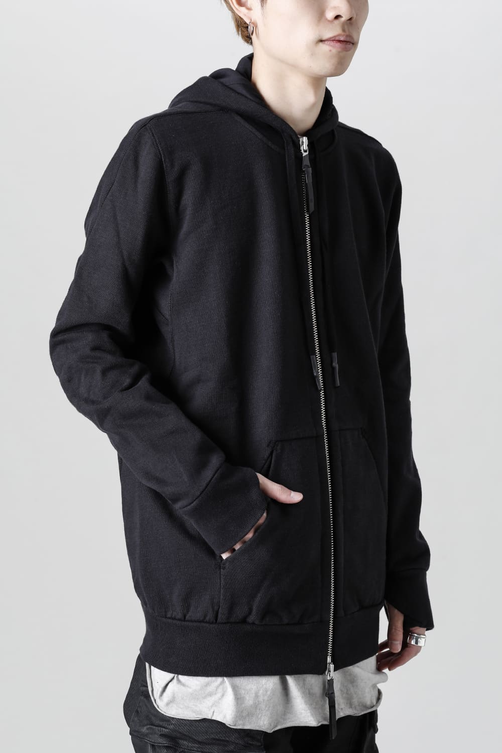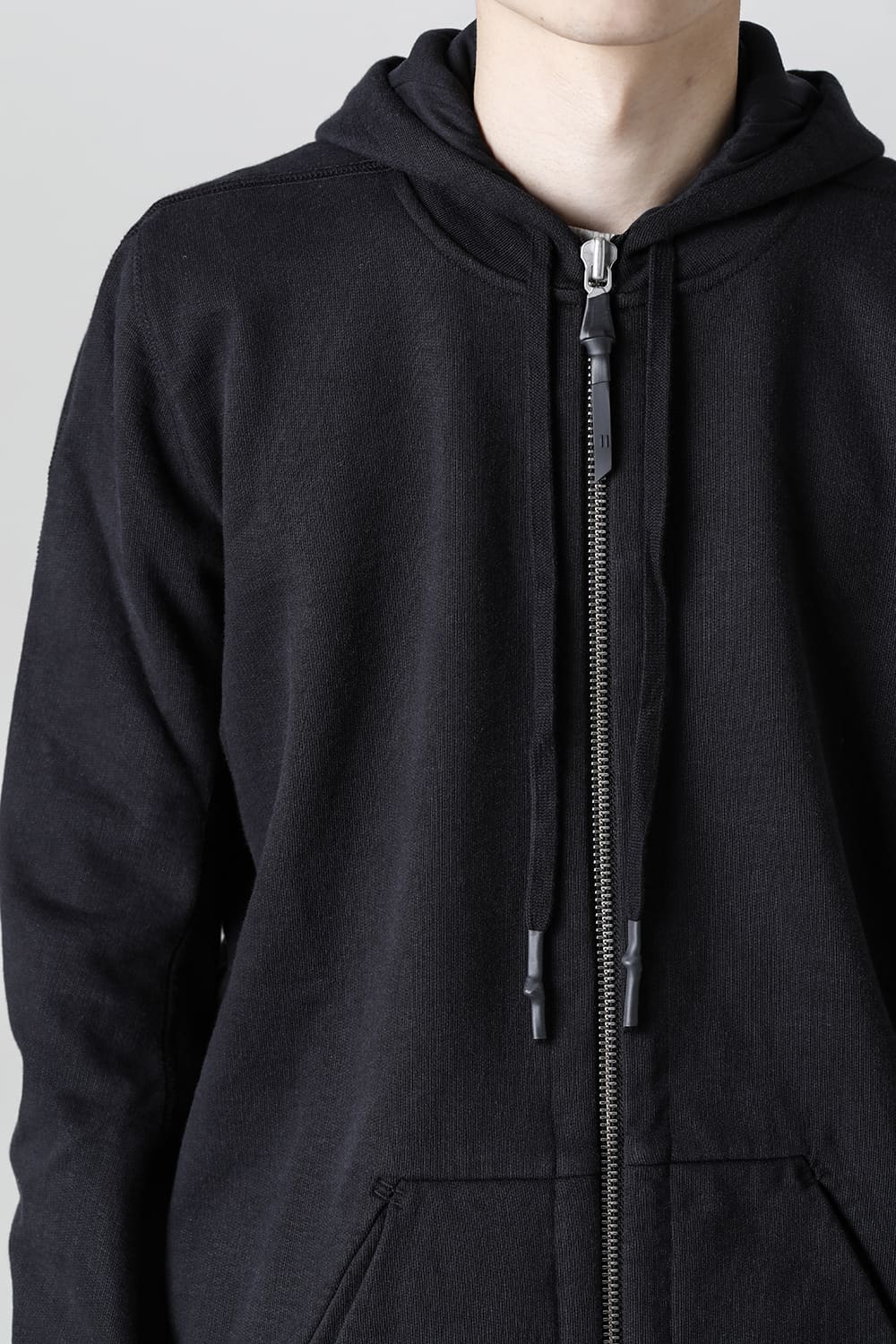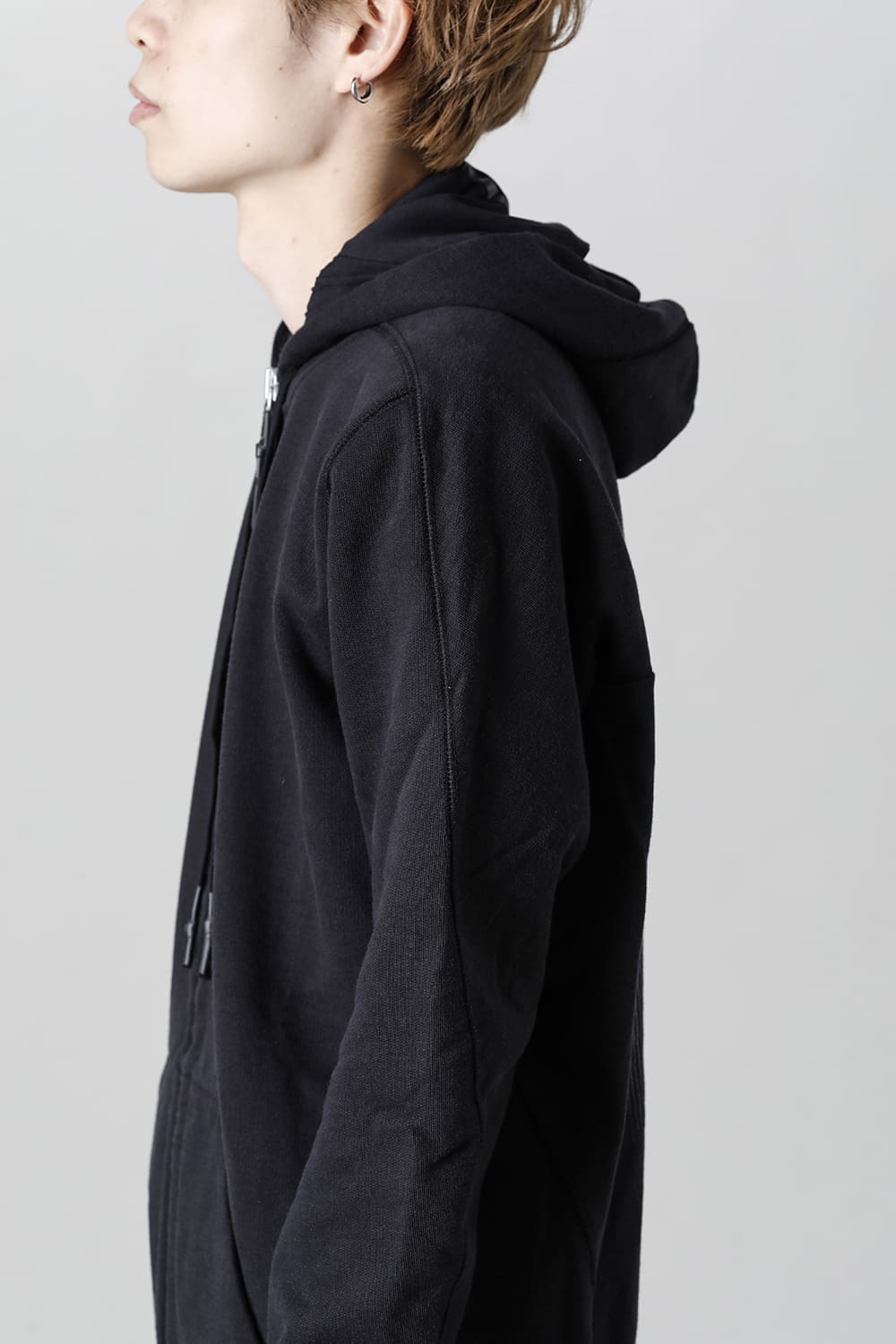 This zip-up hoodie features a slightly small hood.