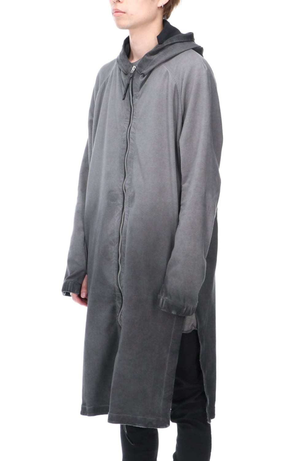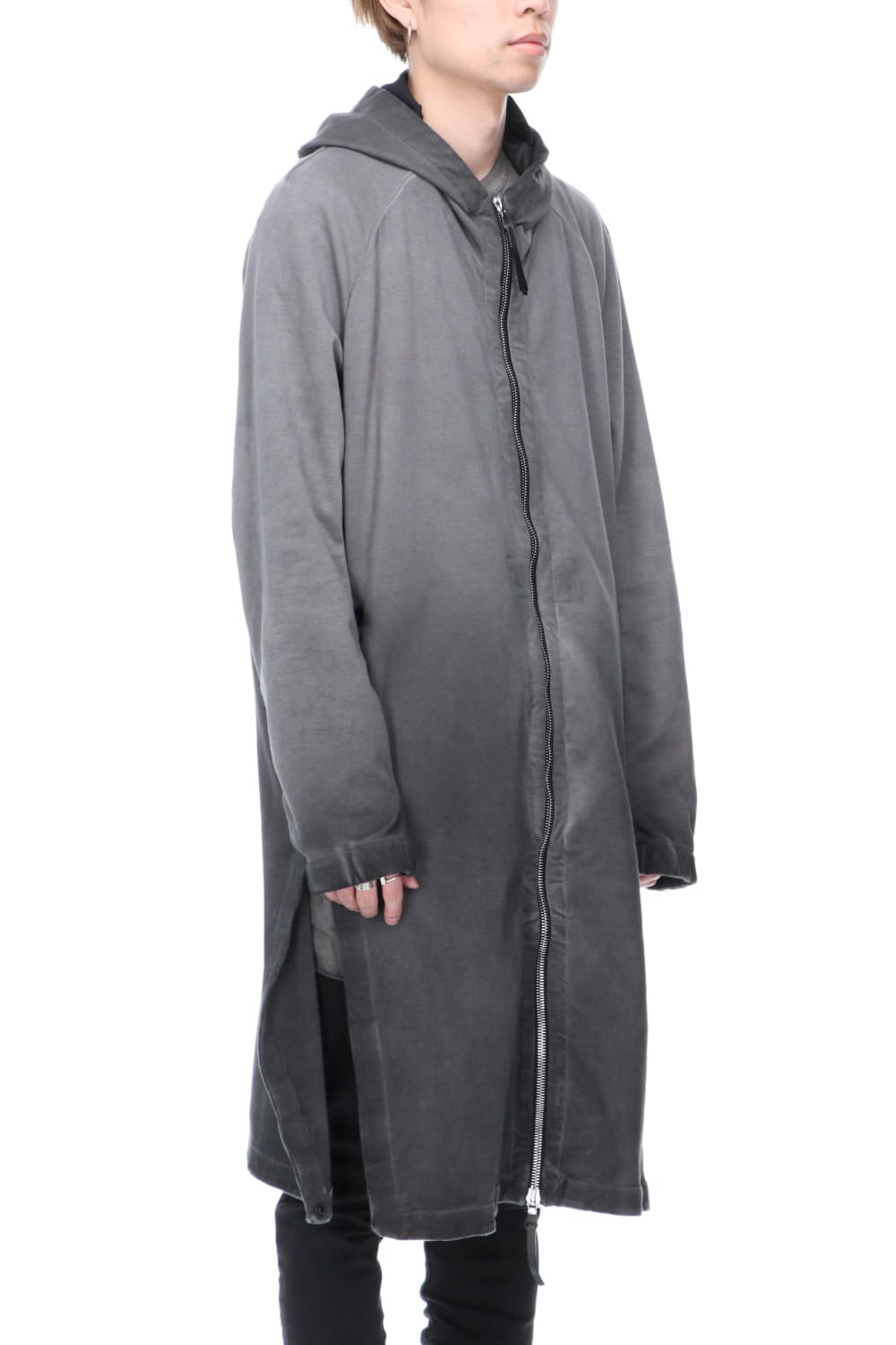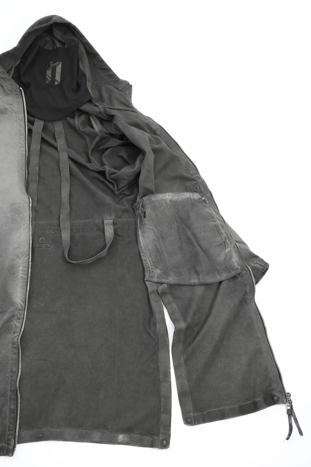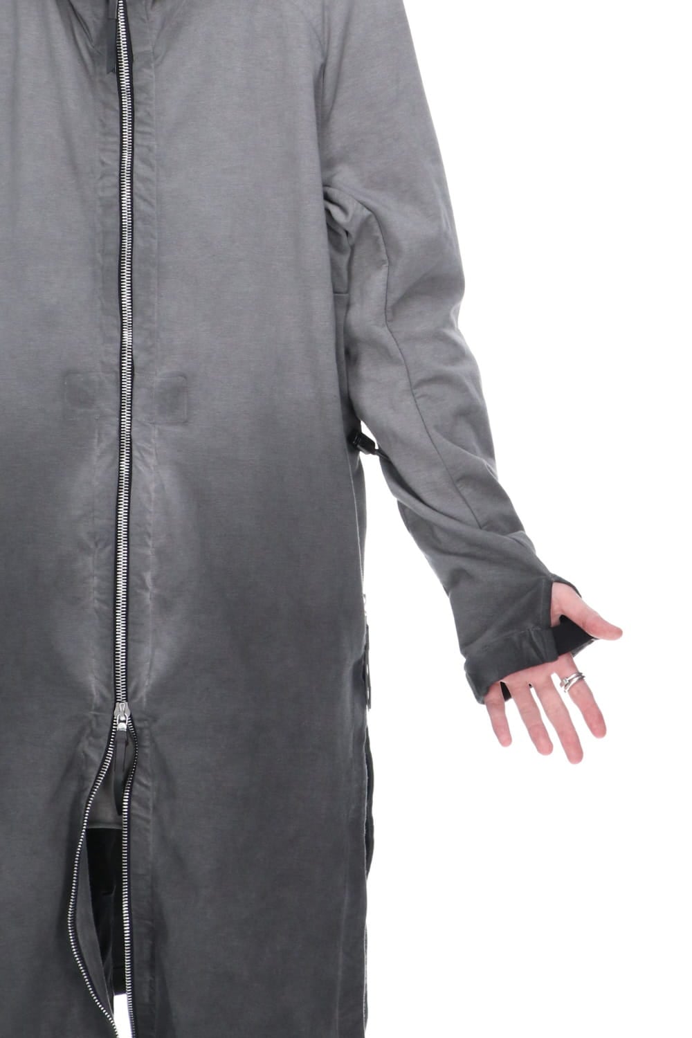 The silhouette can be narrowed by the large slit and the draw cord that is on the waist.
