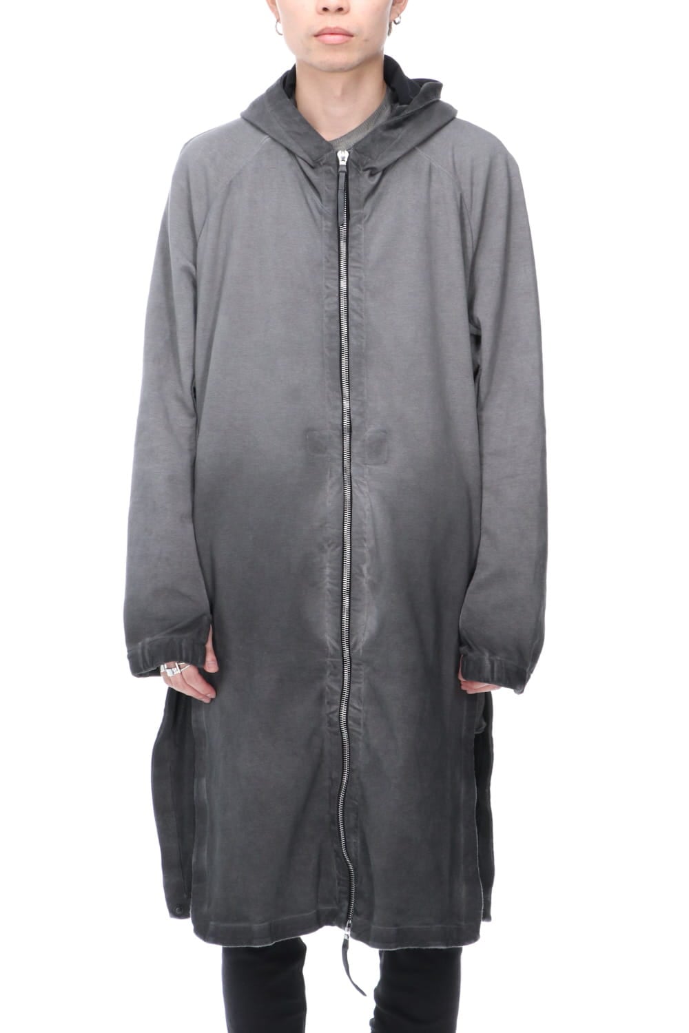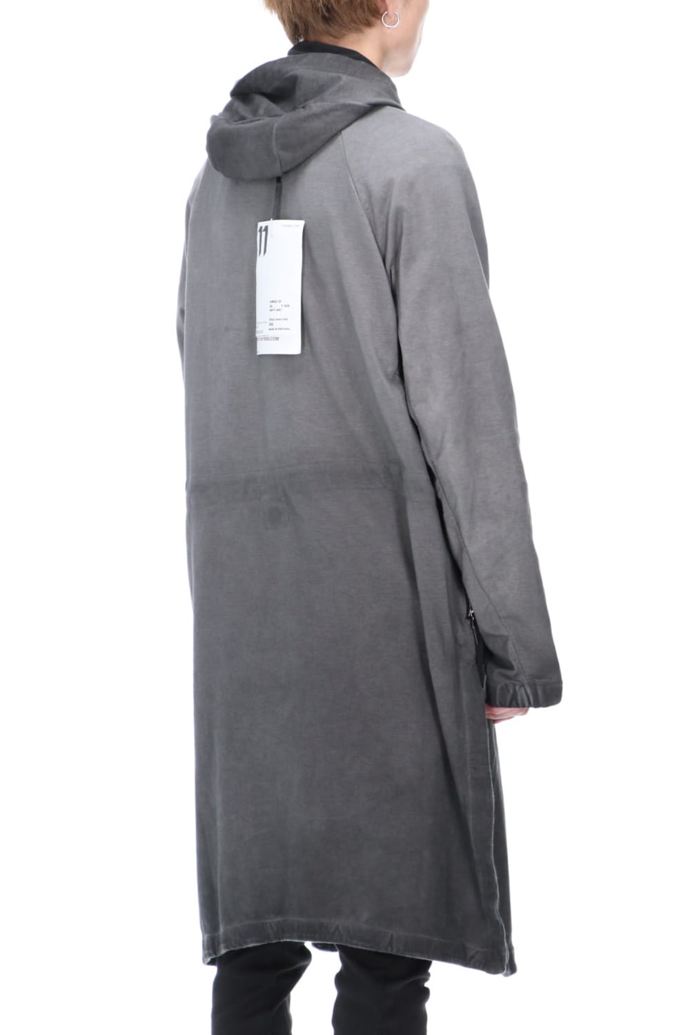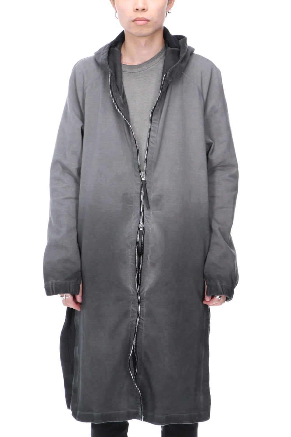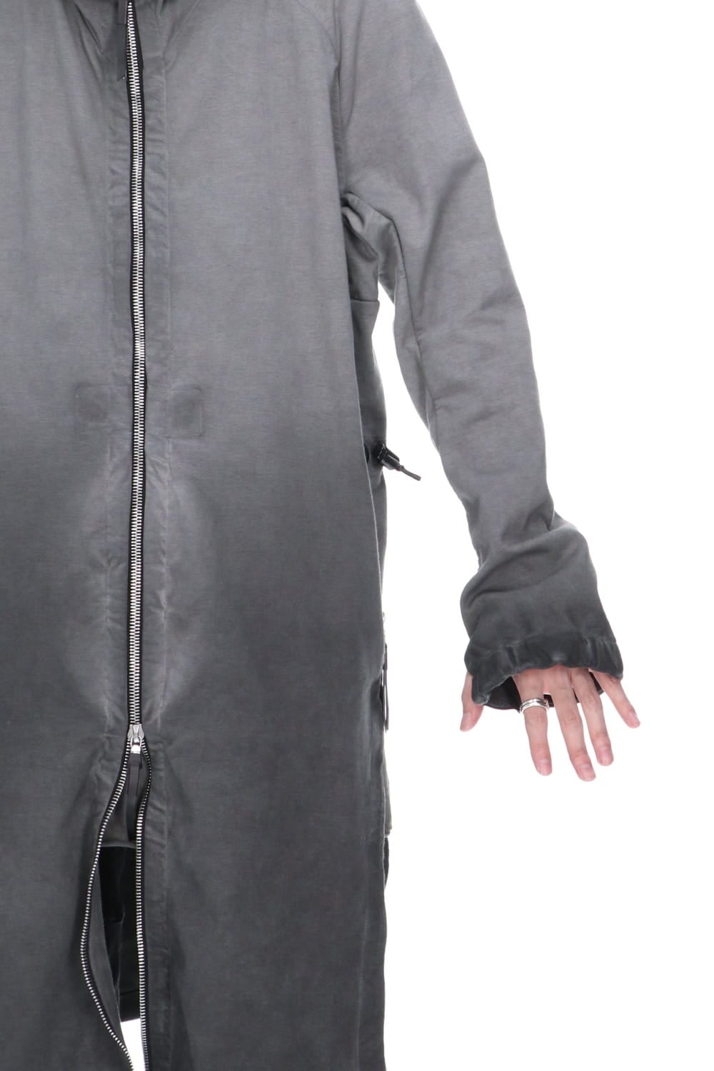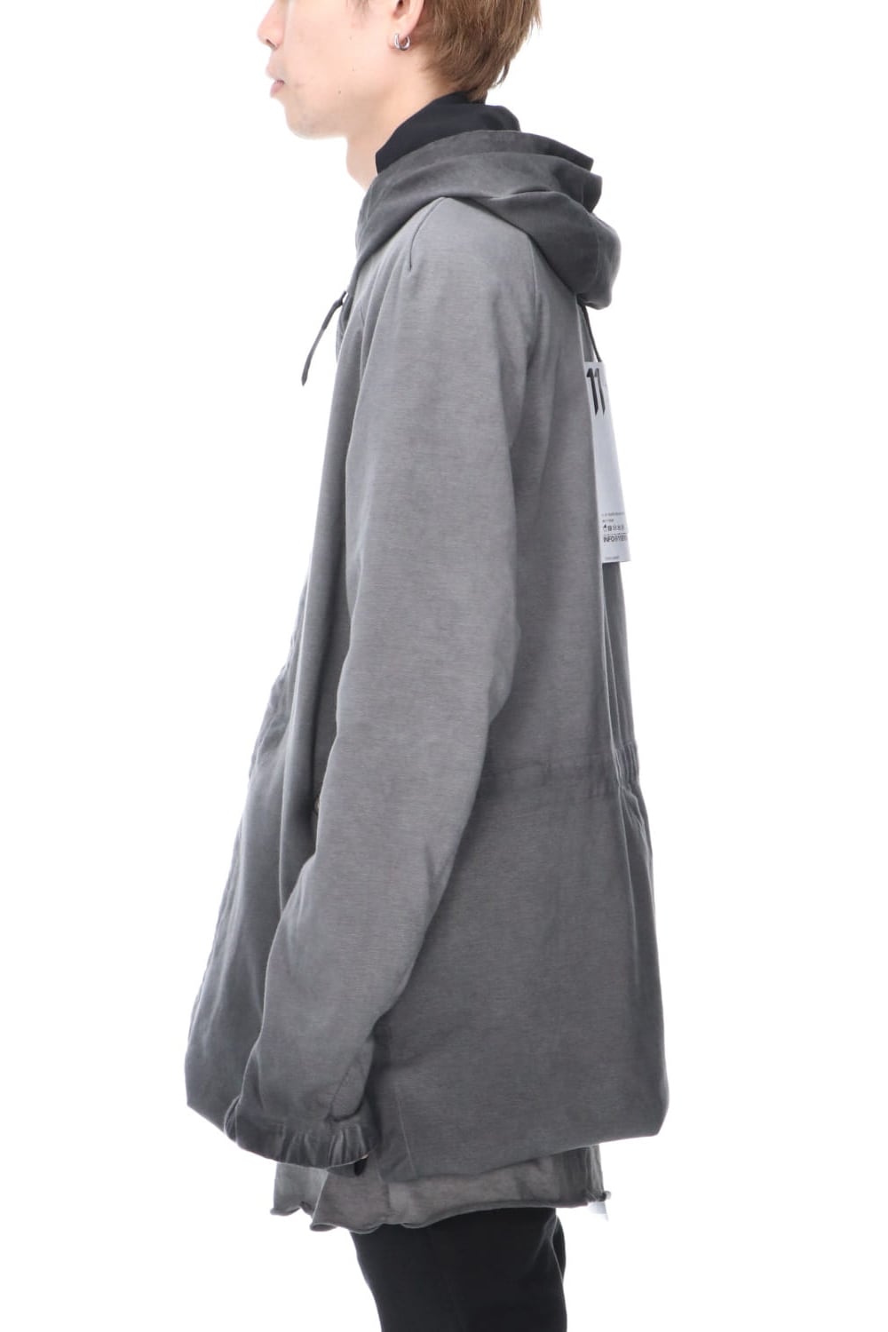 The silhouette can be narrowed by the large slit and the draw cord that is on the waist.