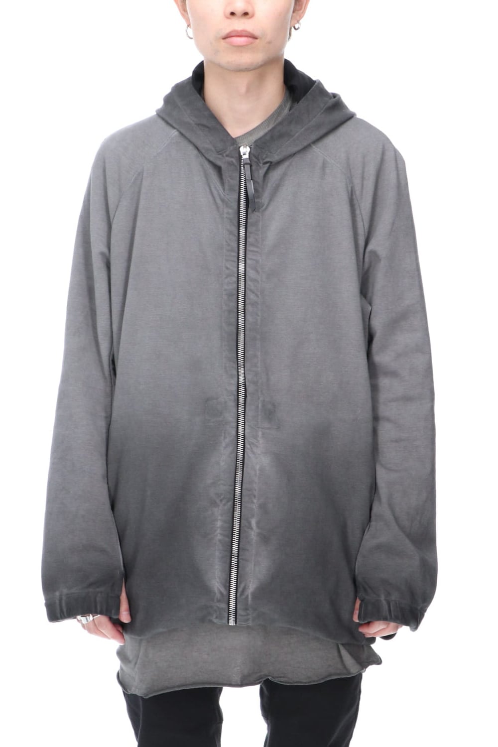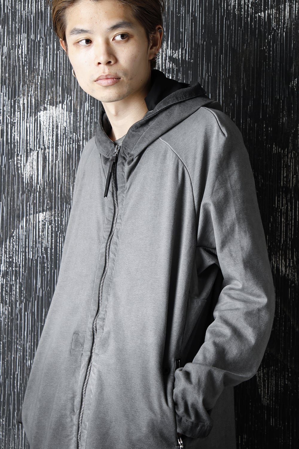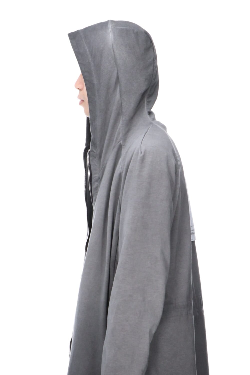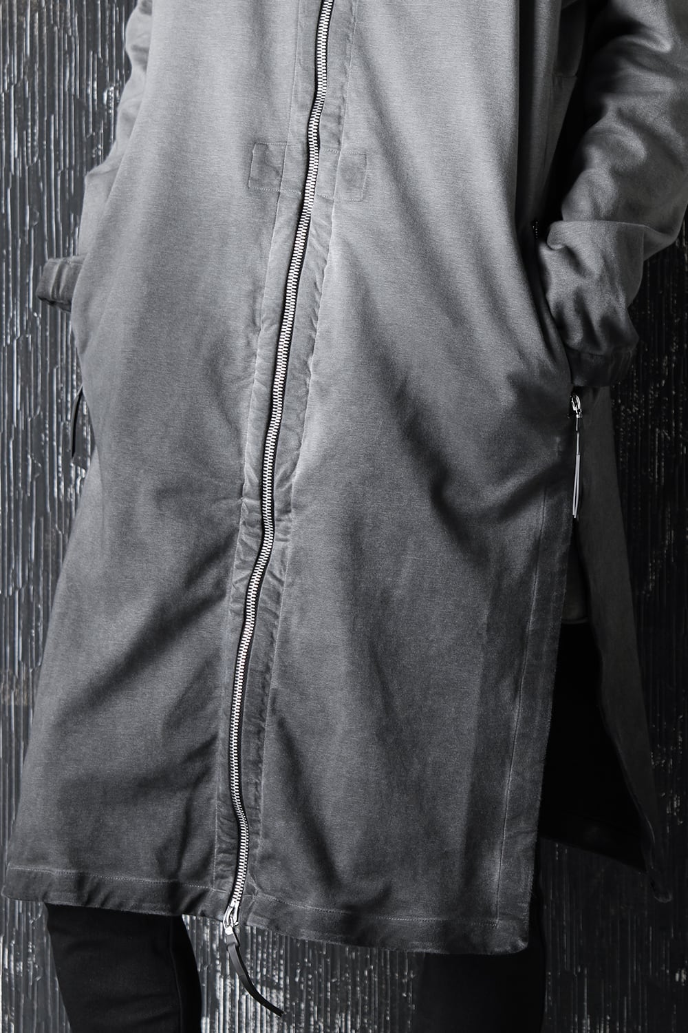 The silhouette can be narrowed by the large slit and the draw cord that is on the waist.