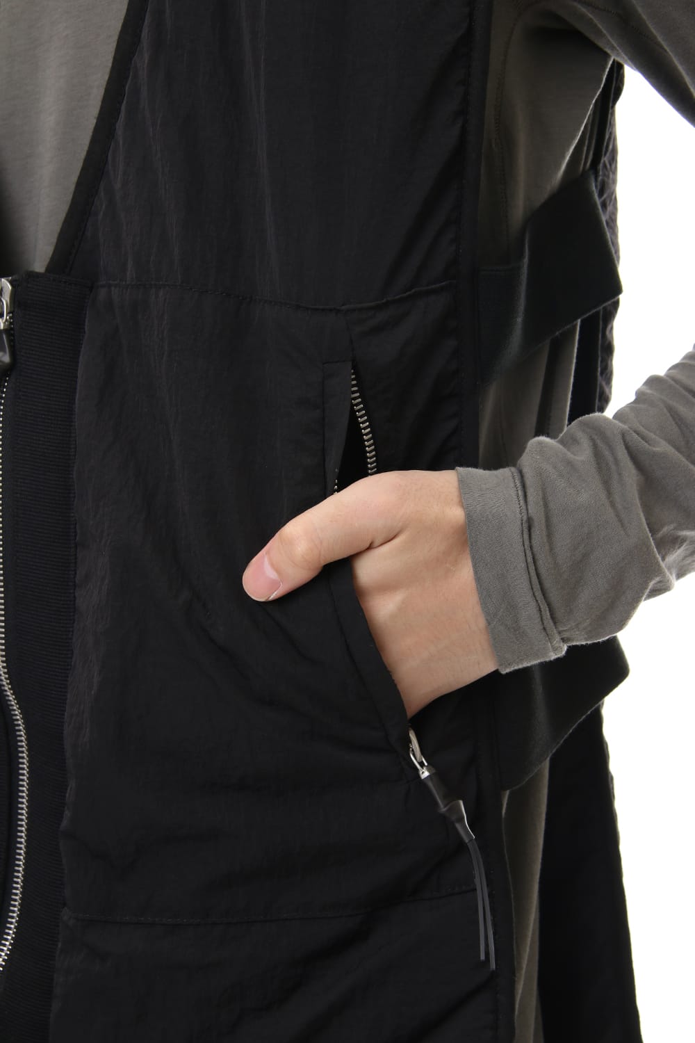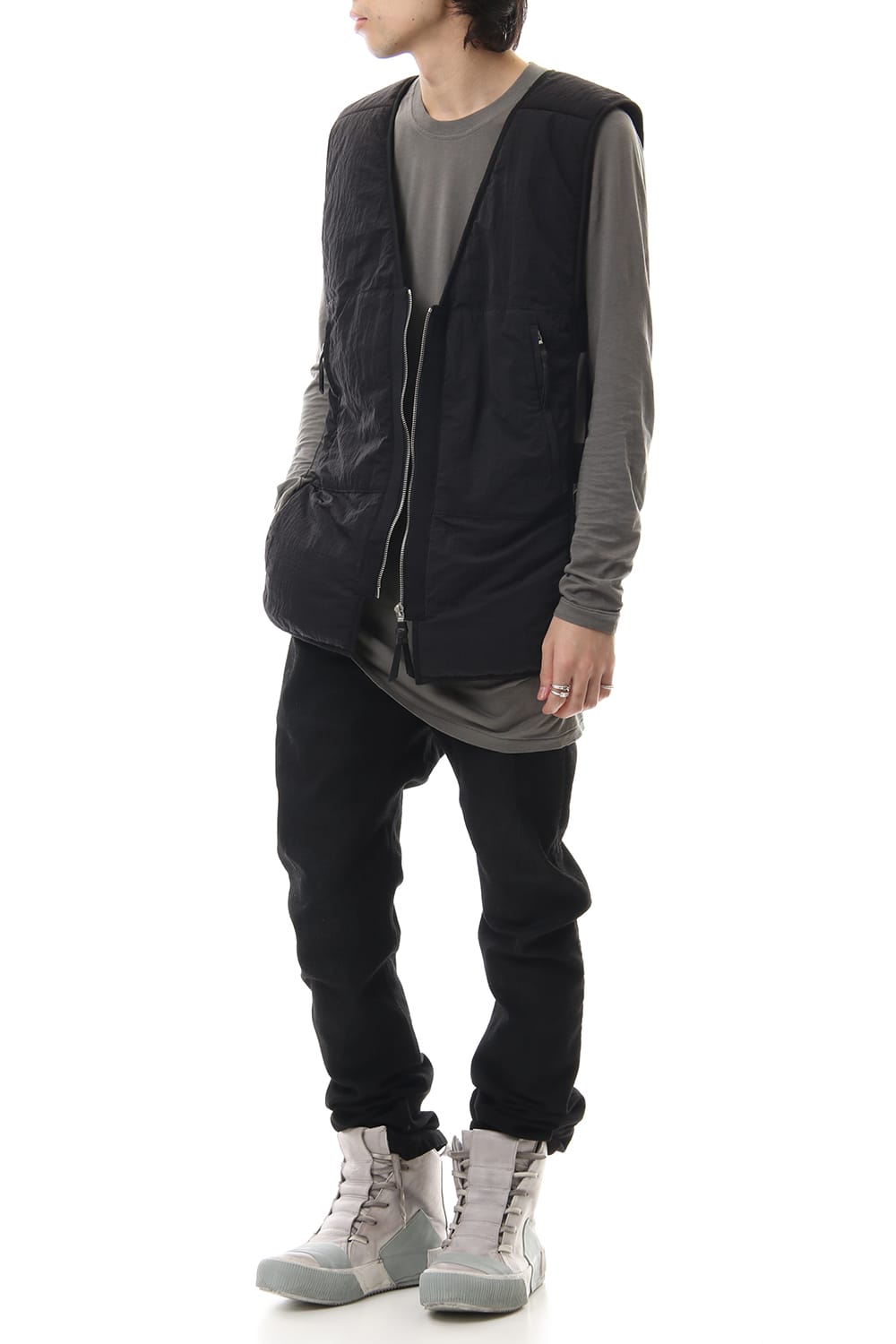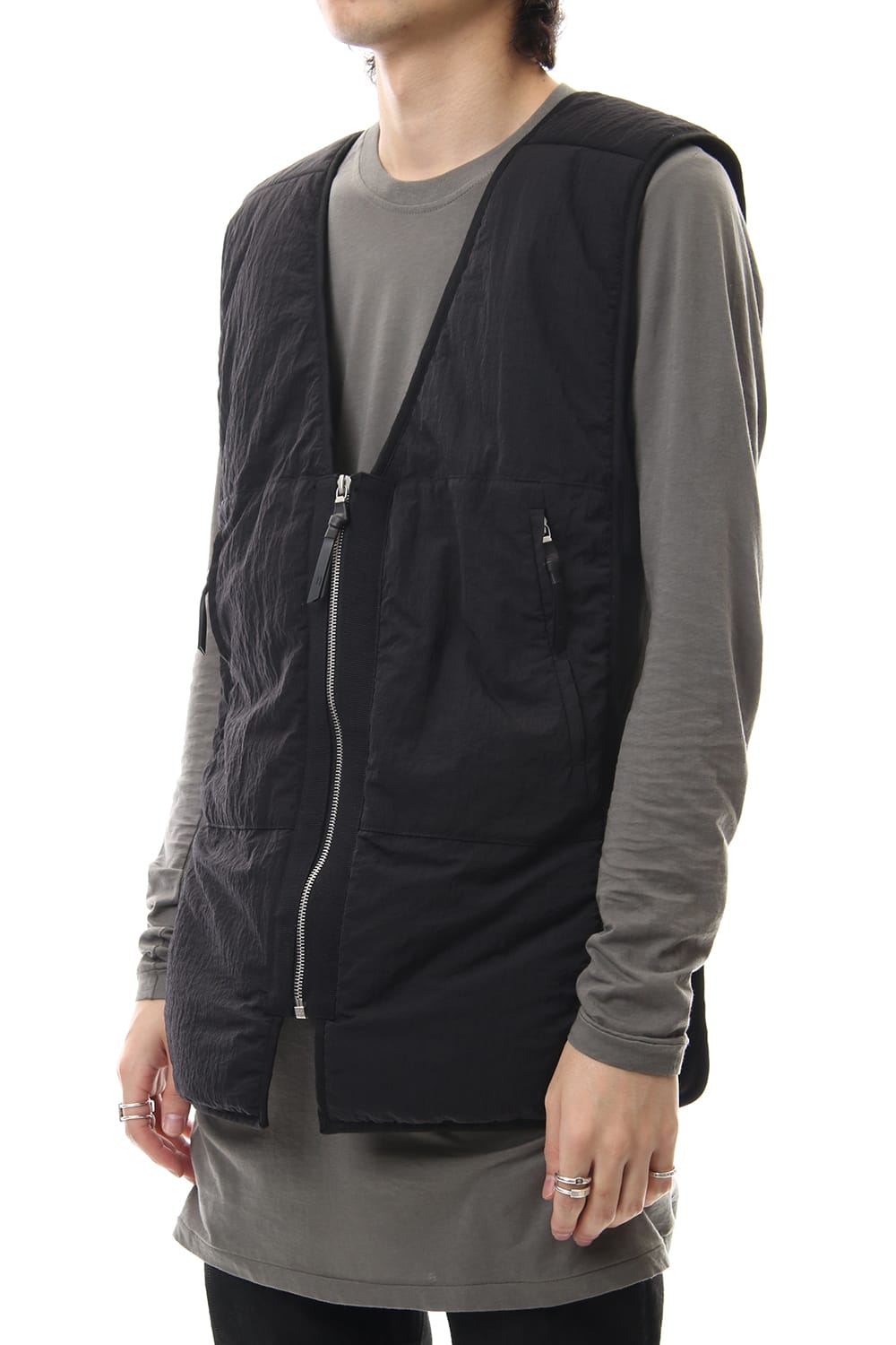 A reversible vest. You can enjoy the high quality of the same brand, including the processing of the seams, which is beautiful from both sides. The zipper is double reversible so you can use it as a double fastener on both sides.