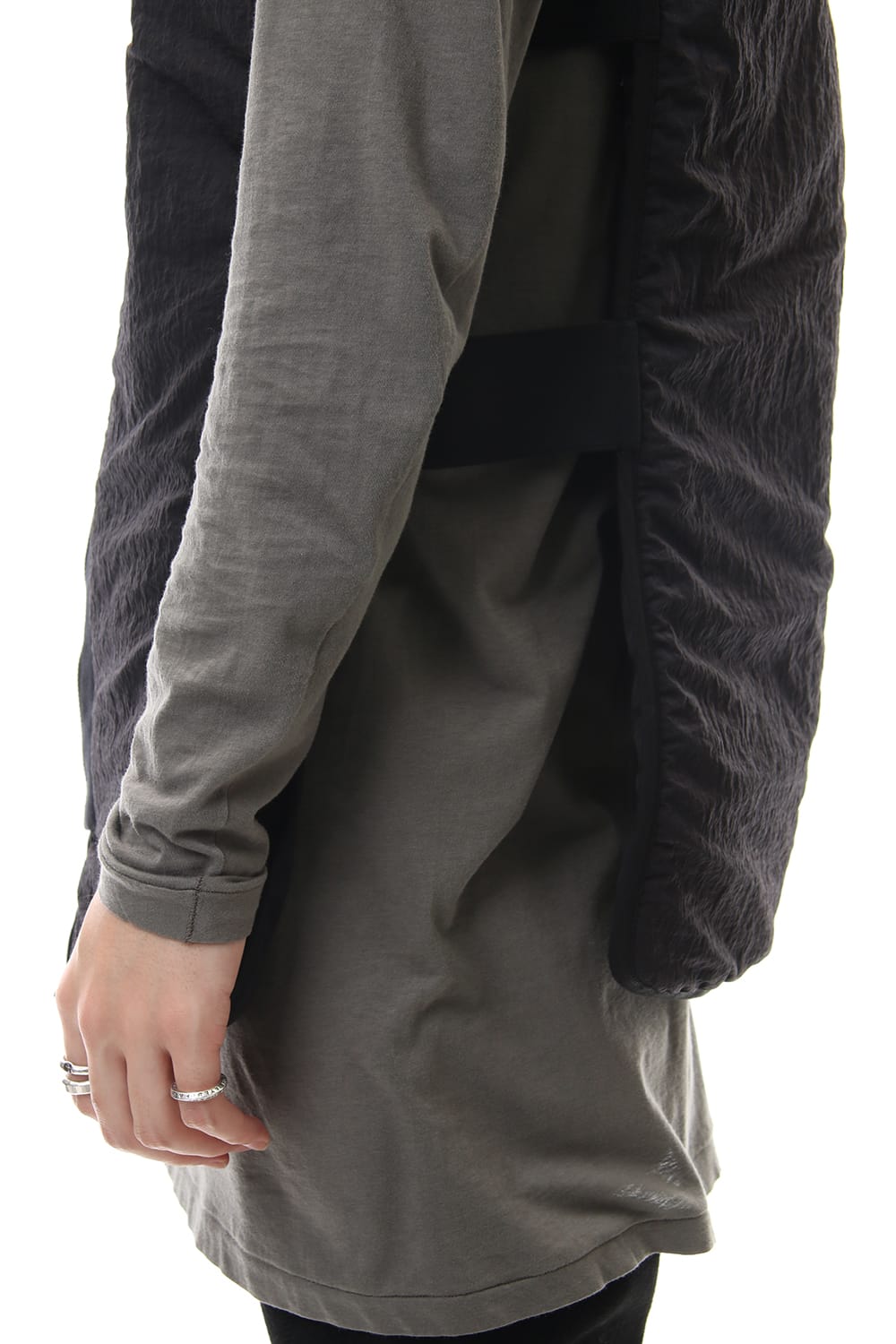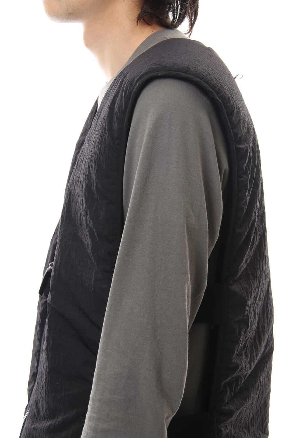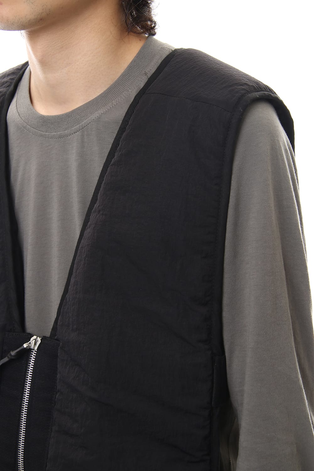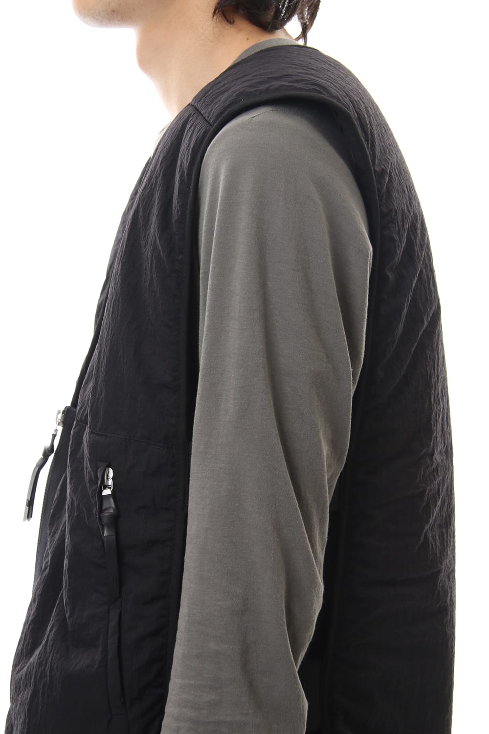 A reversible vest. You can enjoy the high quality of the same brand, including the processing of the seams, which is beautiful from both sides. The zipper is double reversible so you can use it as a double fastener on both sides.