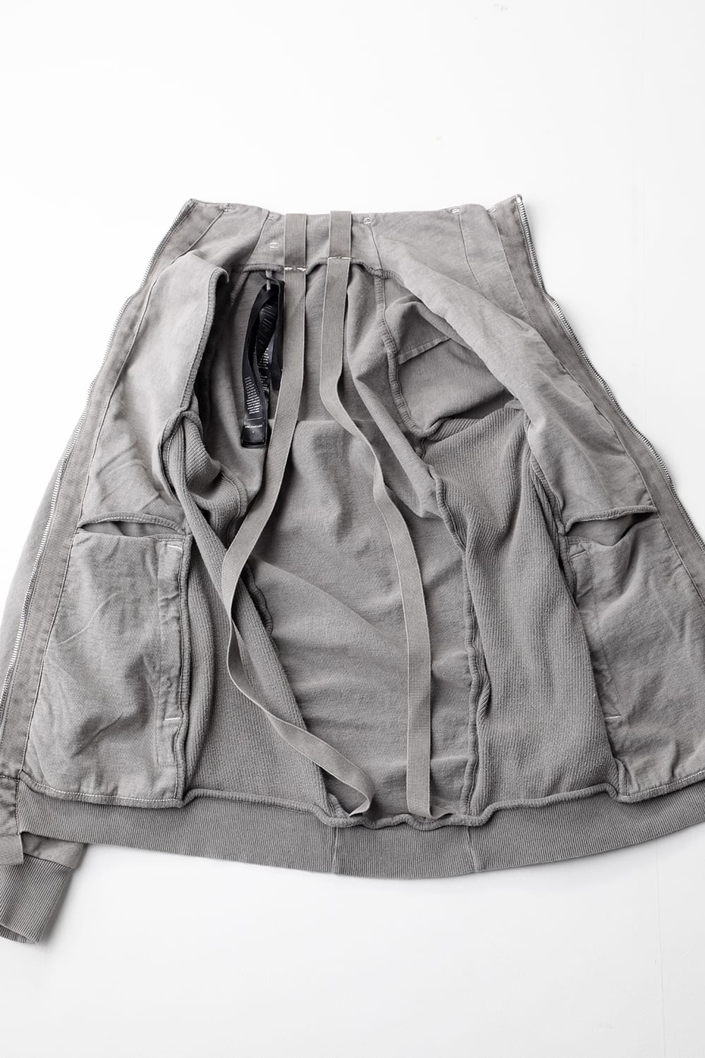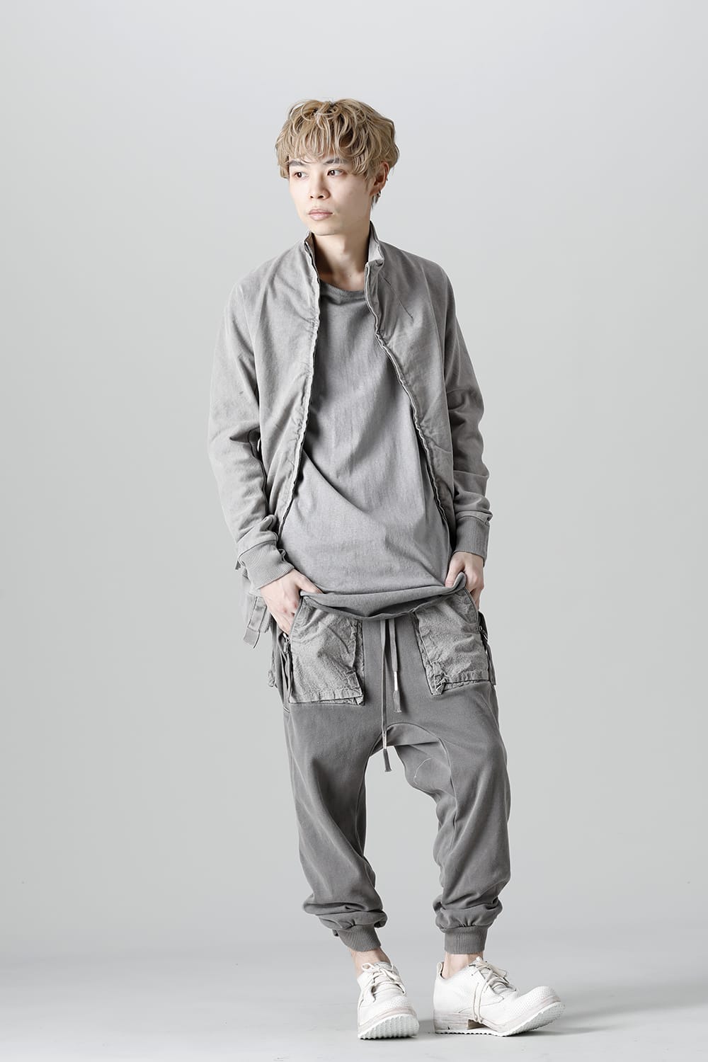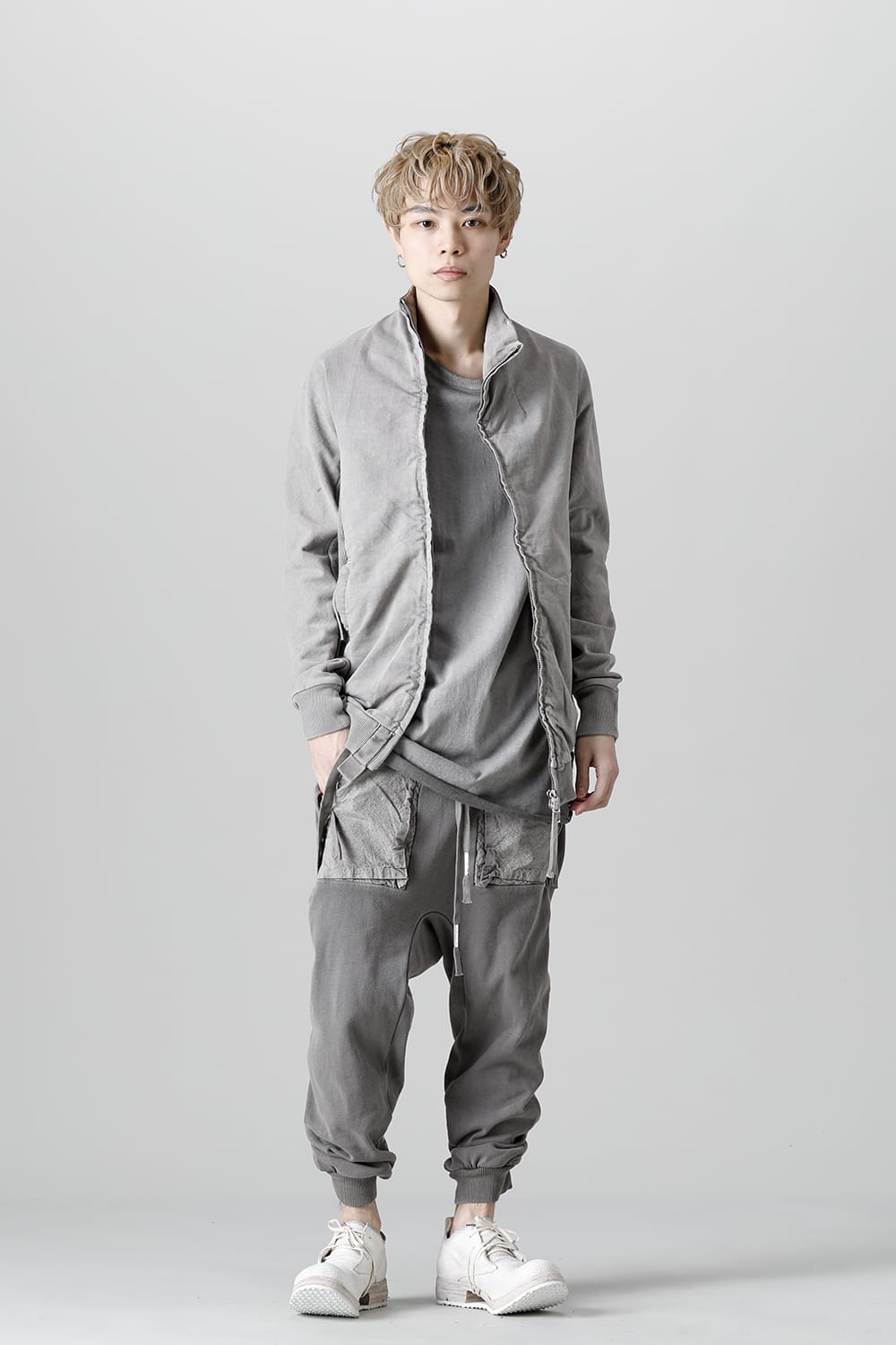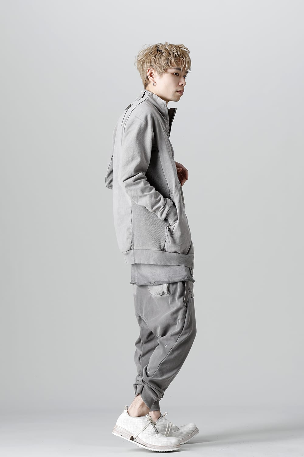 This high neck blouson "ZIPPER1" has been released for a long time as one of the representative items of the brand. With sweat as the main item, the sides are made of thick ribbed teleco fabric. The loose silhouette creates a rough look that can be worn casually. The look of the material and the fine details of each piece create a unique world view that makes you feel a certain weight. Combining the details of street culture and military items, with a no-waste design, this item has a delicate balance of originality and versatility with fine details.