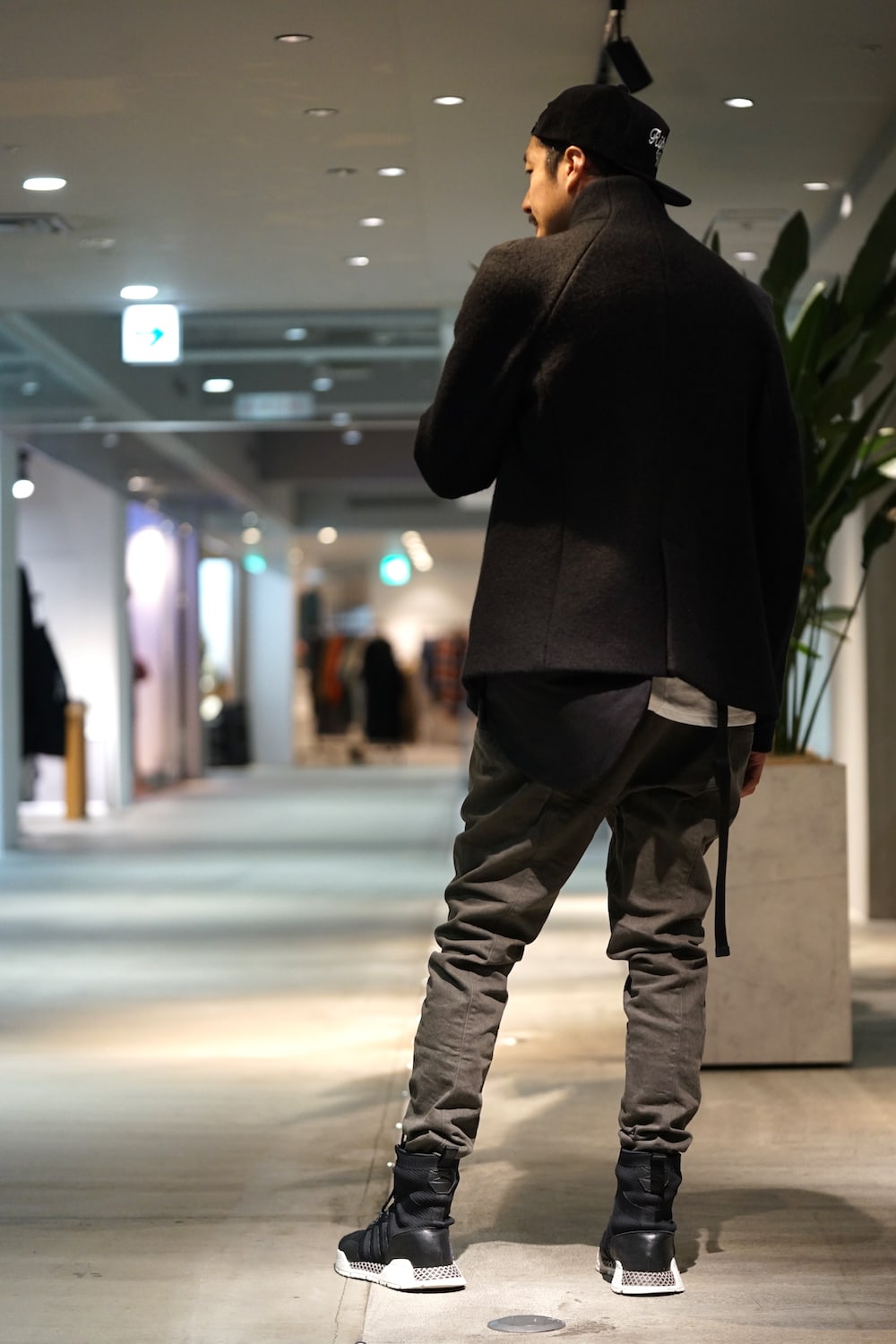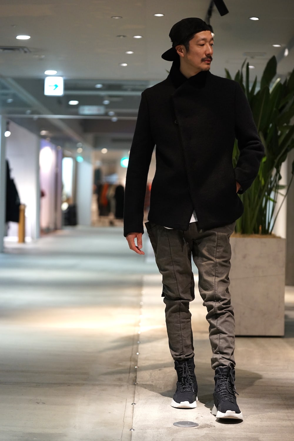 コートの裾からちらりと覗くFIGUEのシルエット。いつもカメラをお願いする高島店長はしっかりととらえてくれていました。