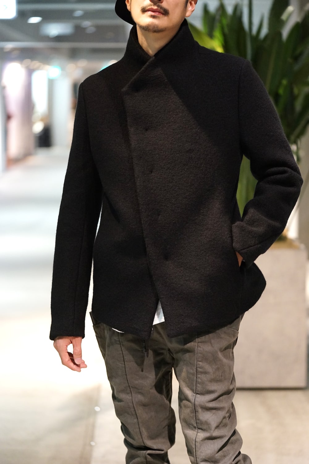 どこかPコートのような雰囲気を醸し出しながら、ソリッドなネックデザインが主張しますが、見た目からも伝わるシルエットの美しさがすばらしいです。