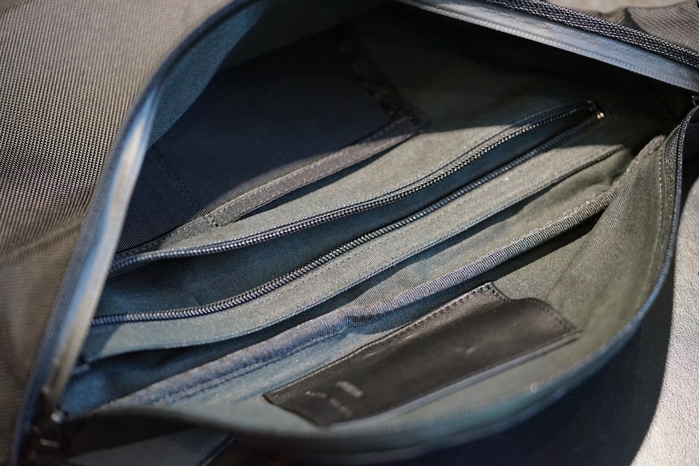 背面ポケット、止水ファスナー、収納スペースの仕分けができる仕様など、こだわりあるつくりになっています。