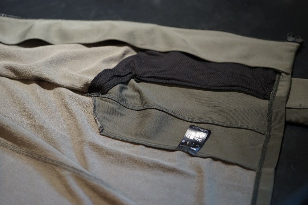 表にナイロン素材、裏に綿素材を使い、見た目より軽く作られた新しい裏毛になります。表面は汚れに強く、肌に触れる裏側には綿を使う事で軽い着心地を実現しているマテリアルになります。