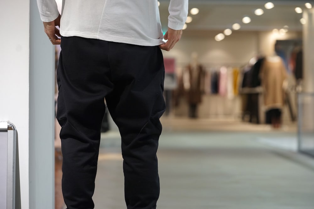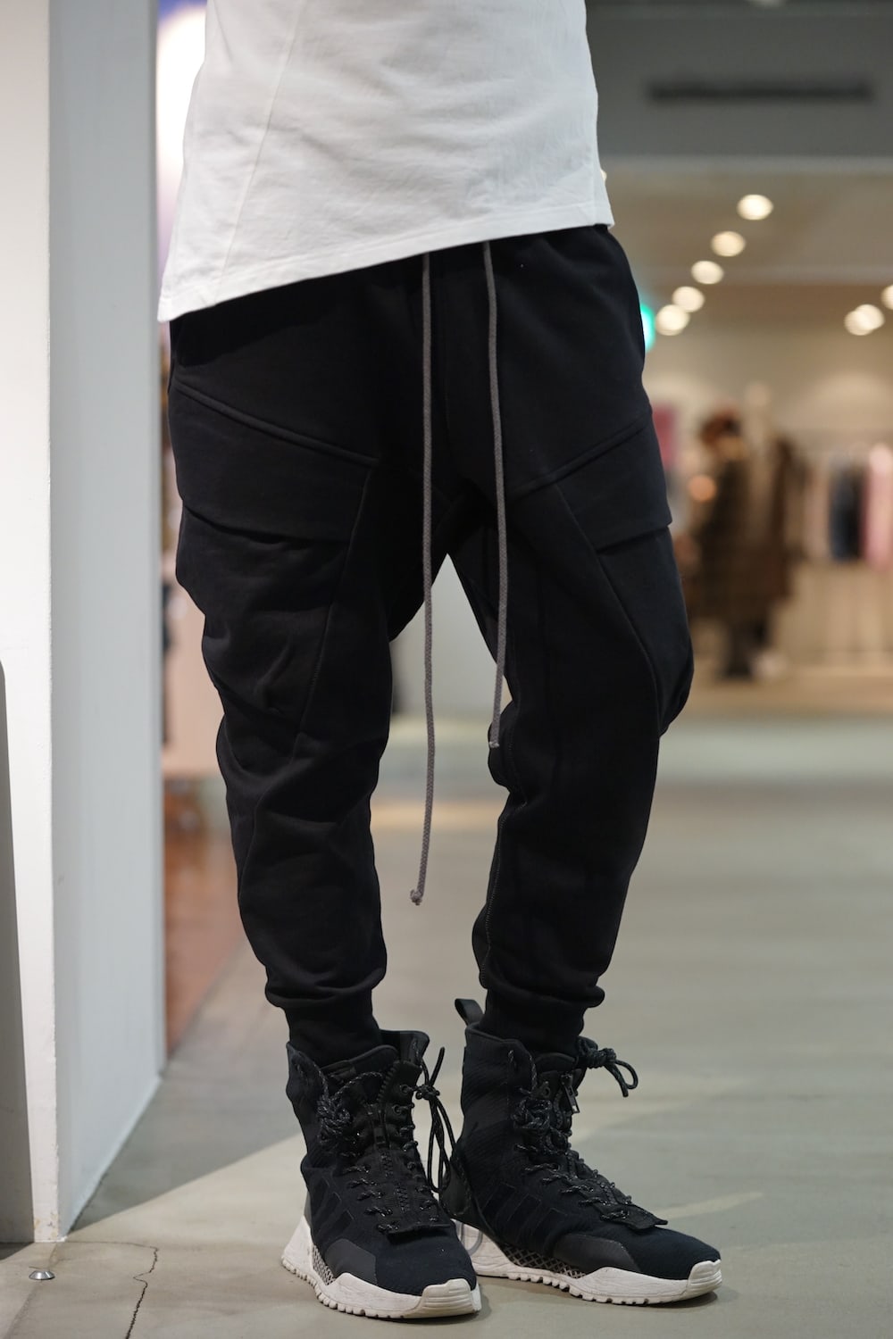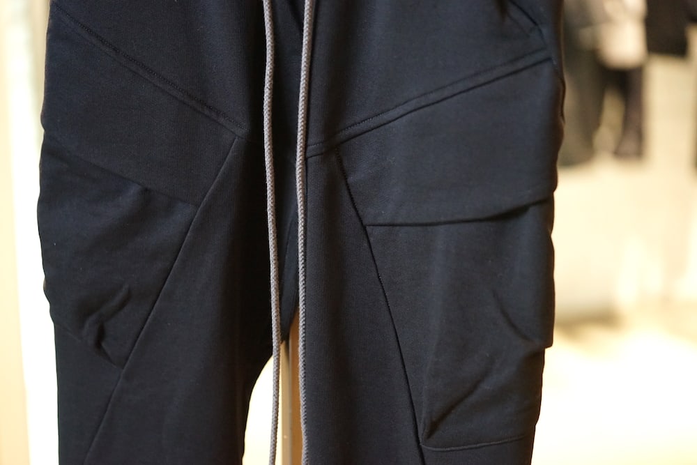 スパイラルしたような立体裁断がお好きなお客様にはぴったりなリブ型パンツ。カーゴ型パンツと言いましてもシンプルな部類に入るようなイメージかと思います。