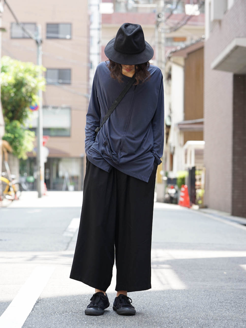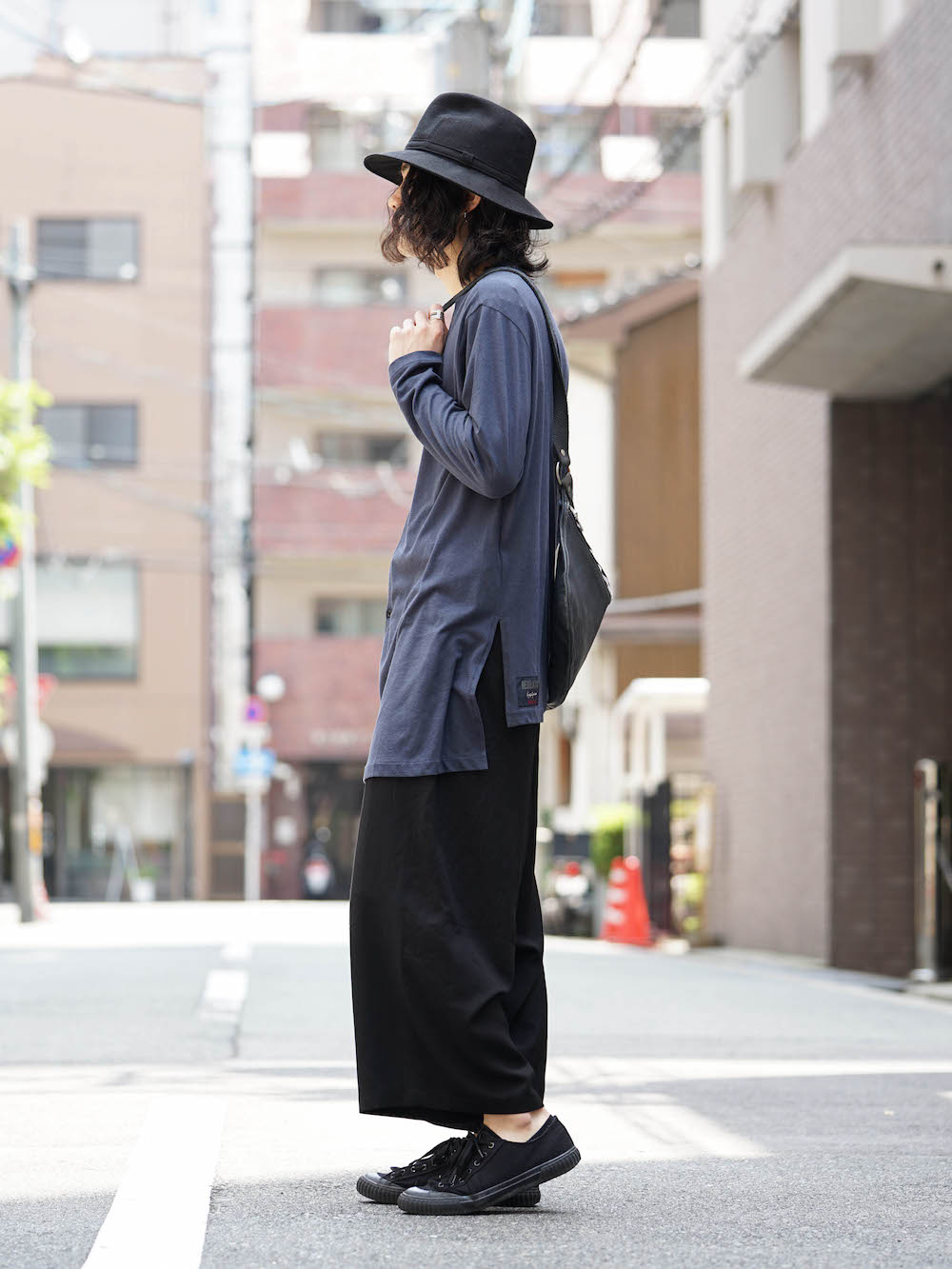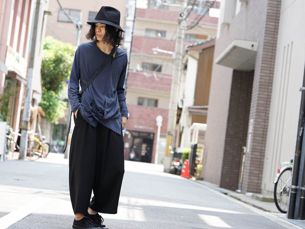 Yohji Yamamoto always makes complex layered items very pleasant to enjoy, and for Summer you can create a very nice impression with only a T-shirt and wide pants.
