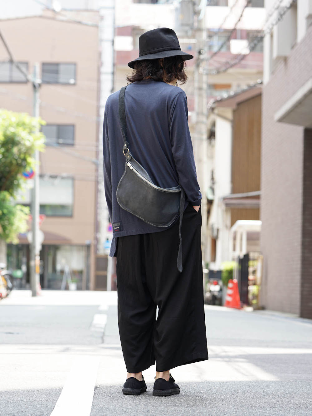 Personally when I wear Yohji Yamamoto I often where this kind of small shoulder bag. It can be used below an outer, so it is also a nice piece to create an oversize silhouette.