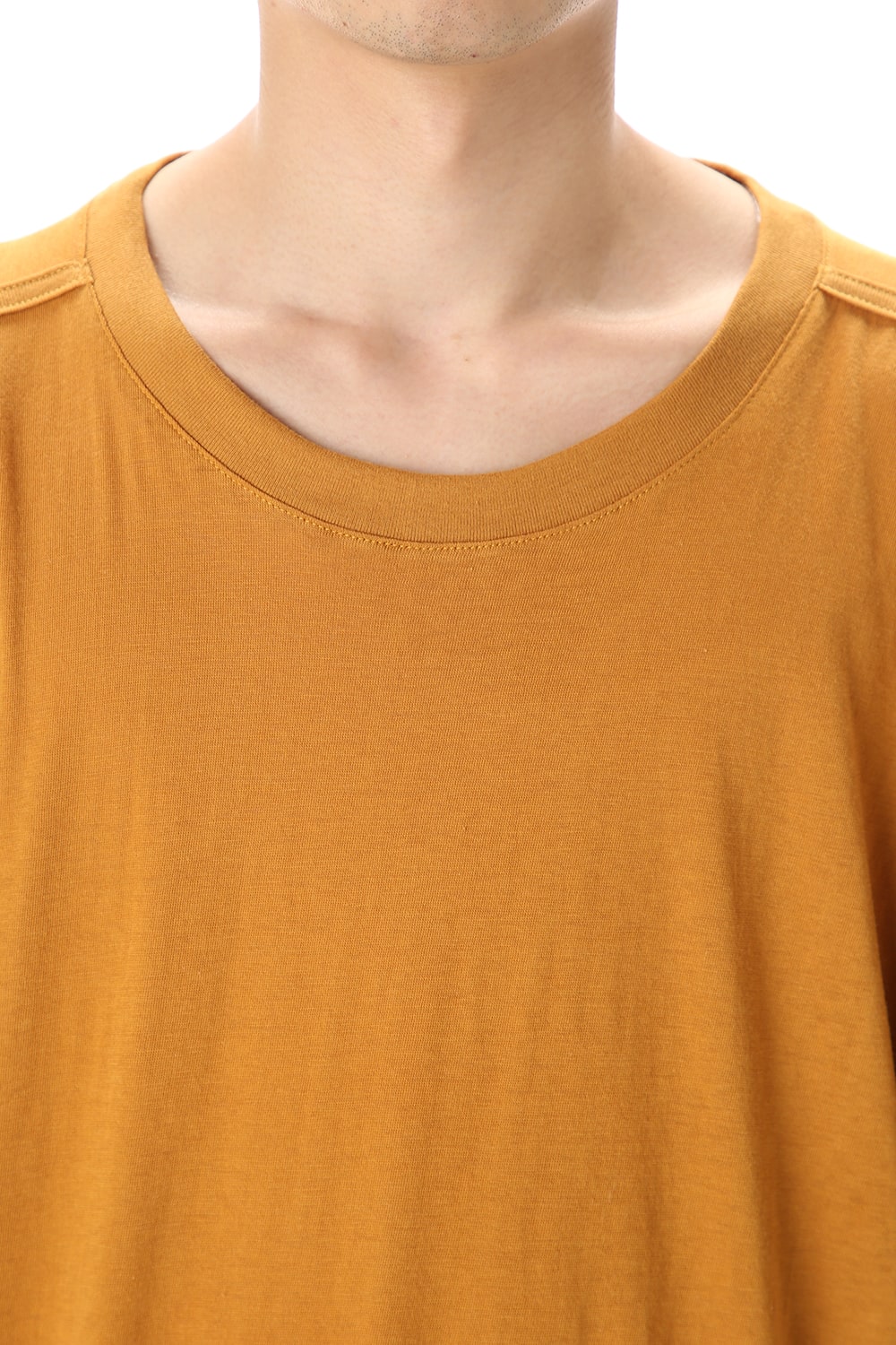 身幅を広く取り、ドロップショルダーで仕立てることで、後ろ身頃の両サイドからドレープが入るデザインとなったルーズシルエットTシャツ。 生地はふんわりとした肌触りの良い天竺生地で、デザイン、着用感ともに夏場1枚で着用するのに適したアイテムとなっています。