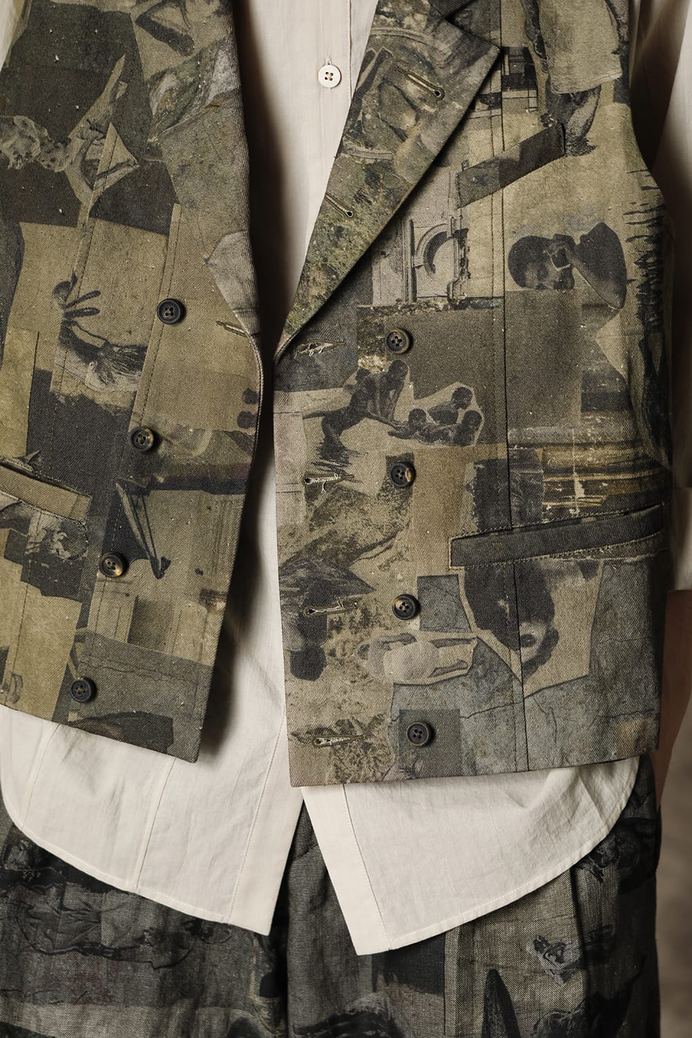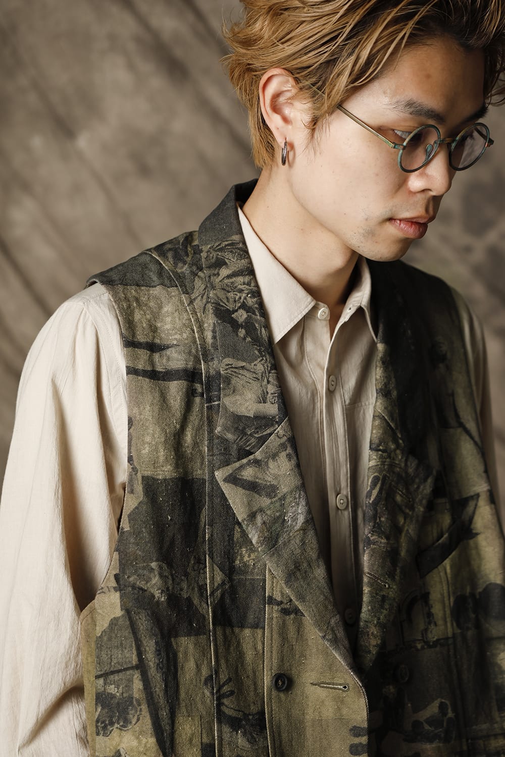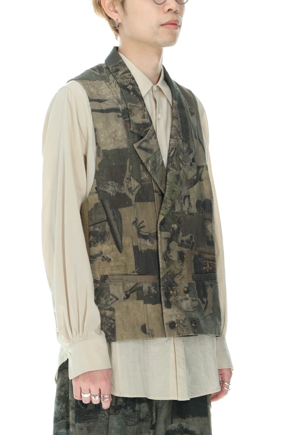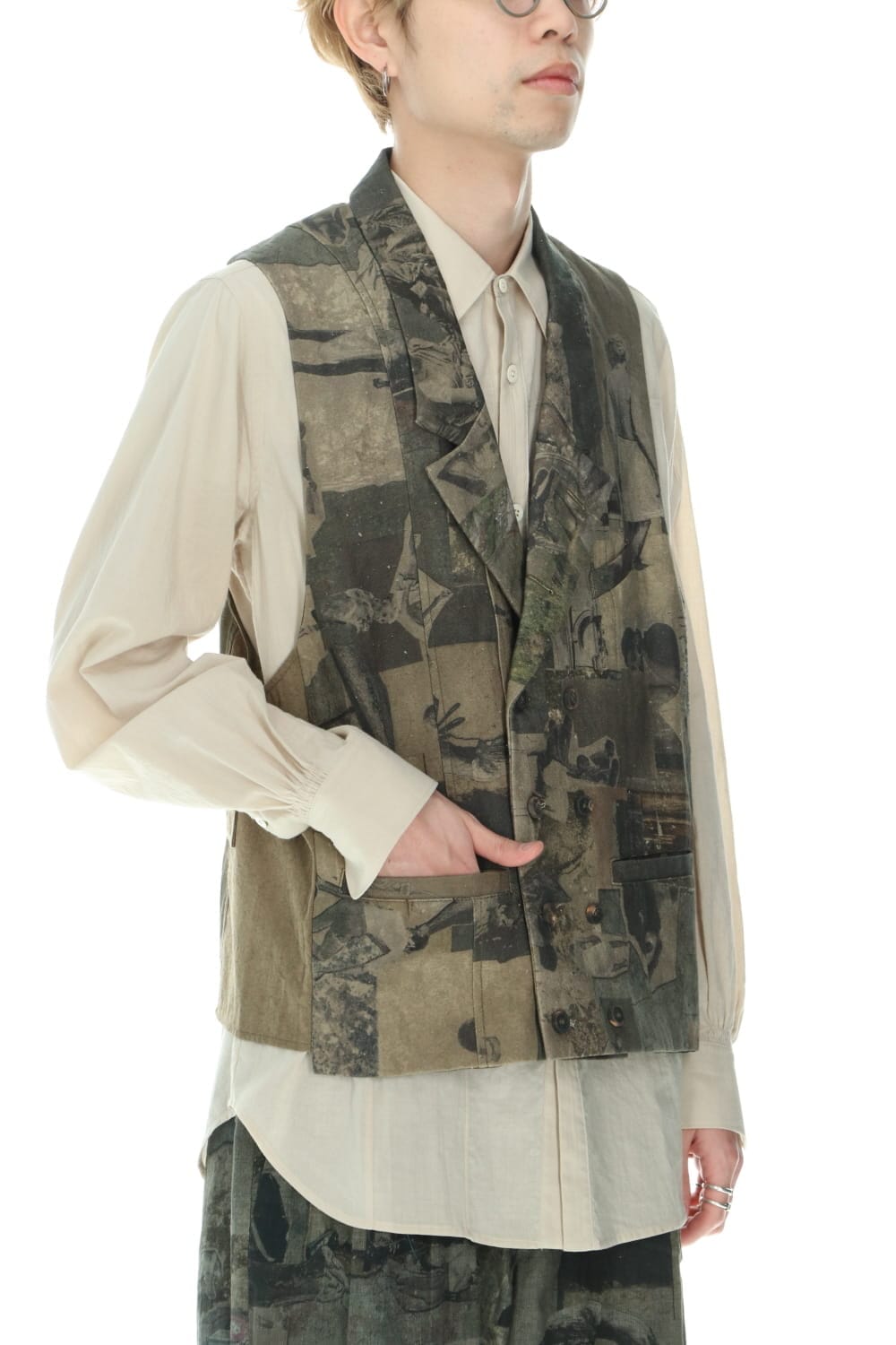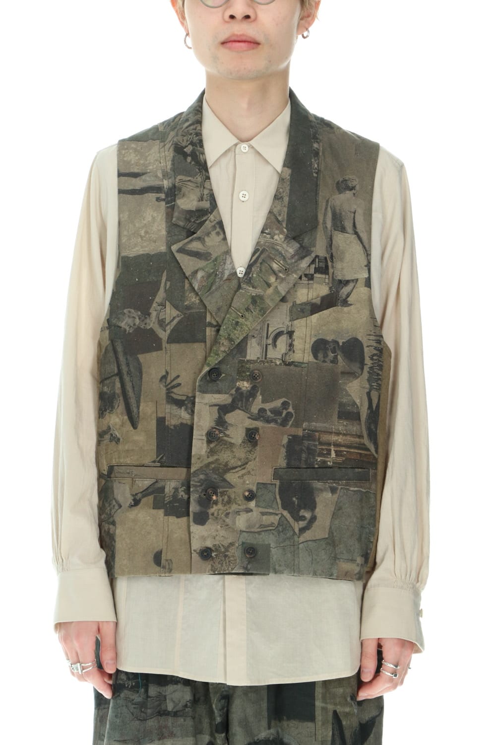 ダブルブレステッド ベスト グレーグリーンピグメント