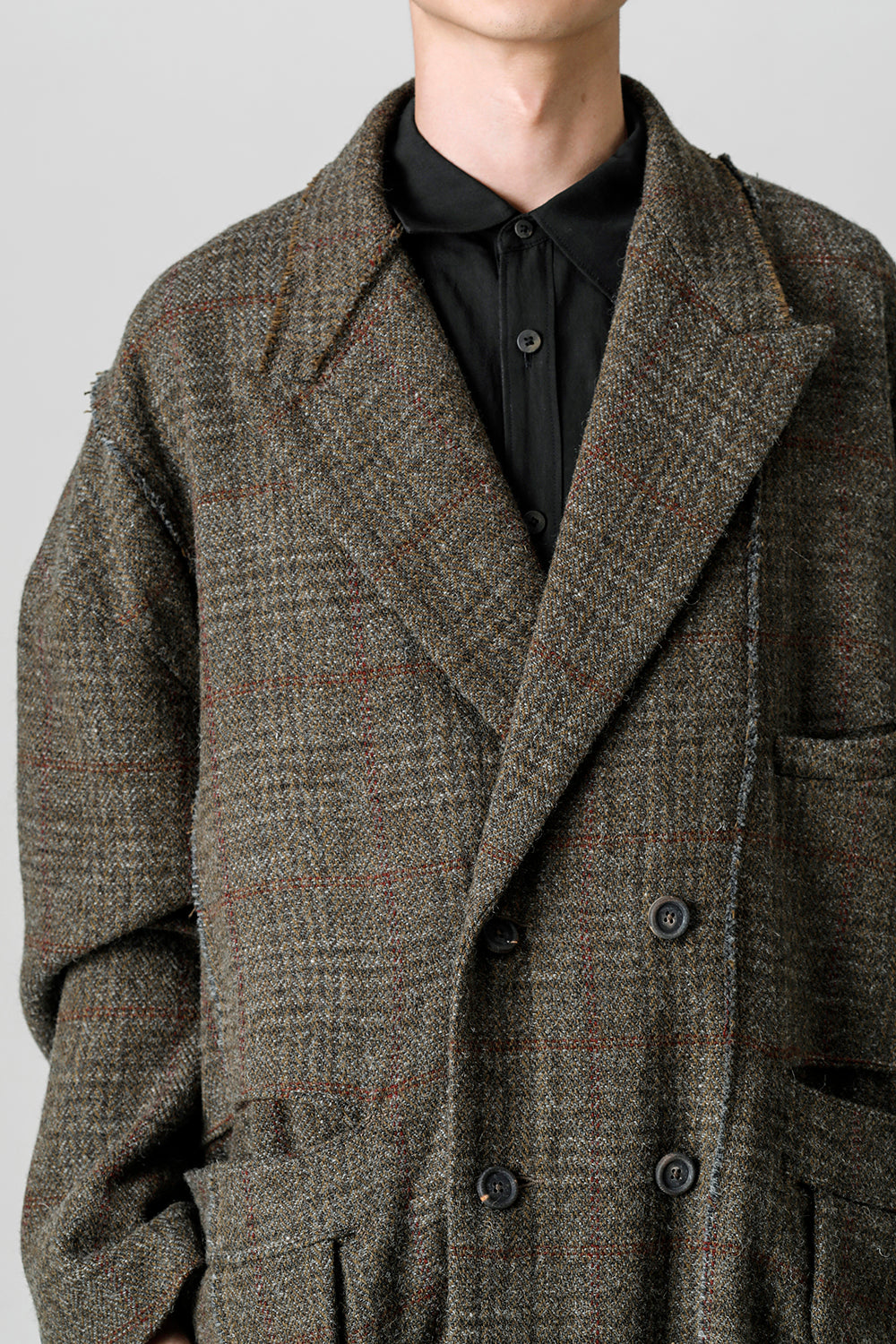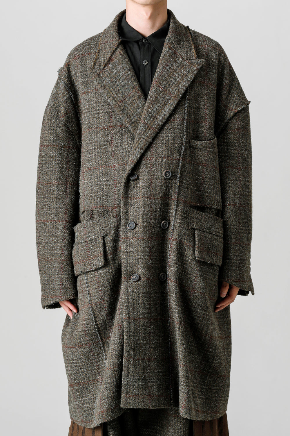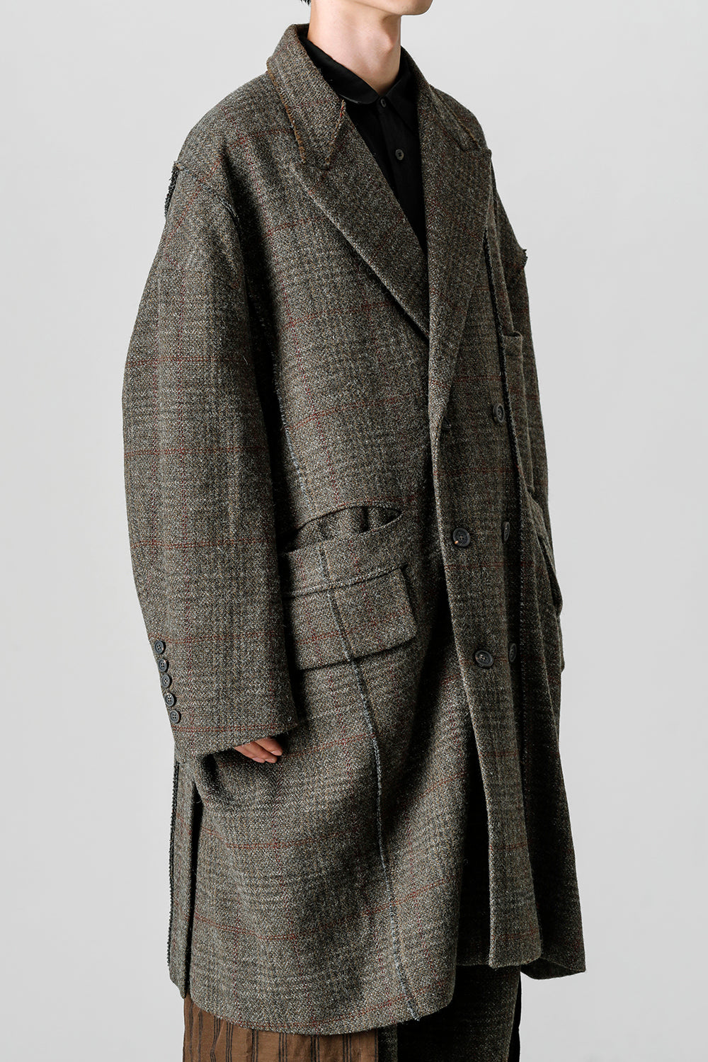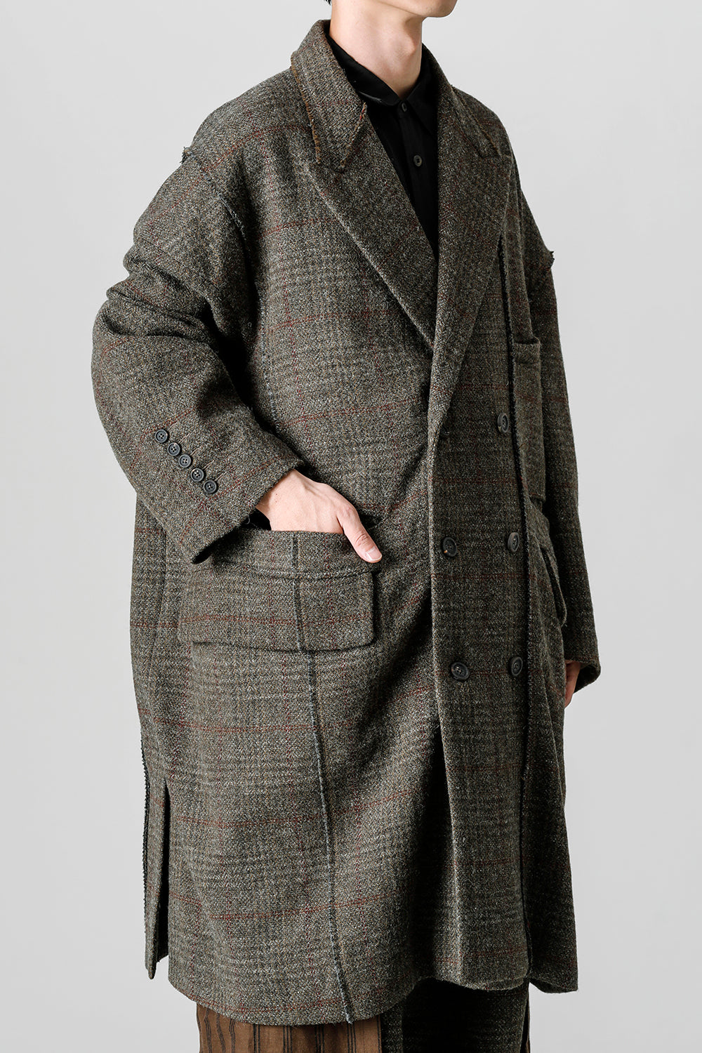 ZIGGY CHEN では21-22AWコレクション以降パターンや素材、細やかなディテールを変更しながらも継続展開され続けているダブルブレステッドのピークドラペルオーバーサイズコート。
