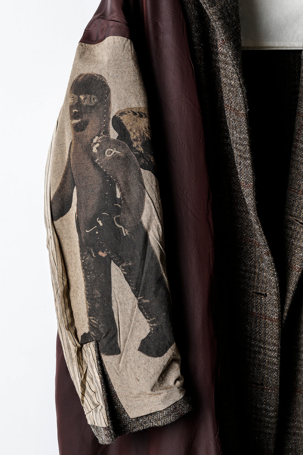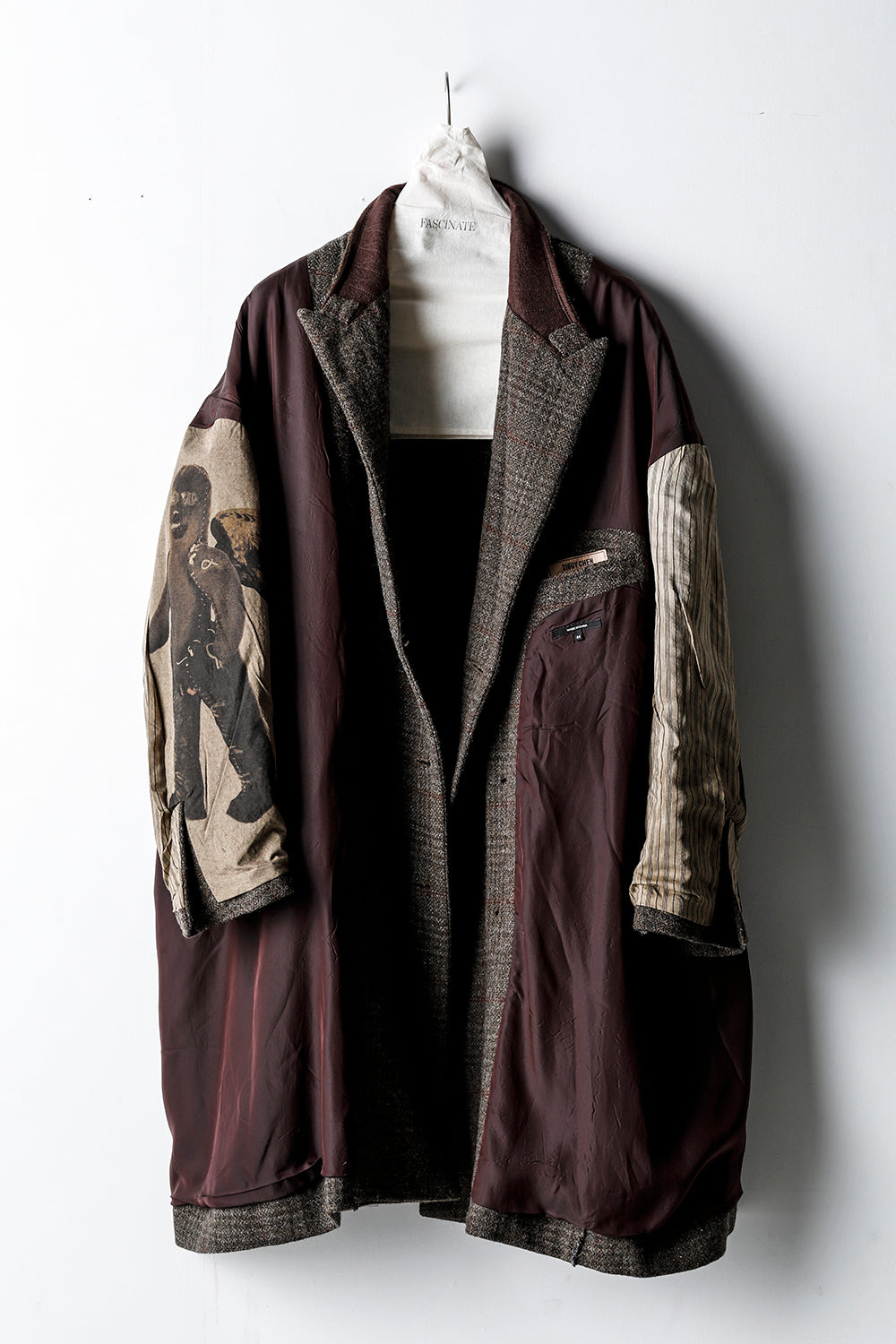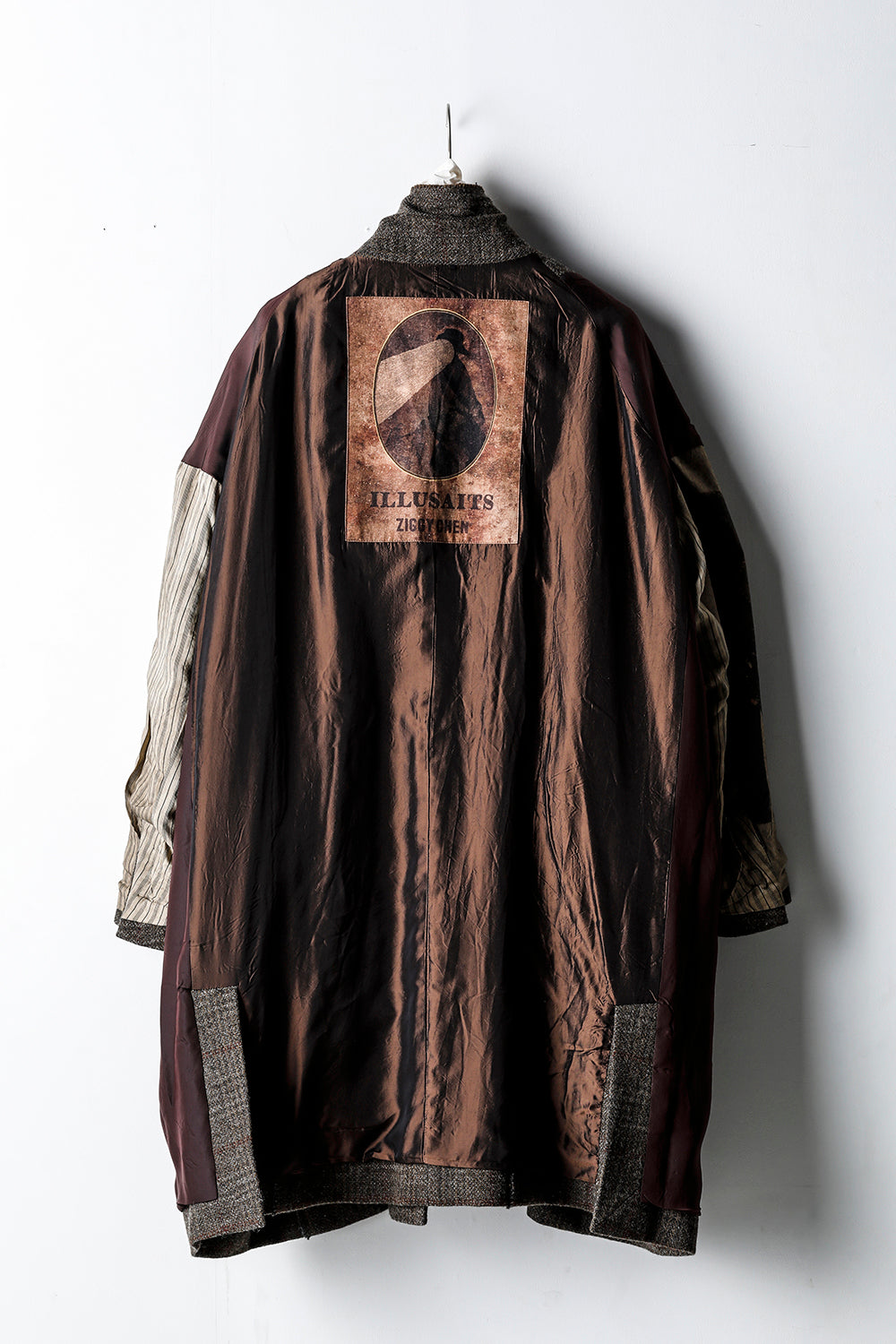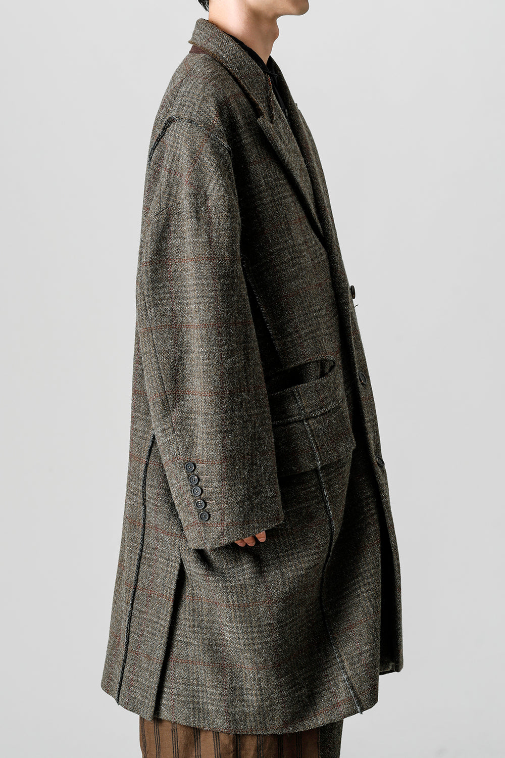 ZIGGY CHEN では21-22AWコレクション以降パターンや素材、細やかなディテールを変更しながらも継続展開され続けているダブルブレステッドのピークドラペルオーバーサイズコート。