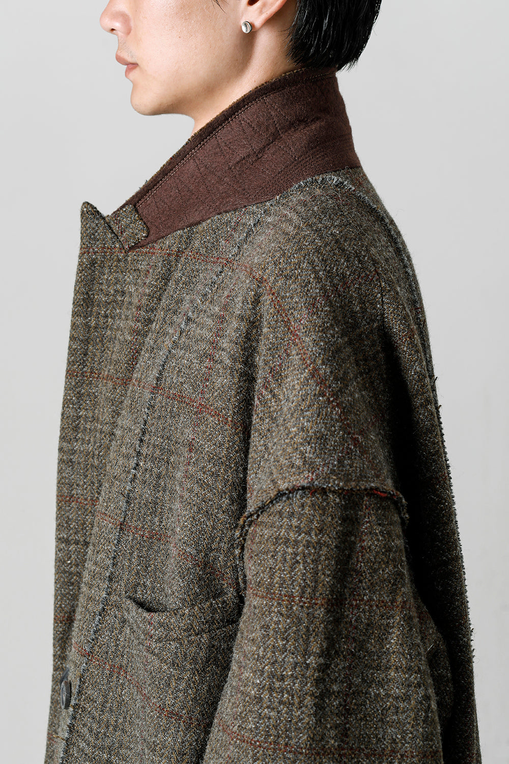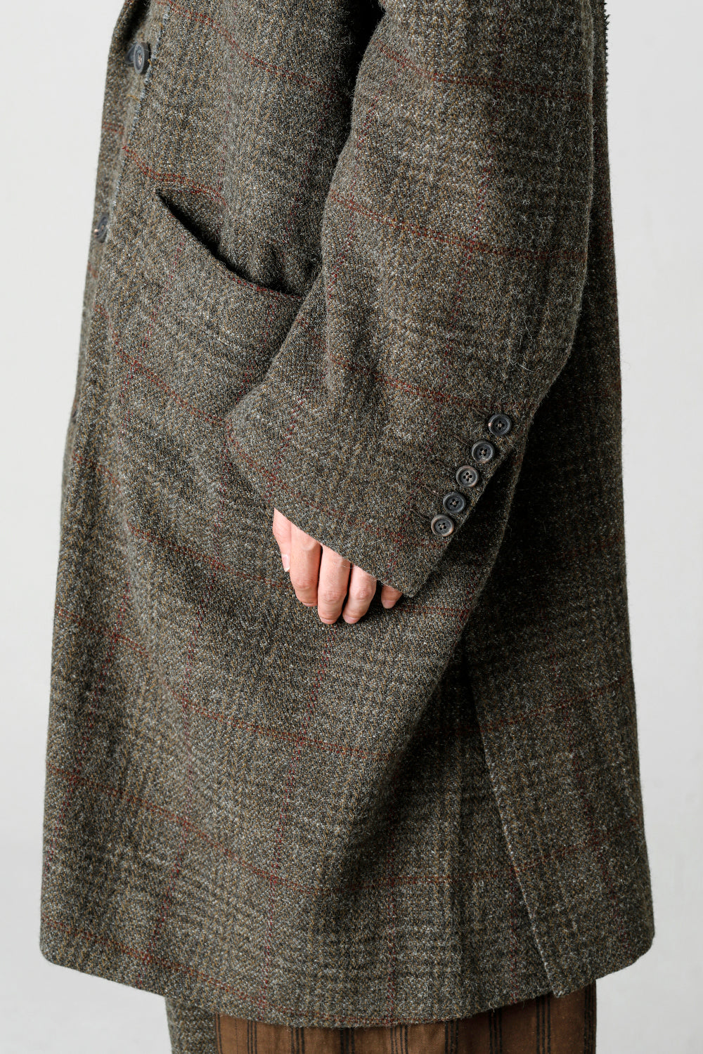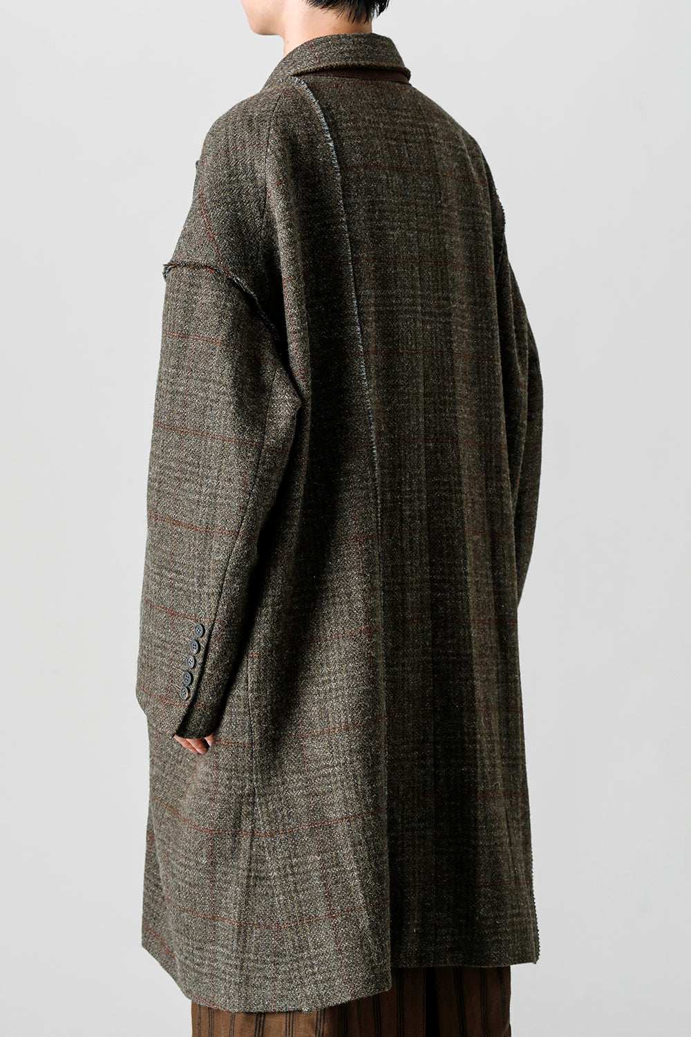 コチラのモデルは、今季のコレクションでも特徴的であった冬らしく肉厚なダークトーンのグレンチェックツイードを使用しています。