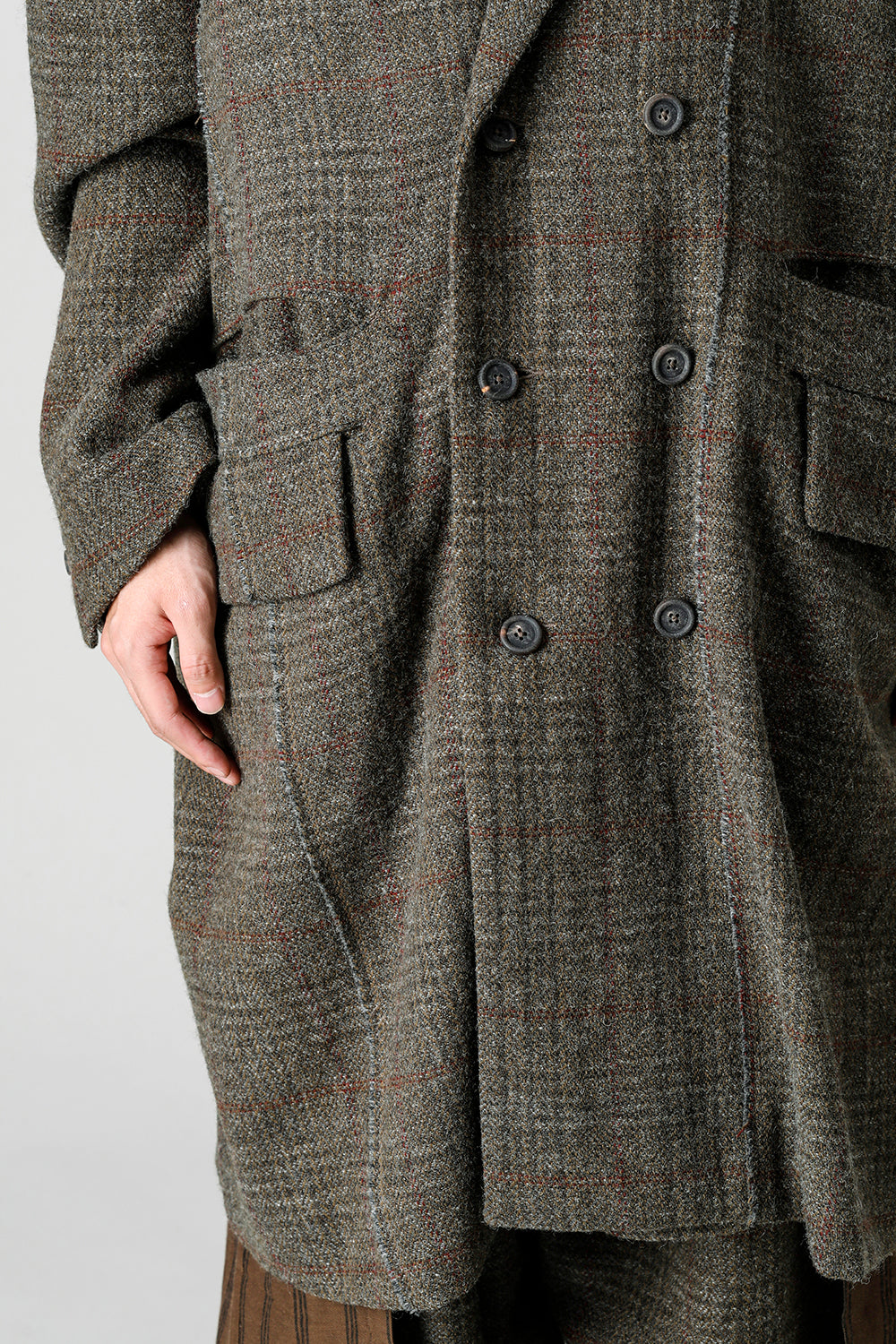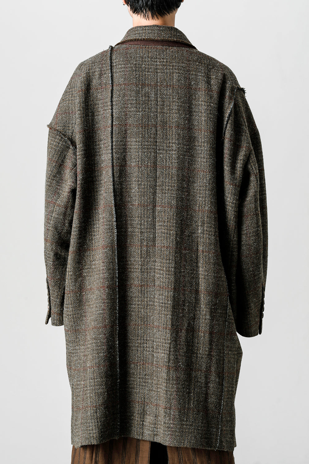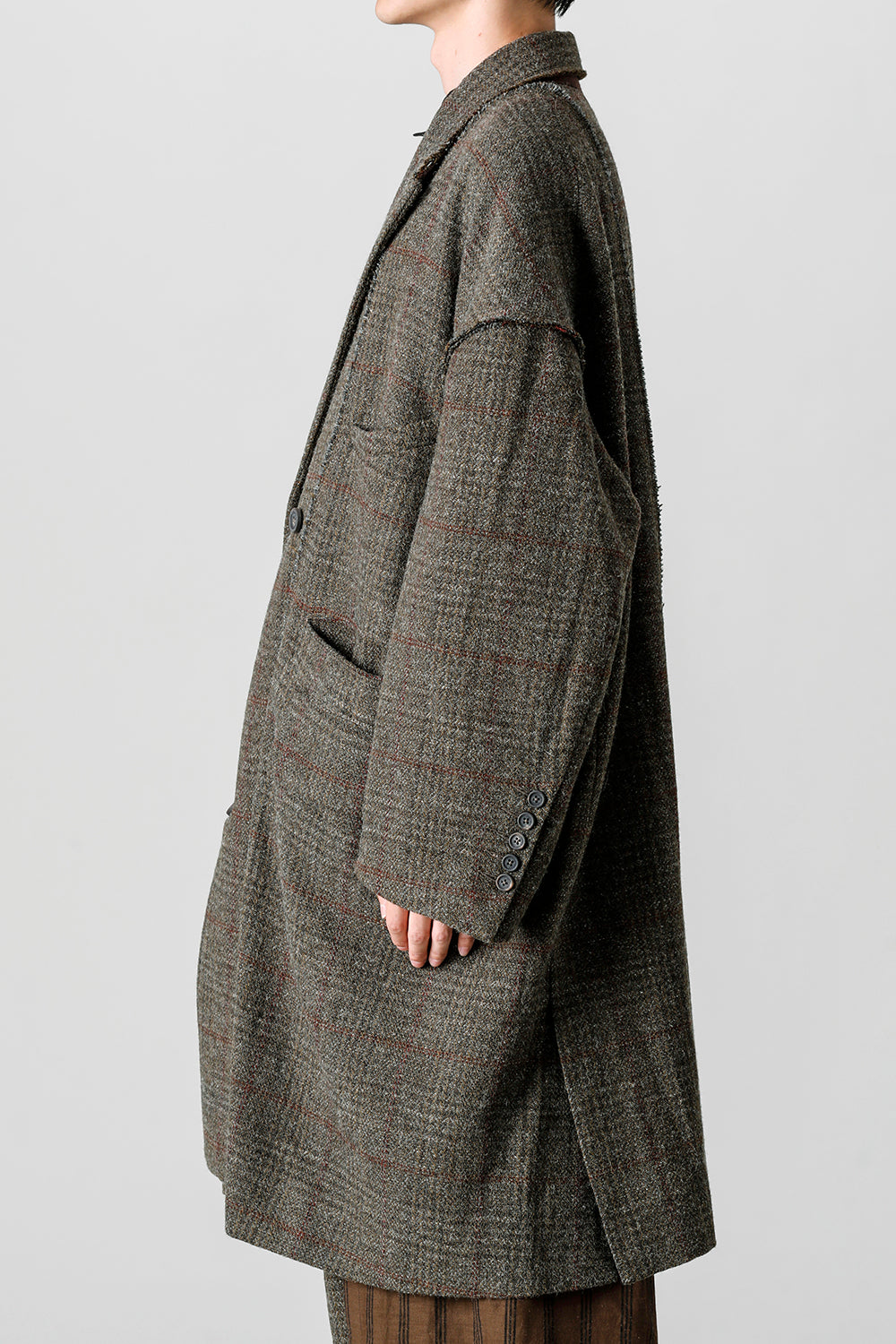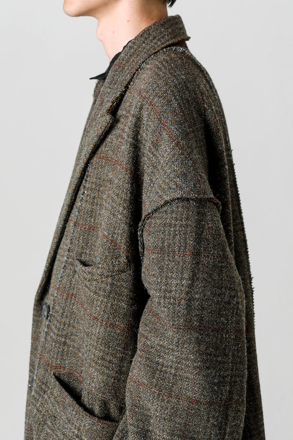 コチラのモデルは、今季のコレクションでも特徴的であった冬らしく肉厚なダークトーンのグレンチェックツイードを使用しています。