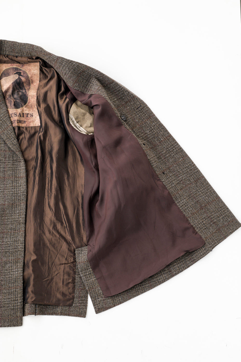 身幅を広く取り、やや浅目に切り込んだサイドベンツによって作られたキリッとした丸みのあるコクーンシルエットとそれとは相反したキリッとしたピークドラペルが特徴。