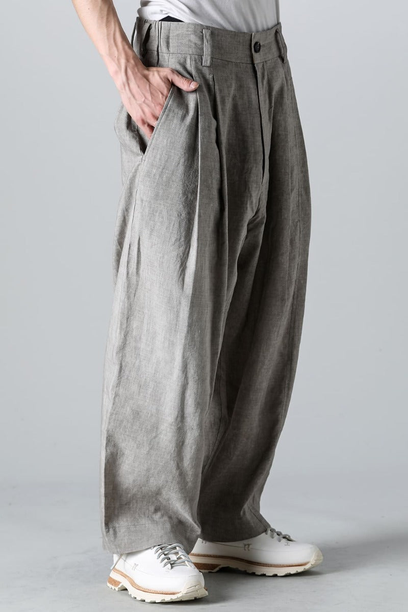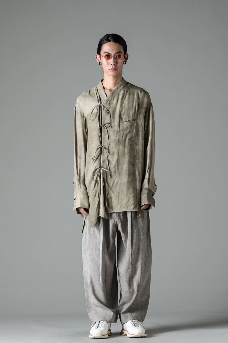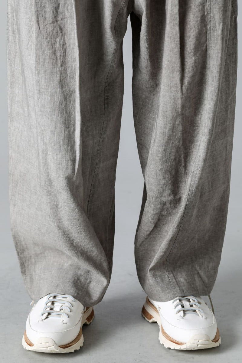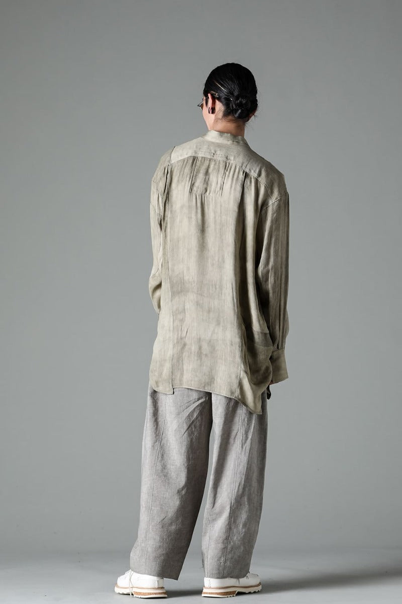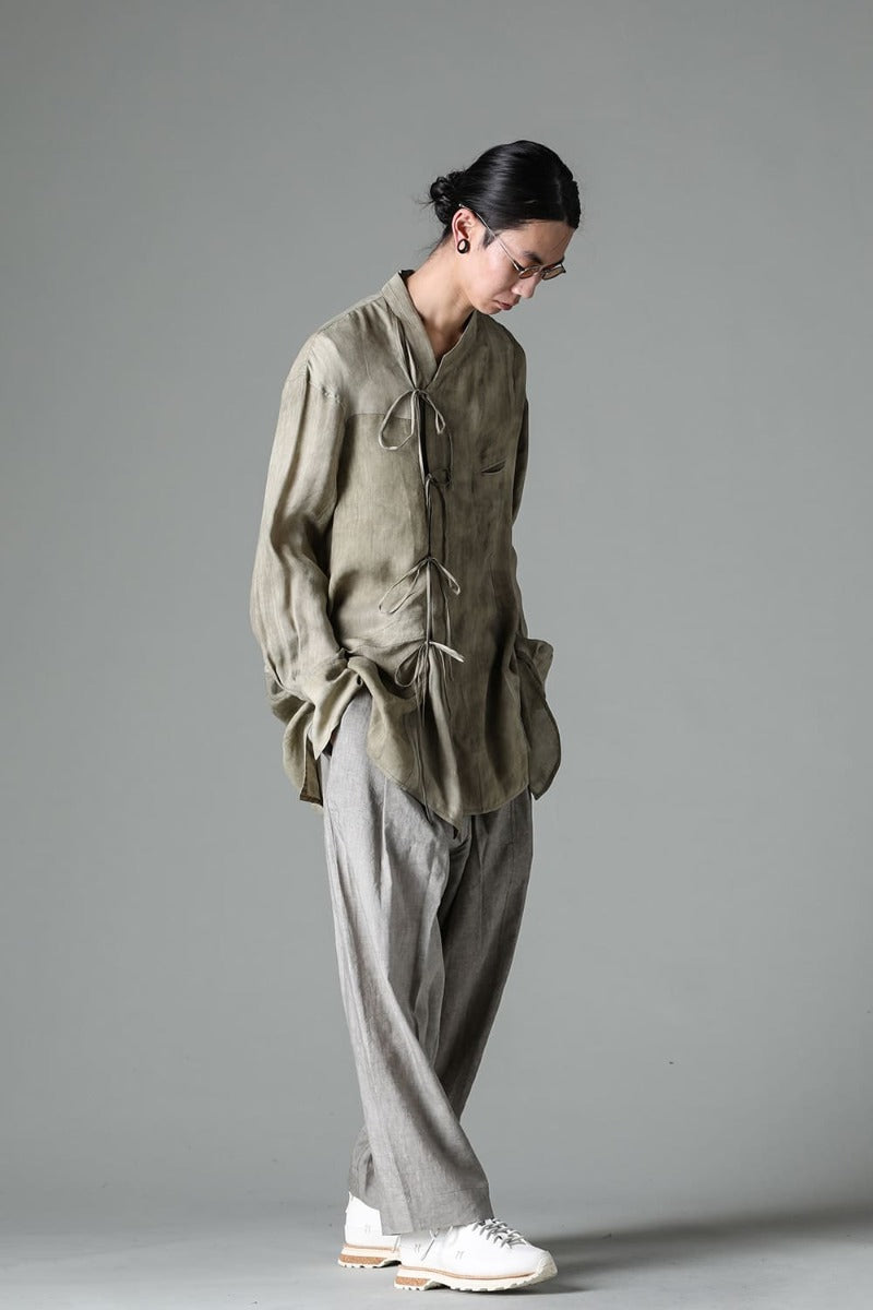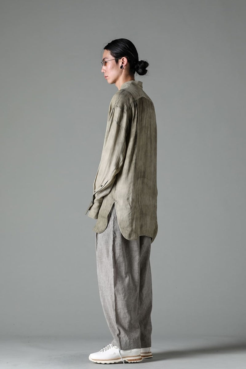 生地段階でコールドダイを施したコットンリネンのパナマ生地を採用。