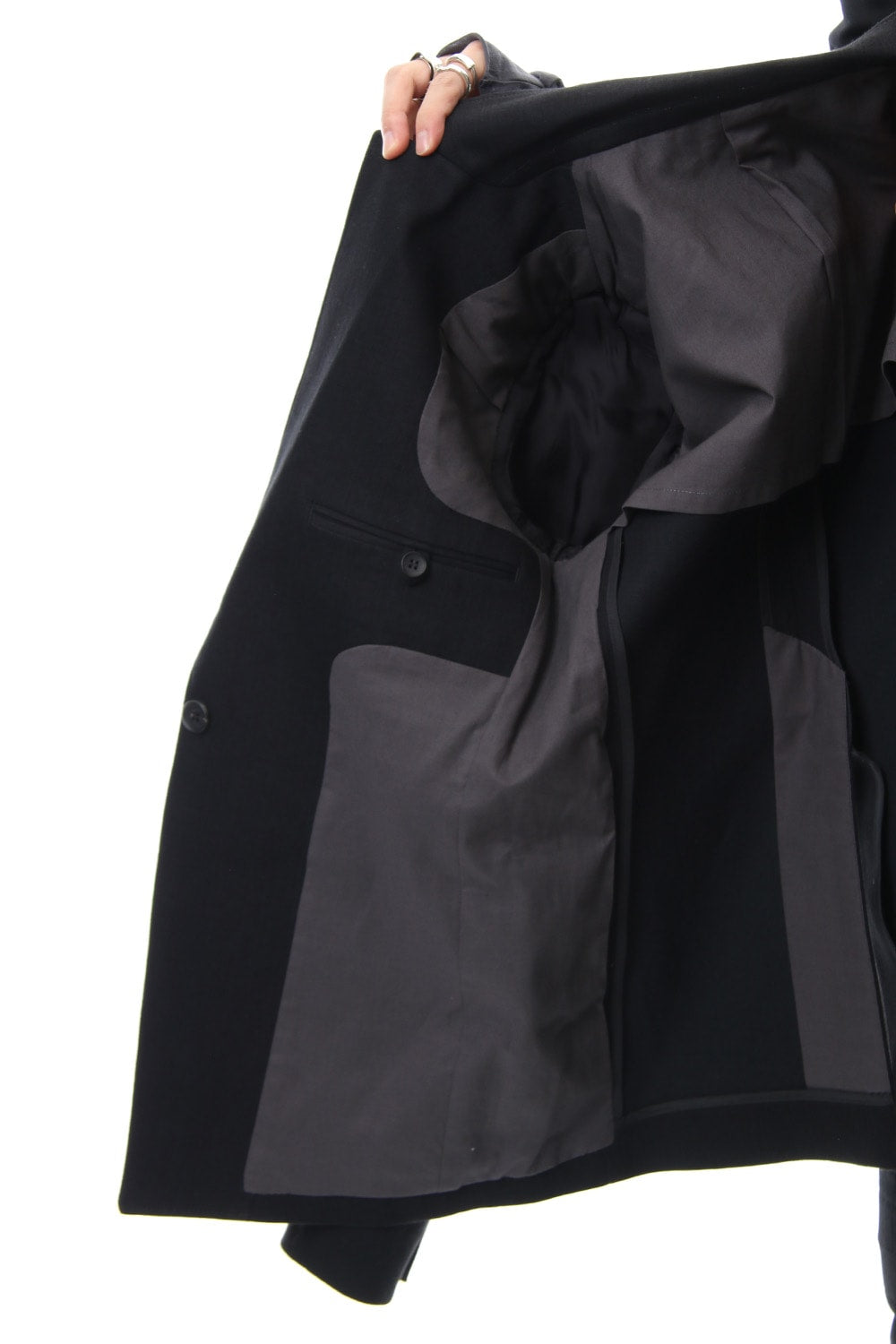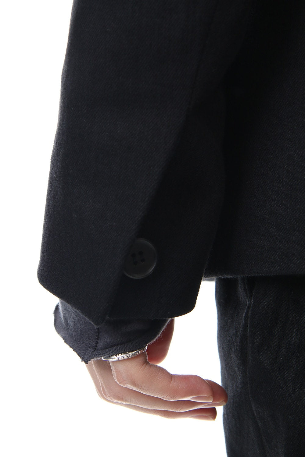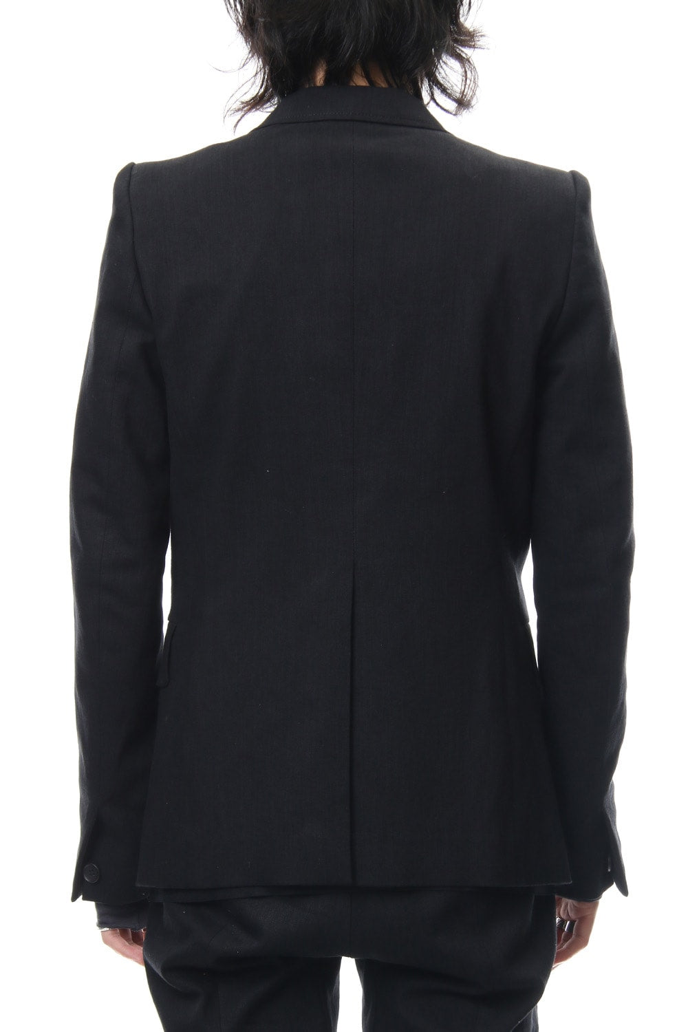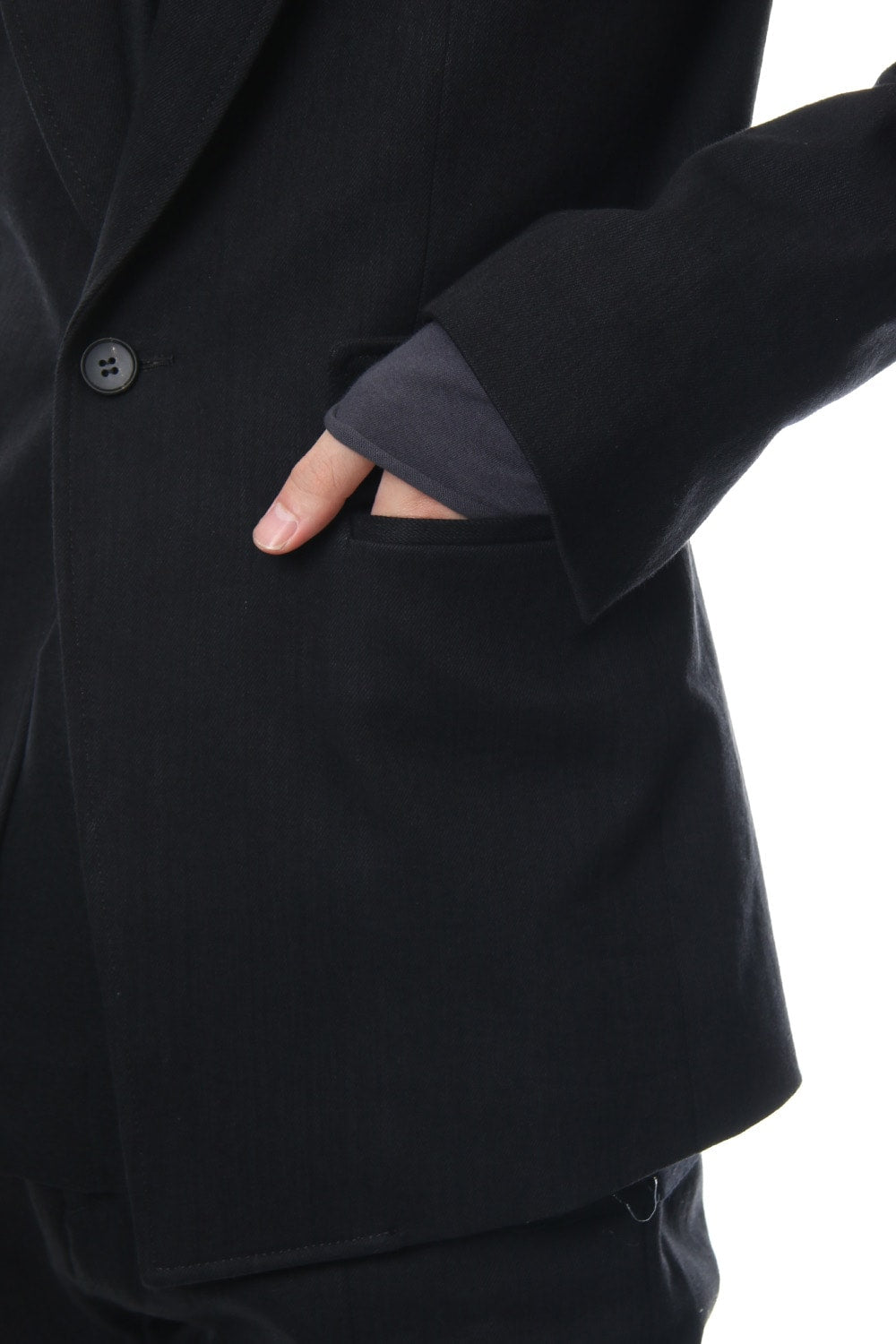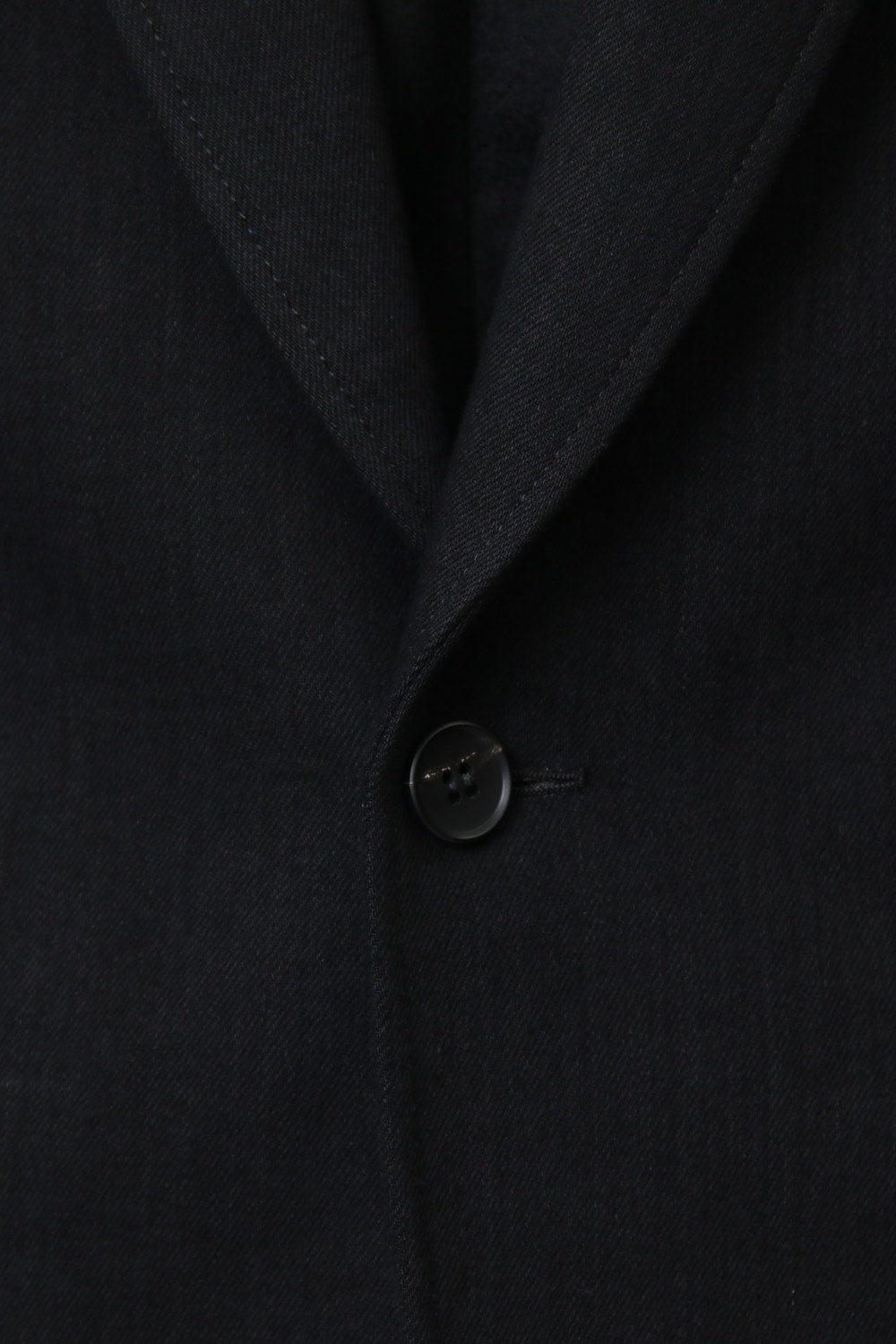 ・オリジナル肩パットを使用したコンケープドショルダー、オリジナル胸増芯で作る構築的なシルエットのテーラードJKT。