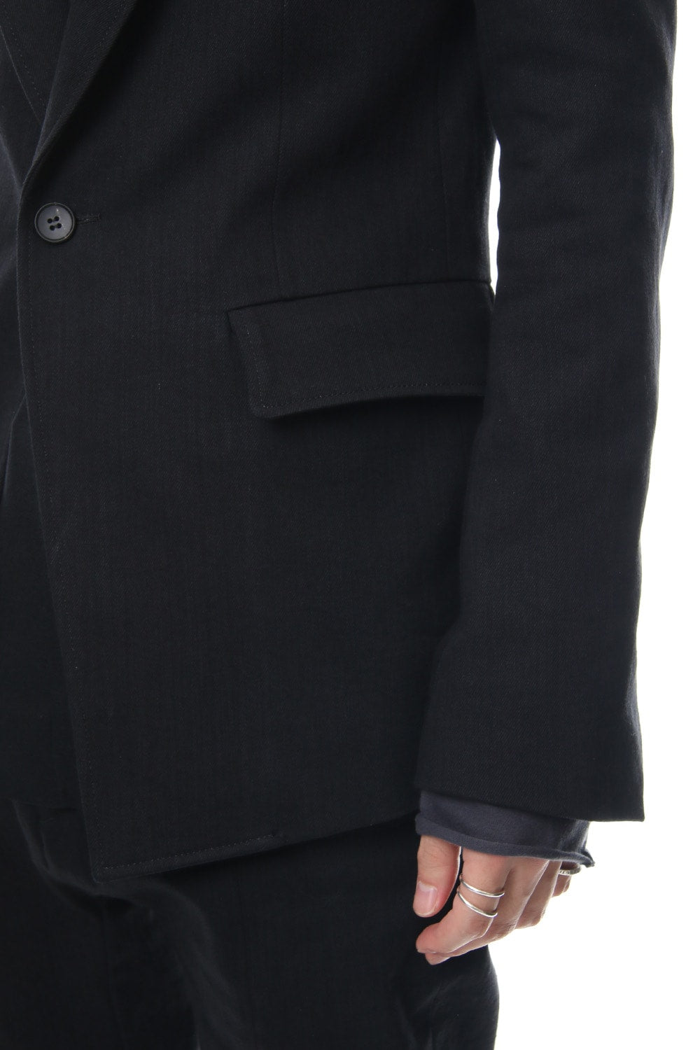 ・構築的でシャープなシルエットですが生地にストレッチデニムを使用することで動きやすく、ドレスダウンさせた表情が特徴のジャケットに仕上がっています。