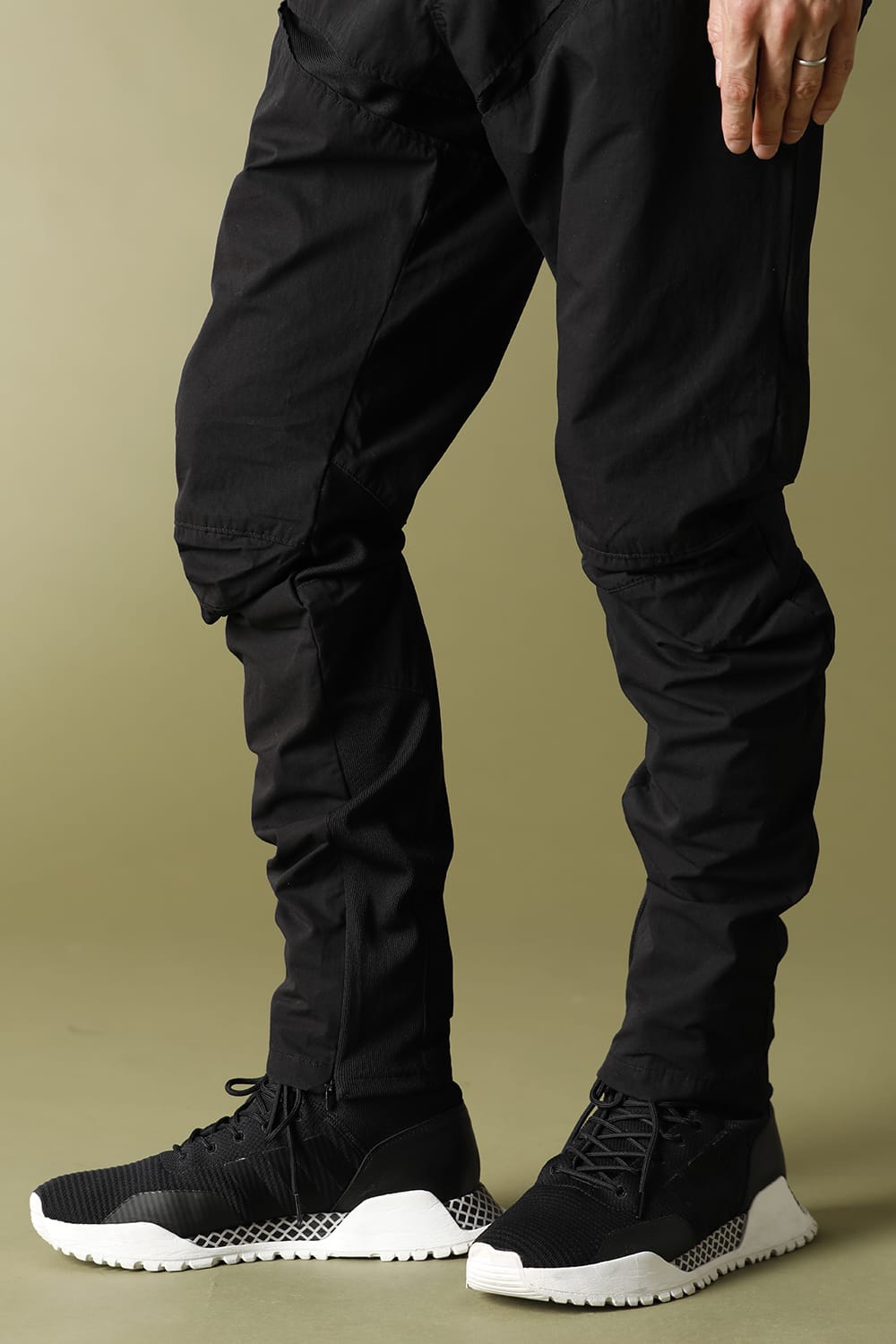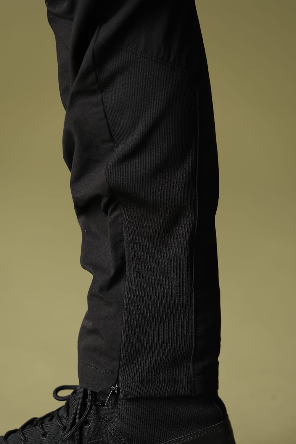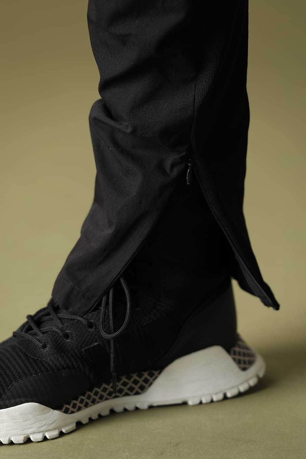 裾はファスナーで開閉可能なため、コーディネートするシューズのボリュームに合わせた着用が可能です。